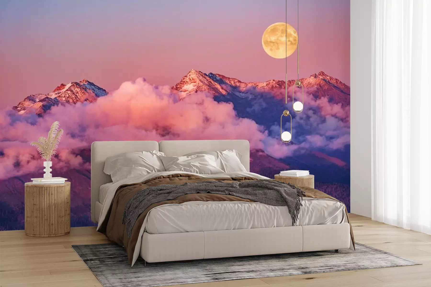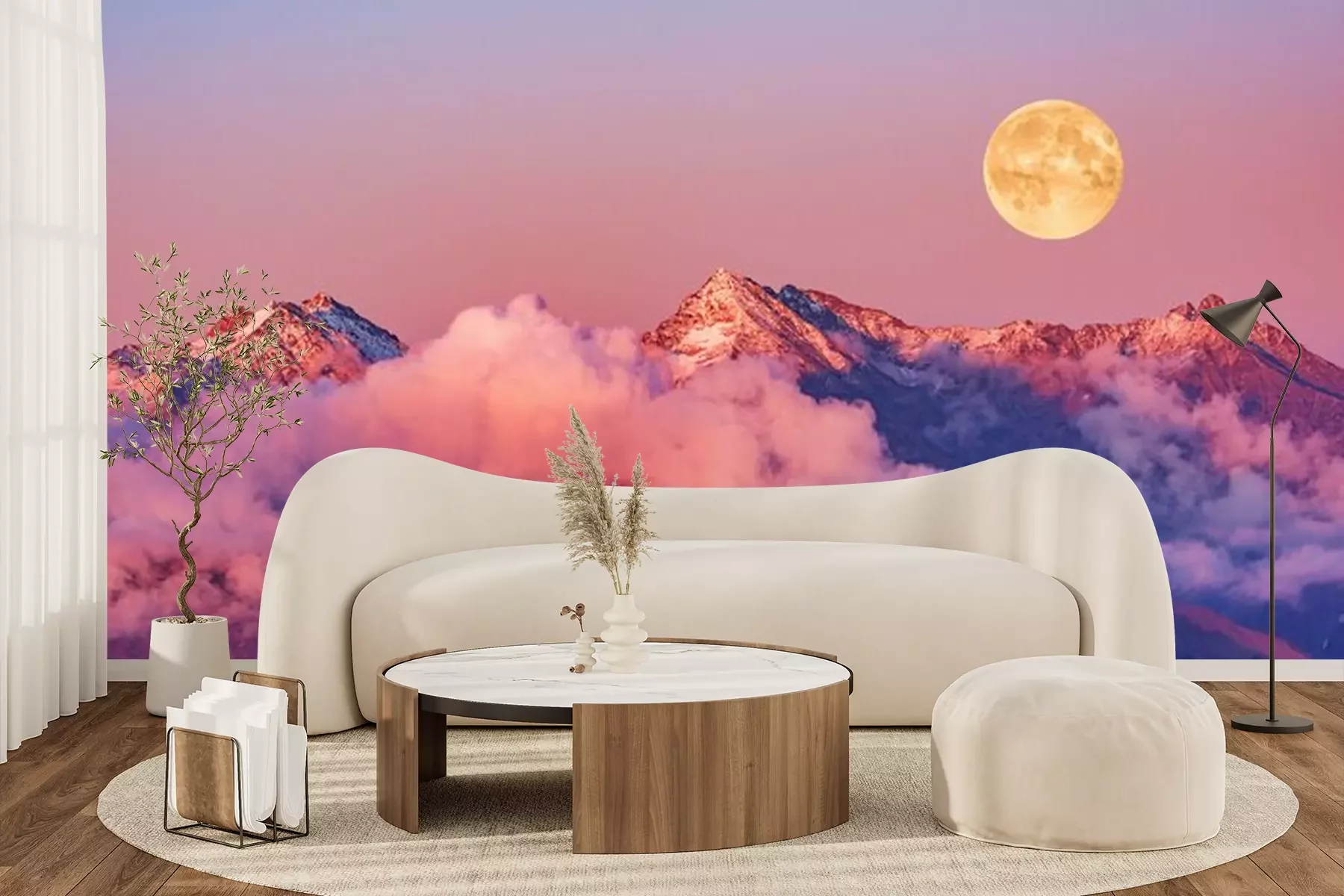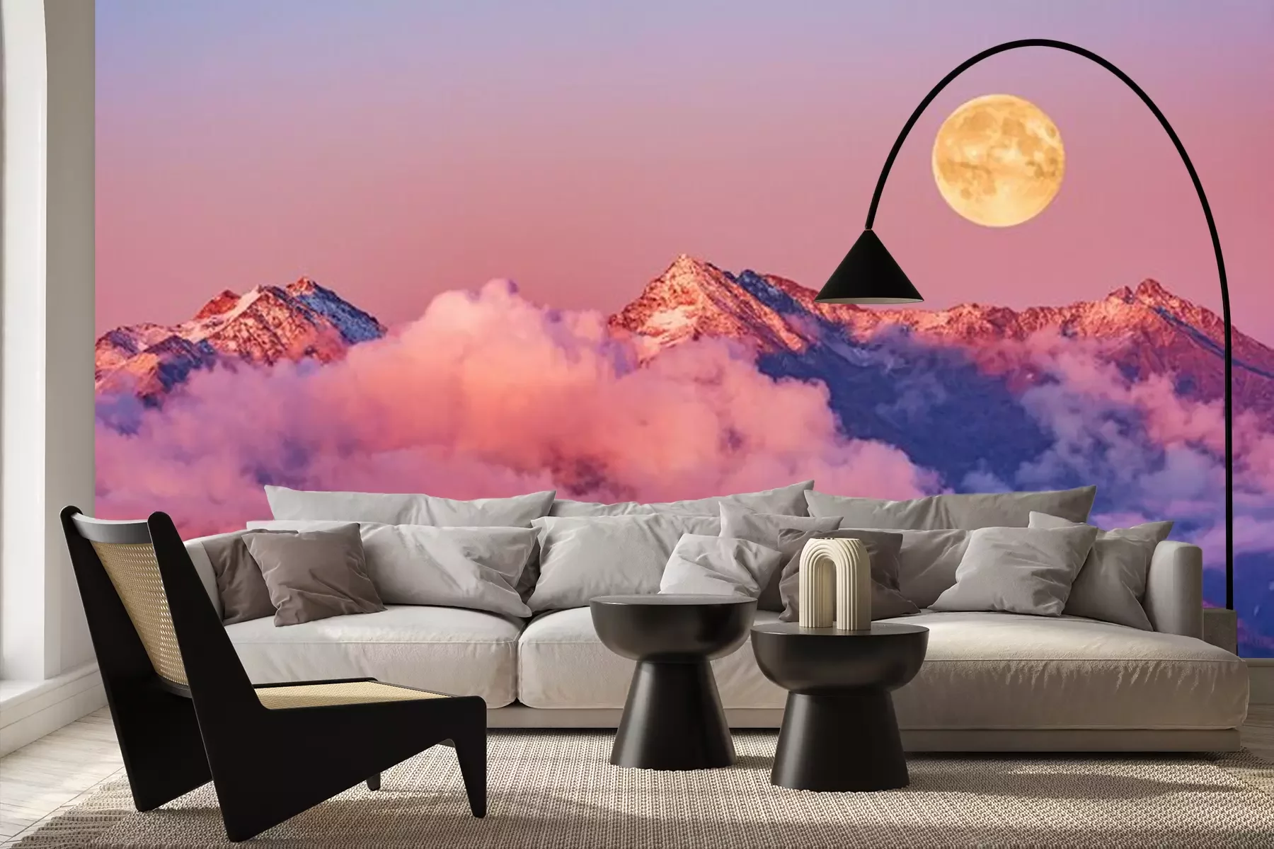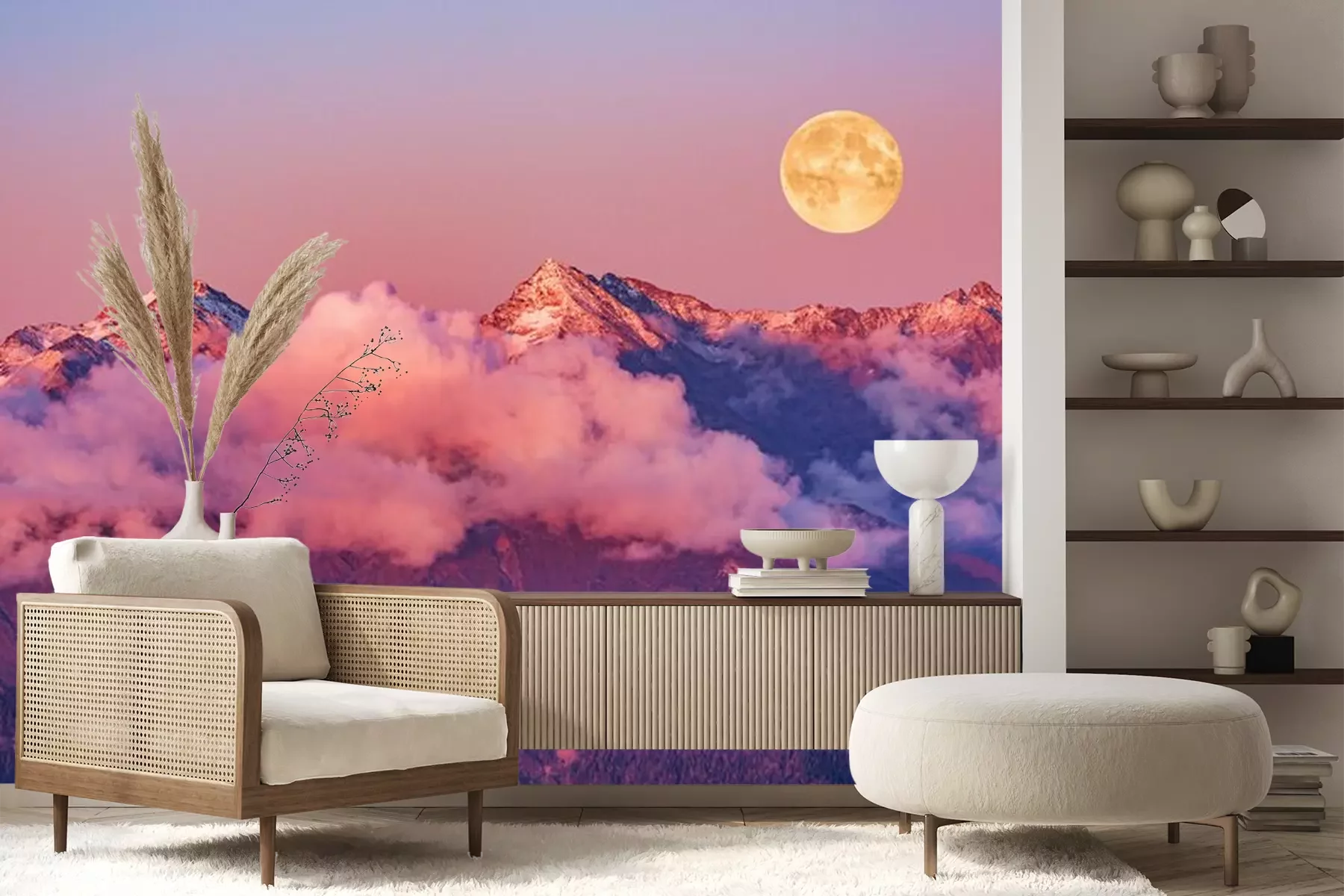 Fotobehang Volle maan boven de Kaukasus