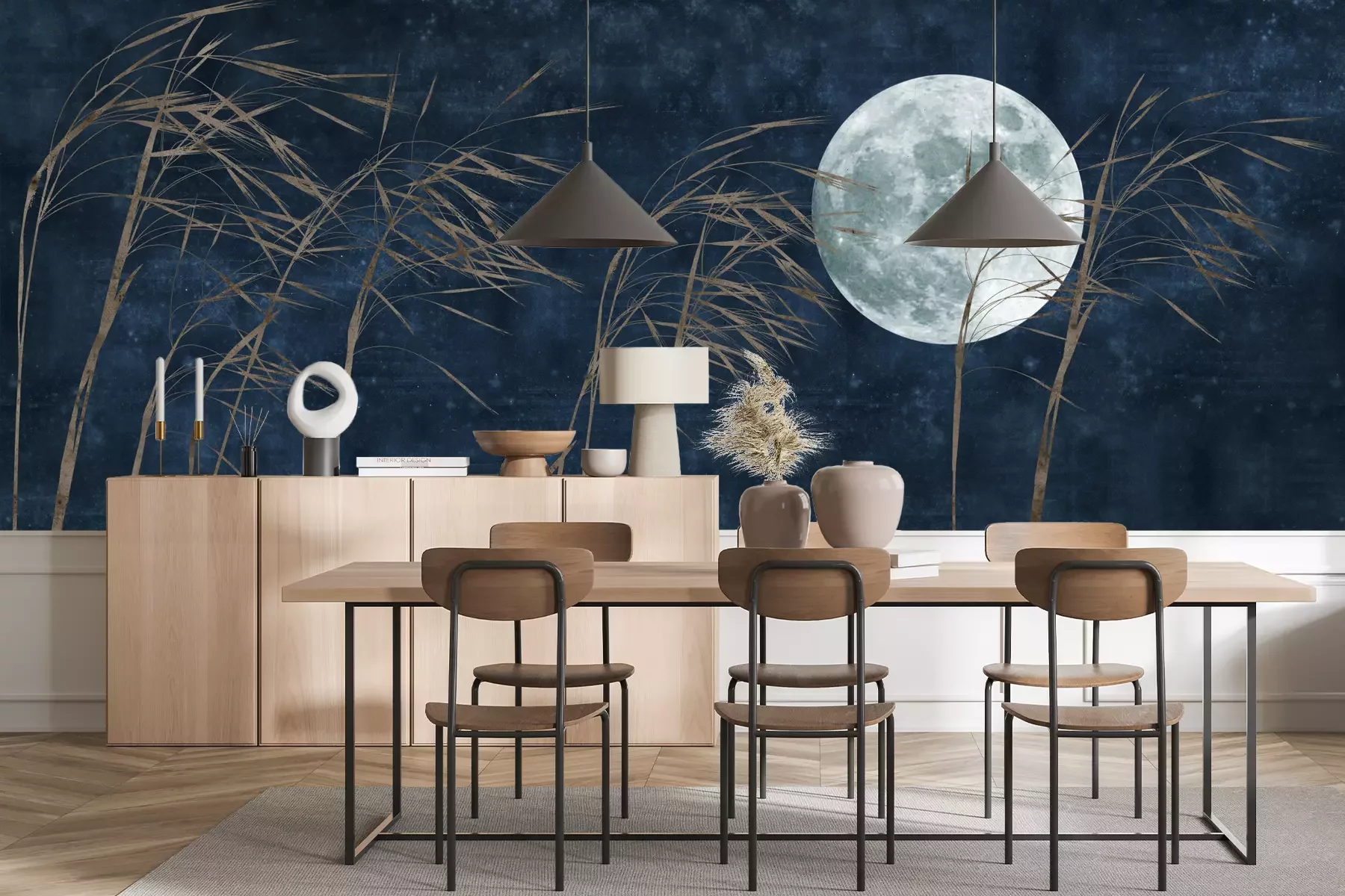 Het materiaal Premium+ is een gestructureerd vinyl op vlies met een gewicht van 255 g/m², dat kleine oneffenheden in de muur effectief camoufleert. De subtiele structuur van fijn zand geeft het oppervlak een exclusieve uitstraling, terwijl de halfmatte afwerking de diepte van de kleuren benadrukt. Het materiaal is dampdoorlatend, waardoor het ook in de keuken en badkamer kan worden gebruikt. De maximale breedte van één baan bedraagt 100 cm – bij grotere afmetingen wordt het fotobehang in meerdere gelijke banen verdeeld. De lijm wordt direct op de muur aangebracht en het behang wordt rand-aan-rand geplakt, wat zorgt voor een esthetisch resultaat zonder zichtbare naden. Het oppervlak kan gemakkelijk worden schoongemaakt door het voorzichtig af te nemen met een vochtige doek.