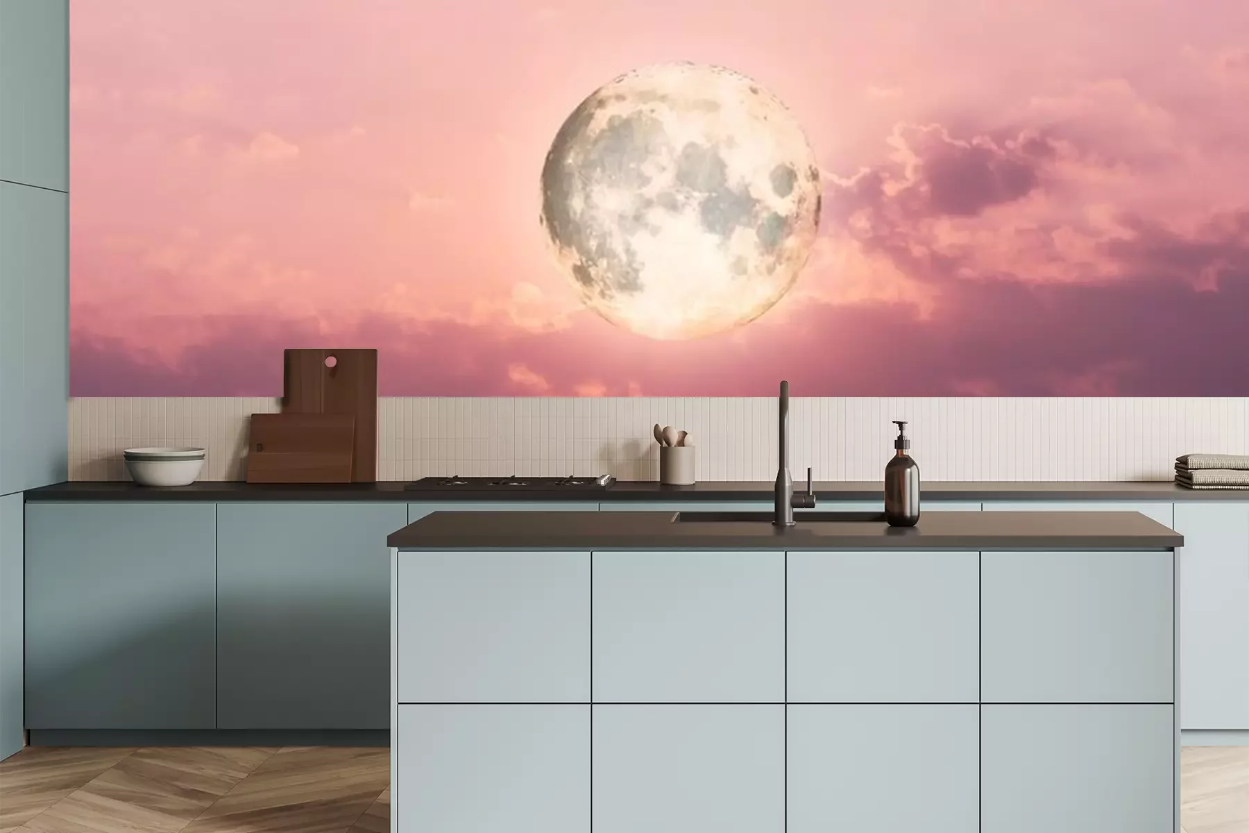 Fotobehang Volle maan op de achtergrond van de hemel in roze tinten