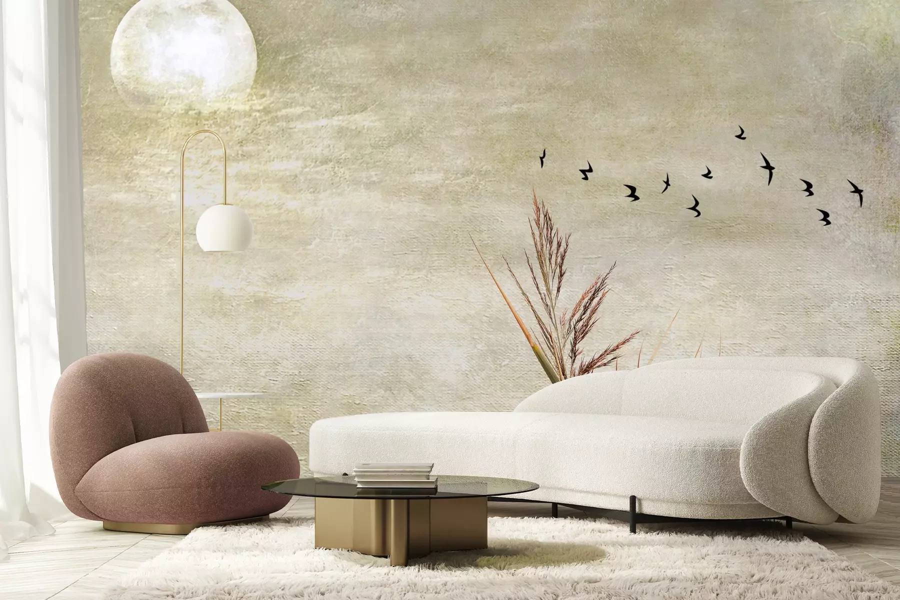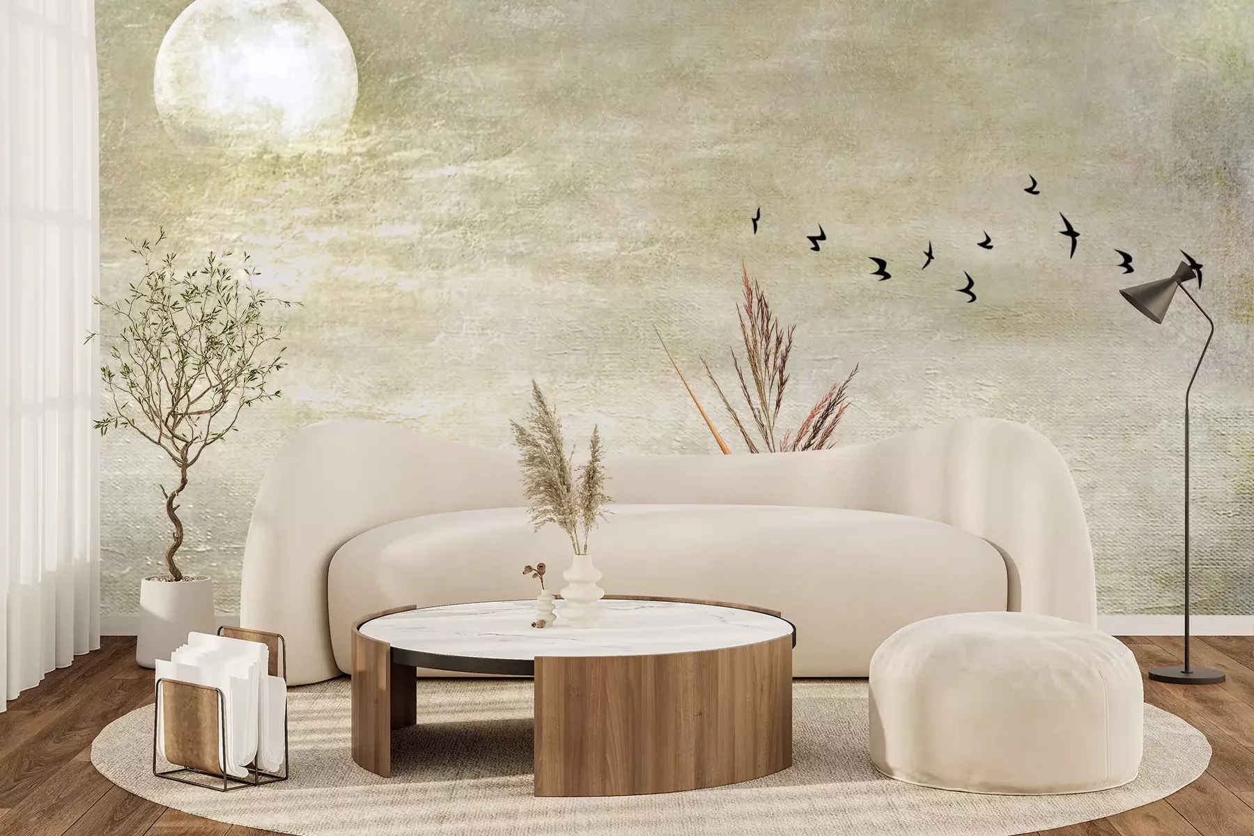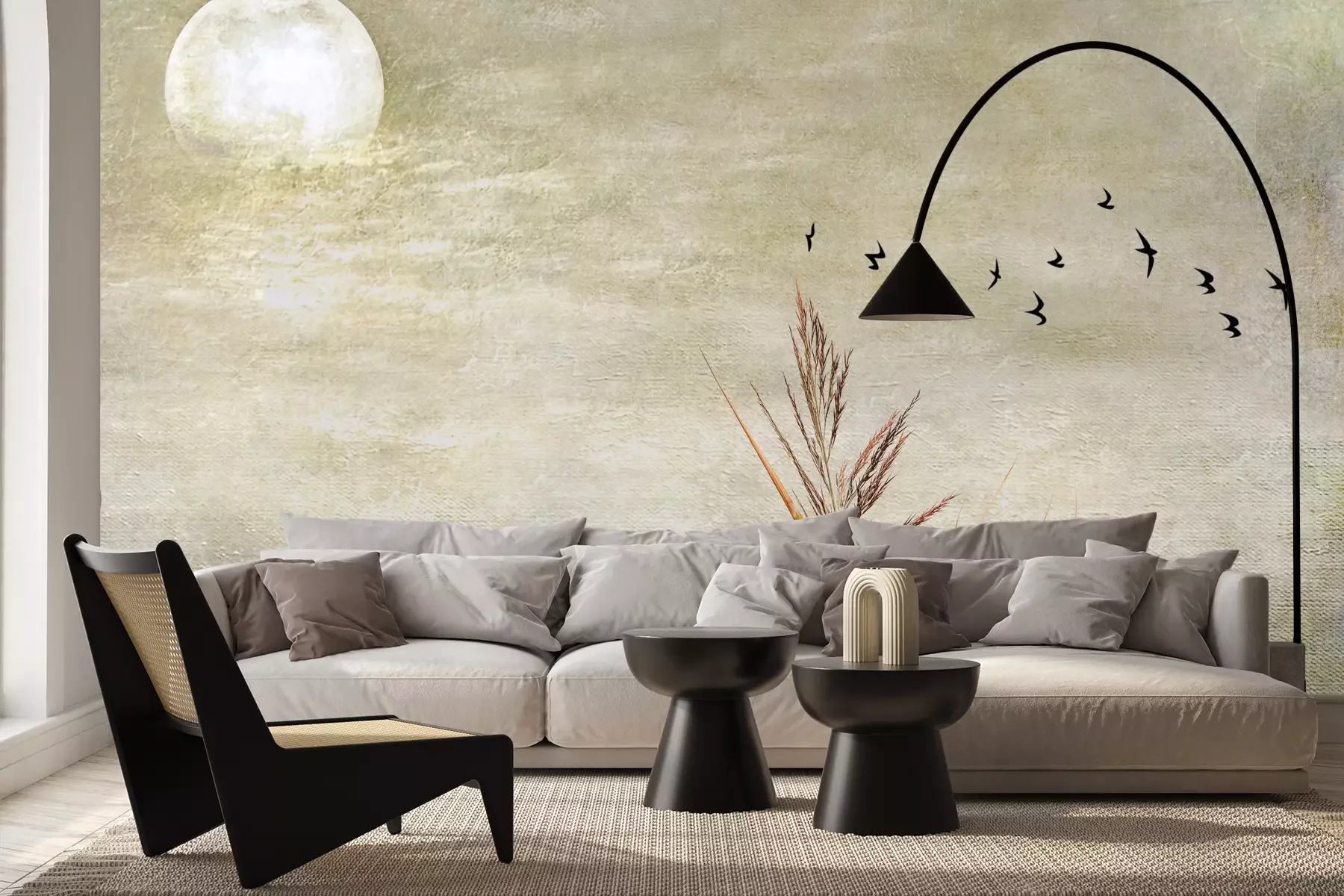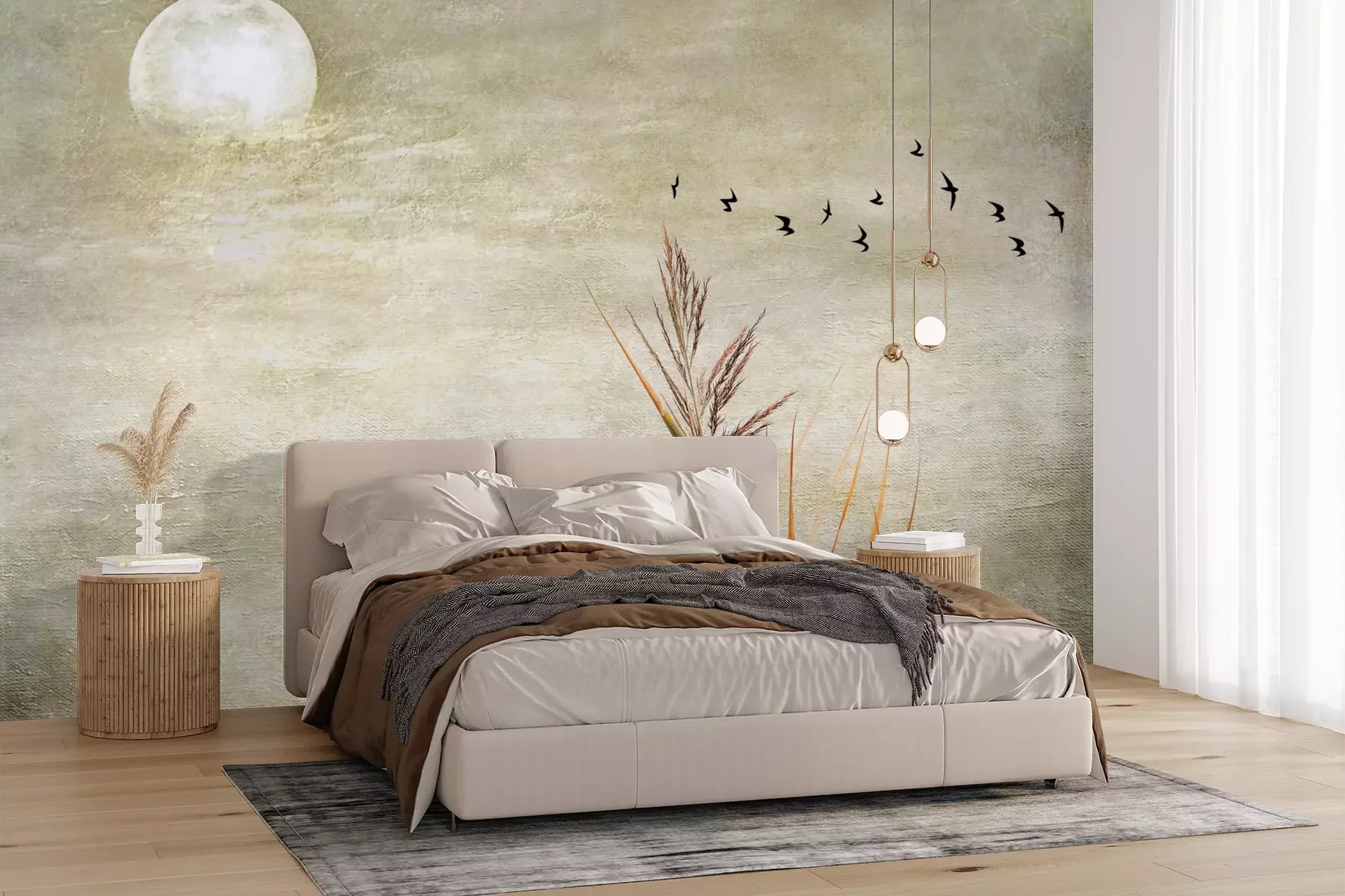 Het materiaal Premium+ is een gestructureerd vinyl op vlies met een gewicht van 255 g/m², dat kleine oneffenheden in de muur effectief camoufleert. De subtiele structuur van fijn zand geeft het oppervlak een exclusieve uitstraling, terwijl de halfmatte afwerking de diepte van de kleuren benadrukt. Het materiaal is dampdoorlatend, waardoor het ook in de keuken en badkamer kan worden gebruikt. De maximale breedte van één baan bedraagt 100 cm – bij grotere afmetingen wordt het fotobehang in meerdere gelijke banen verdeeld. De lijm wordt direct op de muur aangebracht en het behang wordt rand-aan-rand geplakt, wat zorgt voor een esthetisch resultaat zonder zichtbare naden. Het oppervlak kan gemakkelijk worden schoongemaakt door het voorzichtig af te nemen met een vochtige doek.