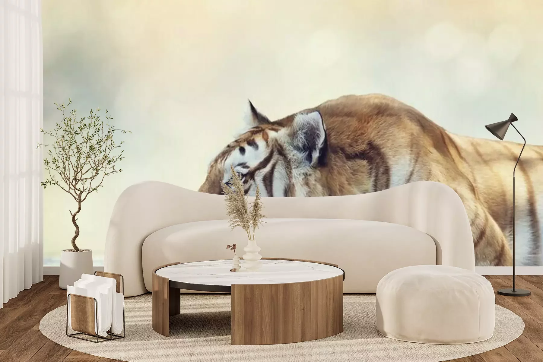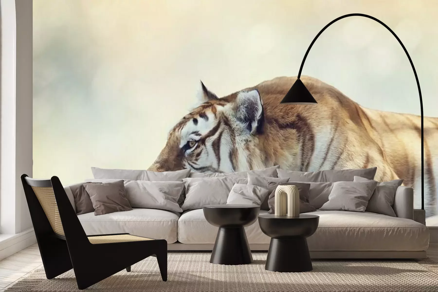 Het materiaal Premium+ is een gestructureerd vinyl op vlies met een gewicht van 255 g/m², dat kleine oneffenheden in de muur effectief camoufleert. De subtiele structuur van fijn zand geeft het oppervlak een exclusieve uitstraling, terwijl de halfmatte afwerking de diepte van de kleuren benadrukt. Het materiaal is dampdoorlatend, waardoor het ook in de keuken en badkamer kan worden gebruikt. De maximale breedte van één baan bedraagt 100 cm – bij grotere afmetingen wordt het fotobehang in meerdere gelijke banen verdeeld. De lijm wordt direct op de muur aangebracht en het behang wordt rand-aan-rand geplakt, wat zorgt voor een esthetisch resultaat zonder zichtbare naden. Het oppervlak kan gemakkelijk worden schoongemaakt door het voorzichtig af te nemen met een vochtige doek.
