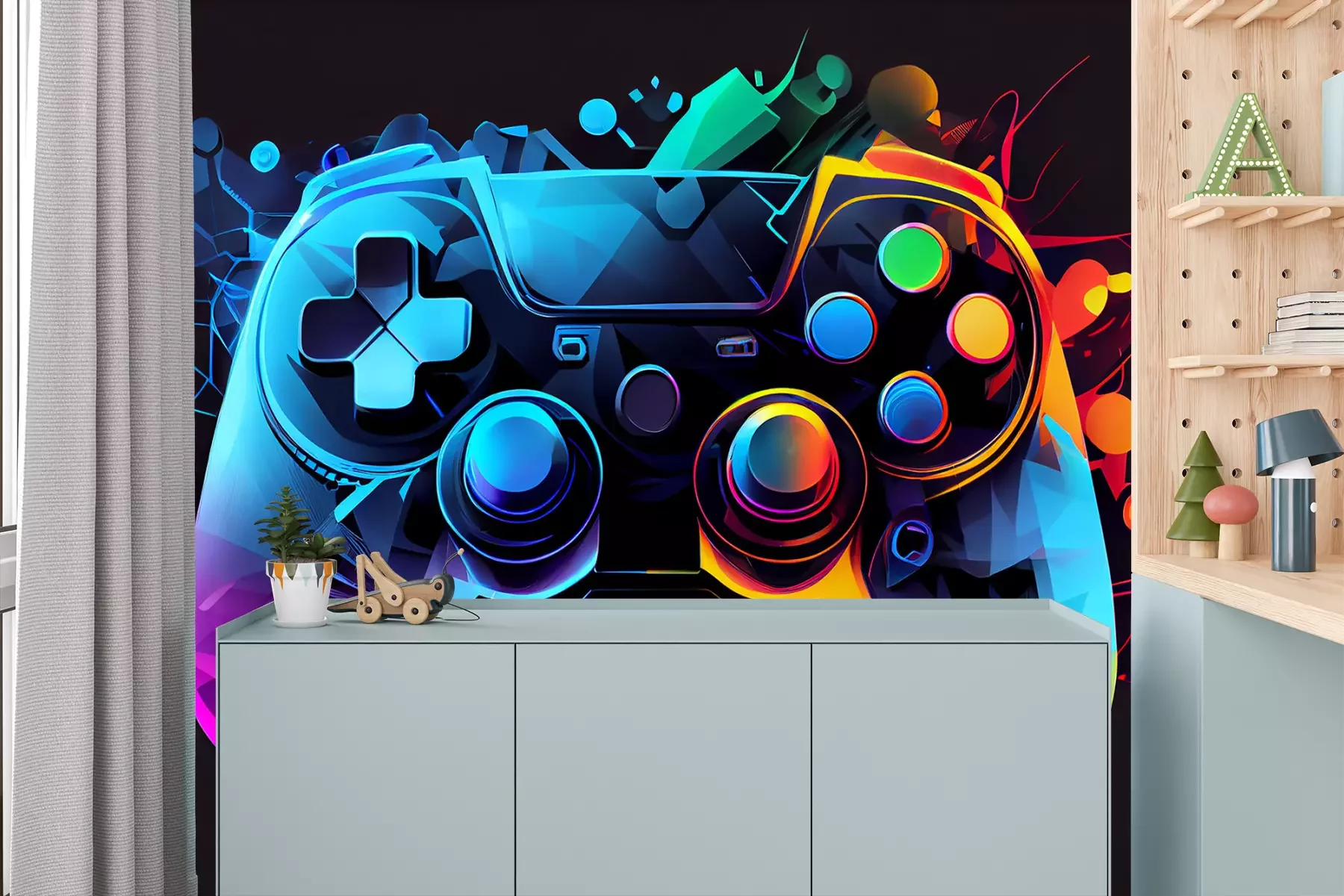 Een fotobehang voor gamers is een uitstekende manier om een interieur te creëren dat niet alleen origineel is, maar ook de passie en interesses weerspiegelt. Het ontwerp dat door Redro wordt aangeboden, is zeer indrukwekkend, en de sappige en levendige kleuren van de controller maken van deze wanddecoratie een krachtig middelpunt in de kamer. Het door ons voorgestelde fotobehang voor jongeren maakt een snelle metamorfose van de kamer mogelijk, en dat met slechts dit ene element. Wat meteen de aandacht trekt, is de moderne vorm van het fotobehang. Kleurrijke controller biedt niet alleen felle kleuren, maar ook een verrassende joystickvorm die buiten de contouren vervaagt. Omdat de compositie erg expressief is, is het het beste om elementen in kleuren die aansluiten bij de wanddecoratie toe te voegen om het goed tot zijn recht te laten komen. Zo’n fotobehang voor jongeren past perfect bij neonmeubels of textiel. Om de bestaande inrichting niet te veranderen, kun je ook kiezen voor andere wanddecoraties, zoals posters en schilderijen met een gamethema, om extra kleuren aan het interieur toe te voegen. Het ontwerp is zo universeel dat dit fotobehang voor gamers zowel geschikt is voor een kinder- als een tienerkamer. Het voordeel van een decoratie die aansluit bij interesses is dat zo’n interieurontwerp nooit uit de mode raakt of gaat vervelen. Dit fotobehang is niet alleen geschikt voor thuis. Joystick is ook een uitstekend decoratief motief voor een winkel met gameaccessoires of een bedrijf dat computerspellen ontwerpt. Doordat we voor onze wanddecoraties inkt van de hoogste kwaliteit gebruiken, vervaagt het ontwerp niet onder invloed van licht en behouden de levendige kleuren jarenlang hun intensiteit. Het is ook noemenswaardig dat dit kleurrijke ontwerp op verzoek in een zwart-witte versie besteld kan worden voor een meer ingetogen effect in het interieur.