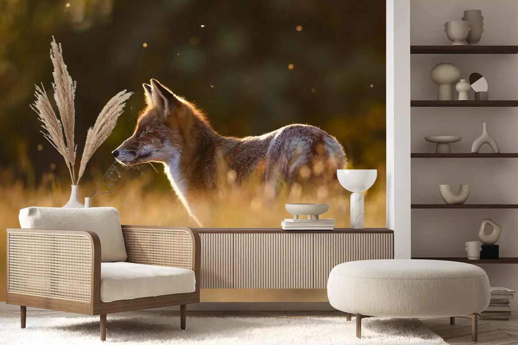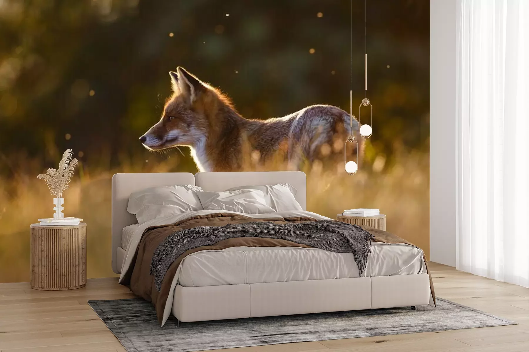 Het materiaal Premium+ is een gestructureerd vinyl op vlies met een gewicht van 255 g/m², dat kleine oneffenheden in de muur effectief camoufleert. De subtiele structuur van fijn zand geeft het oppervlak een exclusieve uitstraling, terwijl de halfmatte afwerking de diepte van de kleuren benadrukt. Het materiaal is dampdoorlatend, waardoor het ook in de keuken en badkamer kan worden gebruikt. De maximale breedte van één baan bedraagt 100 cm – bij grotere afmetingen wordt het fotobehang in meerdere gelijke banen verdeeld. De lijm wordt direct op de muur aangebracht en het behang wordt rand-aan-rand geplakt, wat zorgt voor een esthetisch resultaat zonder zichtbare naden. Het oppervlak kan gemakkelijk worden schoongemaakt door het voorzichtig af te nemen met een vochtige doek.