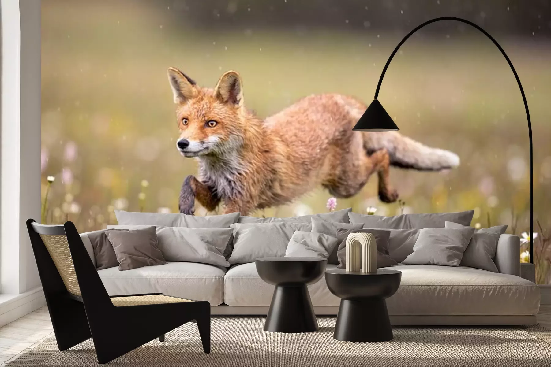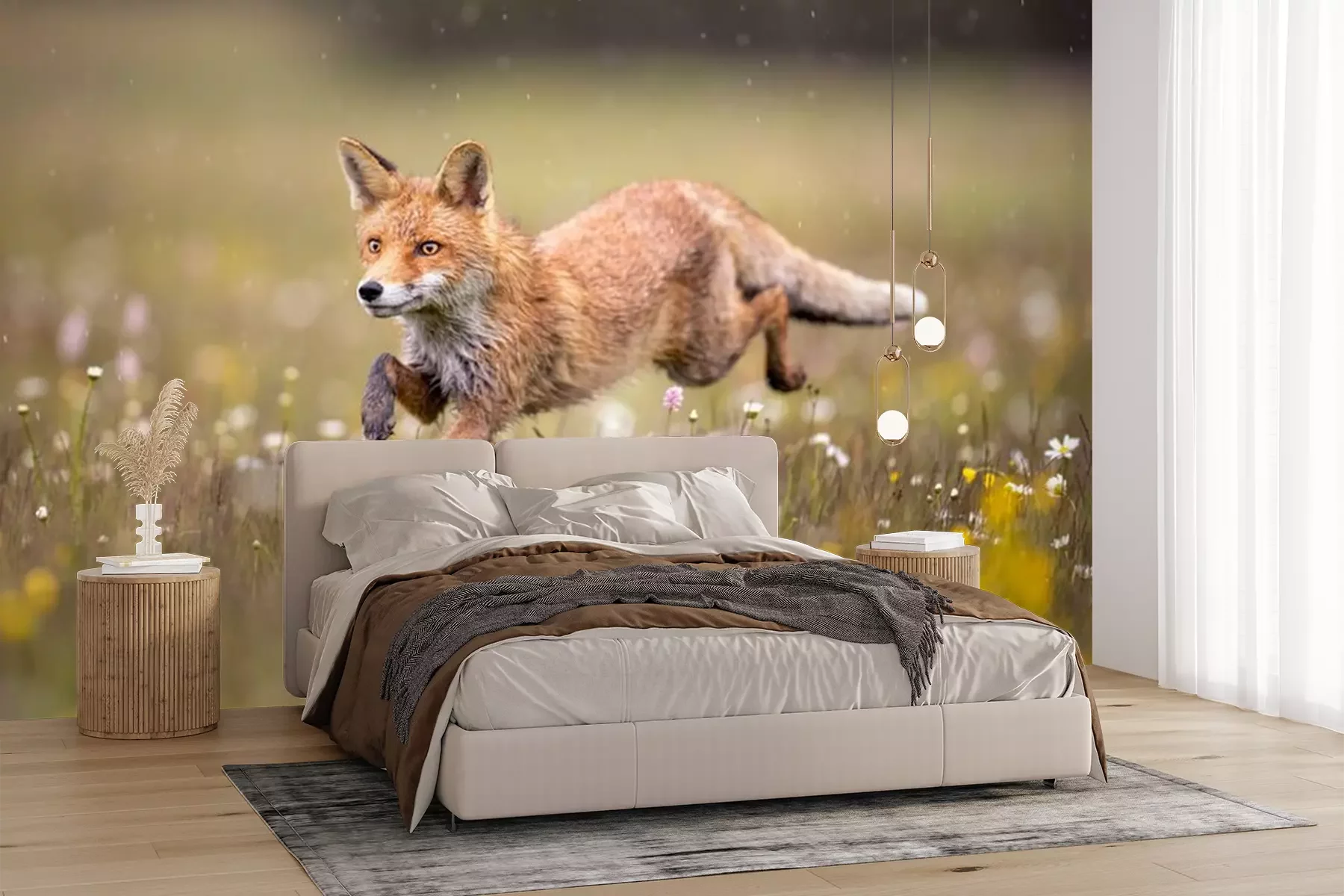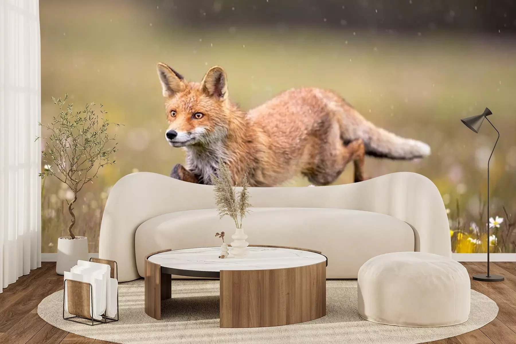 Fotobehang Vos op een bloemenweide