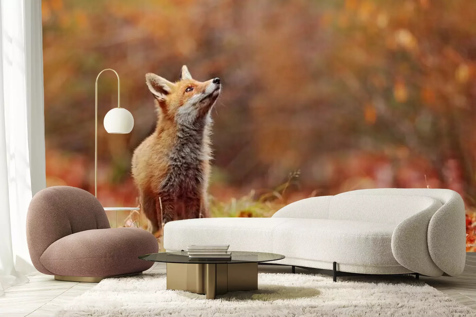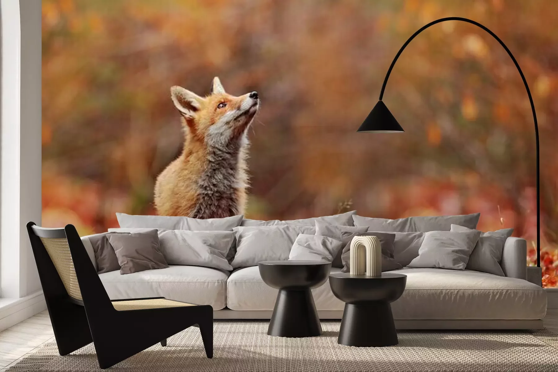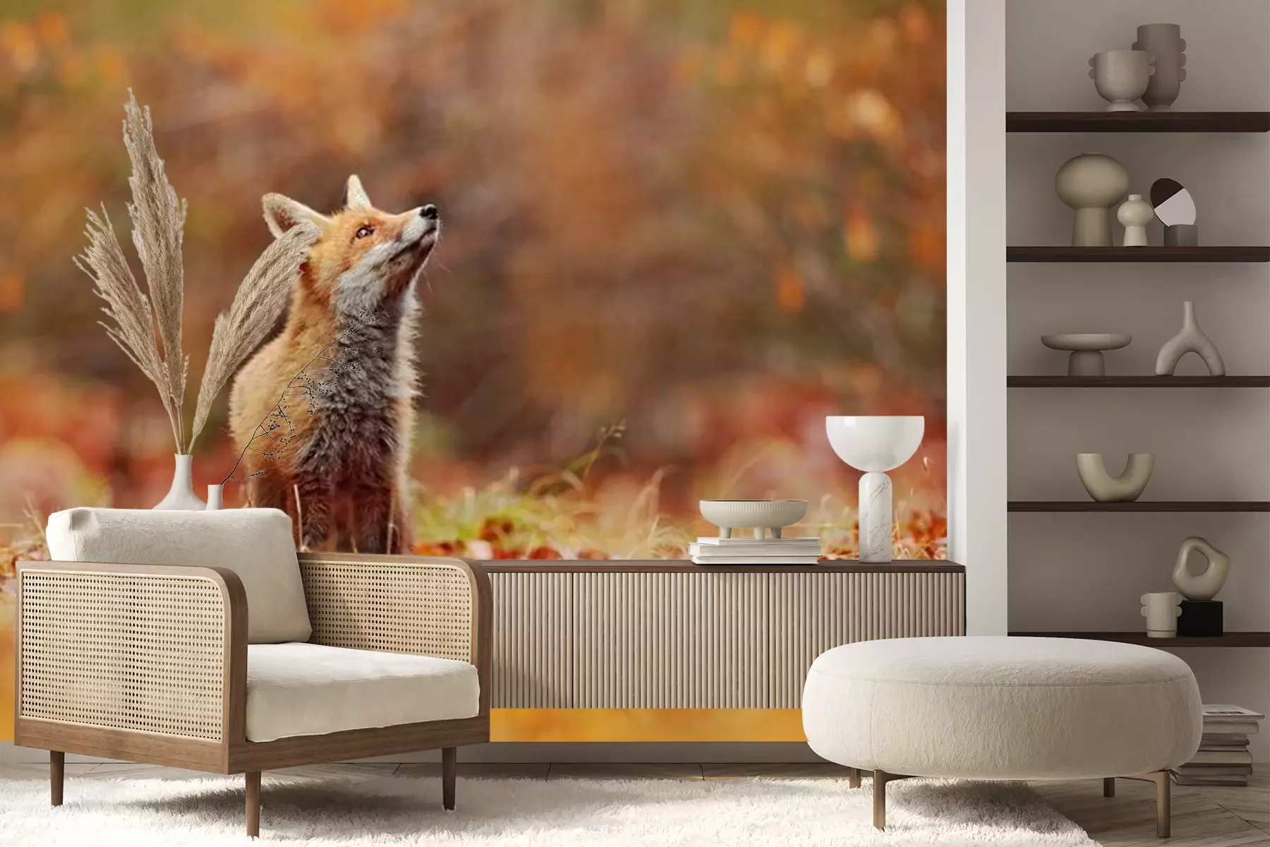 Een rode vos staat in droog grasProbleemloze bezorging verzorgd door vertrouwde vervoerders