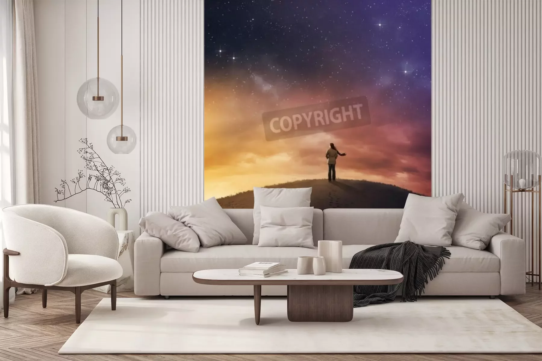 Fotobehang Vrouw en sterren aan de hemel