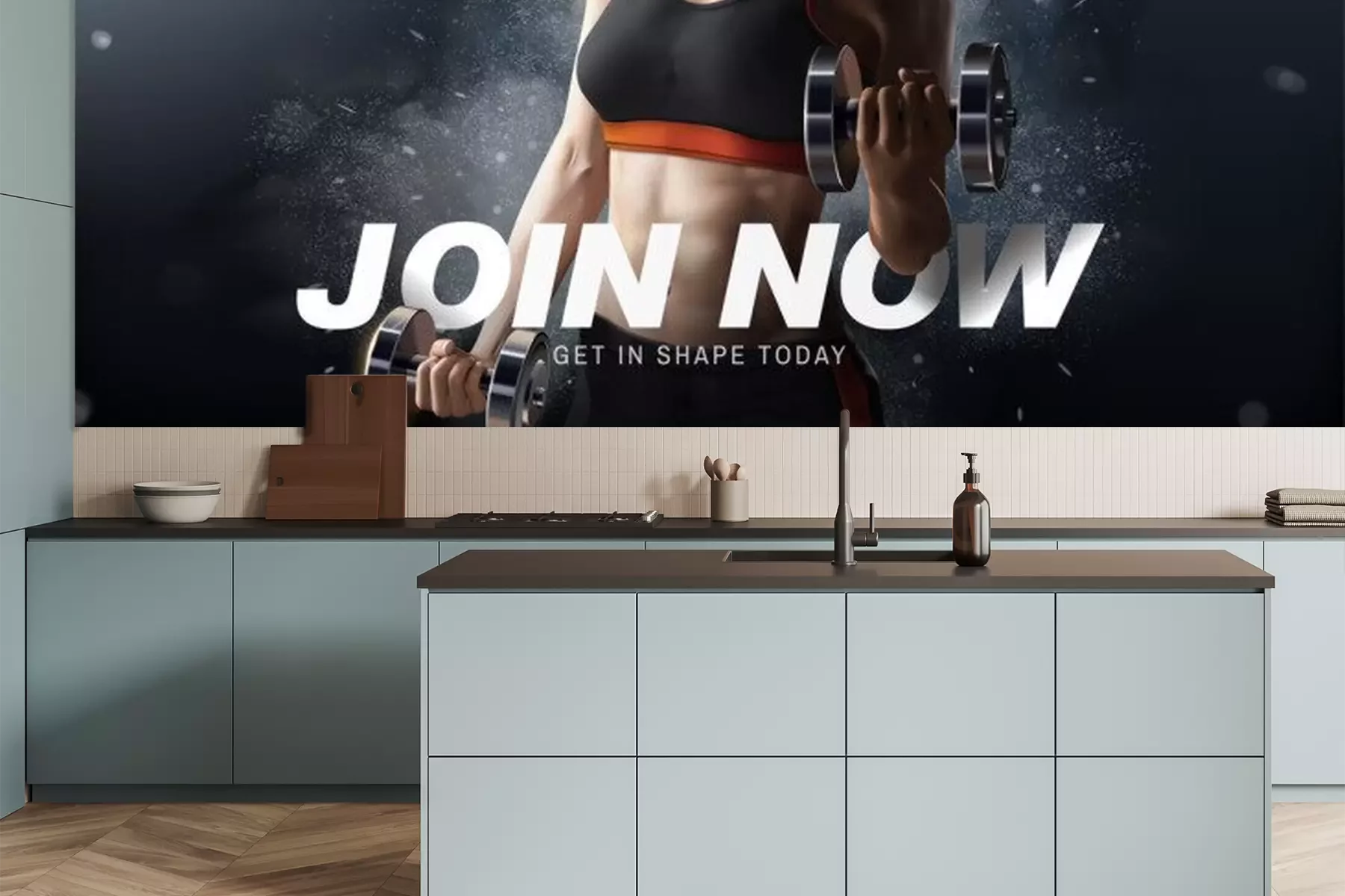 Fotobehang Vrouwelijk figuur tijdens buikspieroefeningen