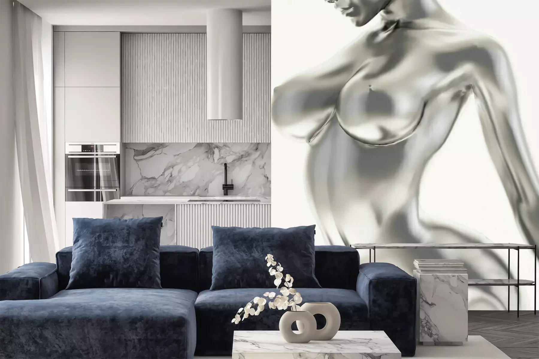 Het materiaal Premium+ is een gestructureerd vinyl op vlies met een gewicht van 255 g/m², dat kleine oneffenheden in de muur effectief camoufleert. De subtiele structuur van fijn zand geeft het oppervlak een exclusieve uitstraling, terwijl de halfmatte afwerking de diepte van de kleuren benadrukt. Het materiaal is dampdoorlatend, waardoor het ook in de keuken en badkamer kan worden gebruikt. De maximale breedte van één baan bedraagt 100 cm – bij grotere afmetingen wordt het fotobehang in meerdere gelijke banen verdeeld. De lijm wordt direct op de muur aangebracht en het behang wordt rand-aan-rand geplakt, wat zorgt voor een esthetisch resultaat zonder zichtbare naden. Het oppervlak kan gemakkelijk worden schoongemaakt door het voorzichtig af te nemen met een vochtige doek.