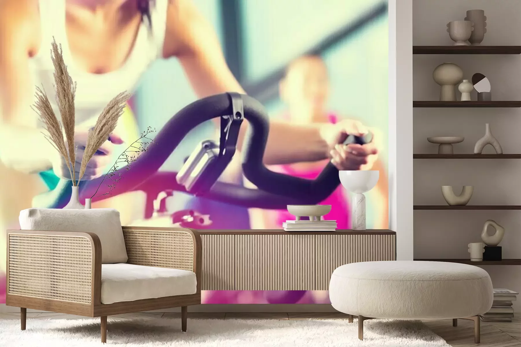 Het materiaal Premium+ is een gestructureerd vinyl op vlies met een gewicht van 255 g/m², dat kleine oneffenheden in de muur effectief camoufleert. De subtiele structuur van fijn zand geeft het oppervlak een exclusieve uitstraling, terwijl de halfmatte afwerking de diepte van de kleuren benadrukt. Het materiaal is dampdoorlatend, waardoor het ook in de keuken en badkamer kan worden gebruikt. De maximale breedte van één baan bedraagt 100 cm – bij grotere afmetingen wordt het fotobehang in meerdere gelijke banen verdeeld. De lijm wordt direct op de muur aangebracht en het behang wordt rand-aan-rand geplakt, wat zorgt voor een esthetisch resultaat zonder zichtbare naden. Het oppervlak kan gemakkelijk worden schoongemaakt door het voorzichtig af te nemen met een vochtige doek.