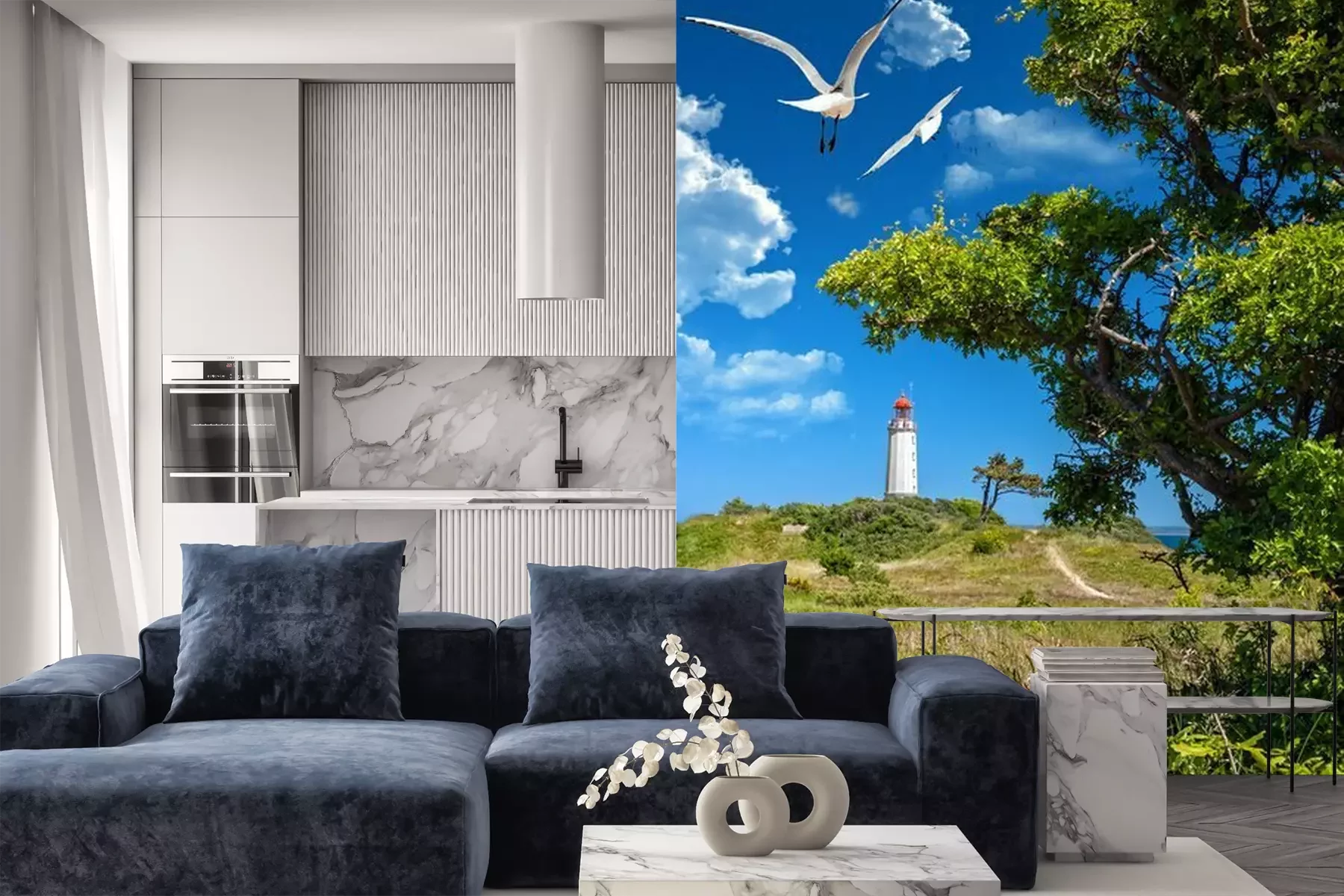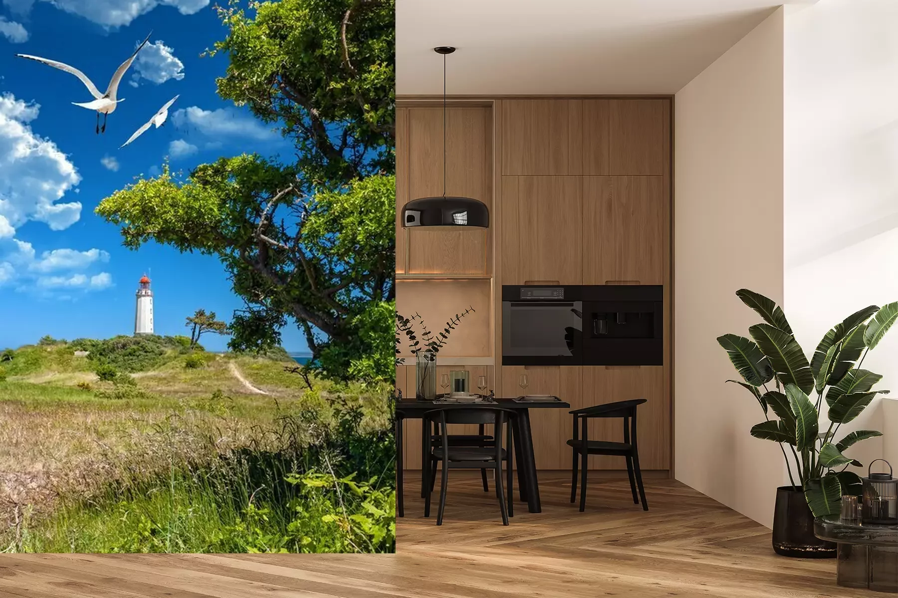 Het materiaal Premium+ is een gestructureerd vinyl op vlies met een gewicht van 255 g/m², dat kleine oneffenheden in de muur effectief camoufleert. De subtiele structuur van fijn zand geeft het oppervlak een exclusieve uitstraling, terwijl de halfmatte afwerking de diepte van de kleuren benadrukt. Het materiaal is dampdoorlatend, waardoor het ook in de keuken en badkamer kan worden gebruikt. De maximale breedte van één baan bedraagt 100 cm – bij grotere afmetingen wordt het fotobehang in meerdere gelijke banen verdeeld. De lijm wordt direct op de muur aangebracht en het behang wordt rand-aan-rand geplakt, wat zorgt voor een esthetisch resultaat zonder zichtbare naden. Het oppervlak kan gemakkelijk worden schoongemaakt door het voorzichtig af te nemen met een vochtige doek.