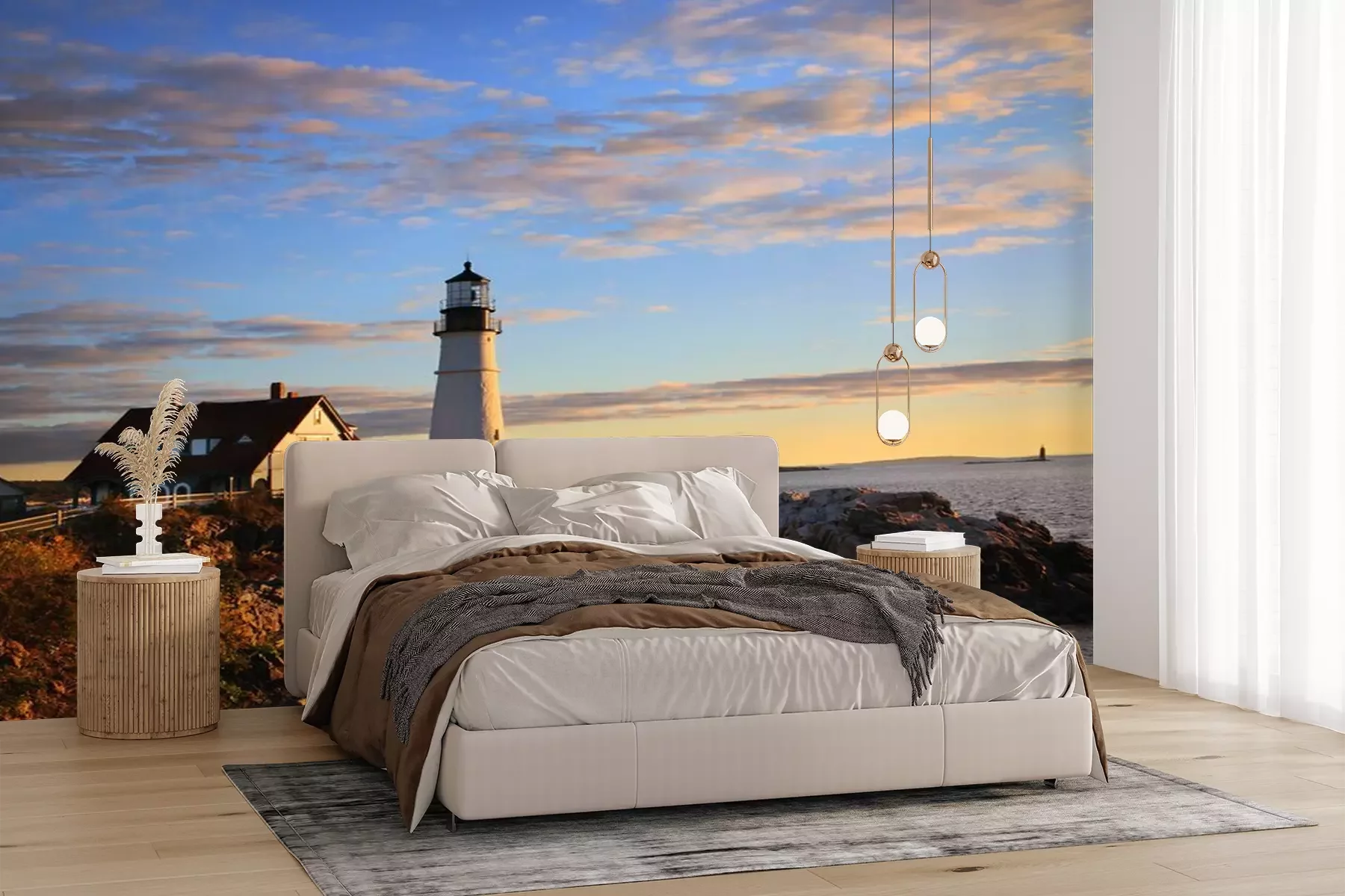 Het materiaal Premium+ is een gestructureerd vinyl op vlies met een gewicht van 255 g/m², dat kleine oneffenheden in de muur effectief camoufleert. De subtiele structuur van fijn zand geeft het oppervlak een exclusieve uitstraling, terwijl de halfmatte afwerking de diepte van de kleuren benadrukt. Het materiaal is dampdoorlatend, waardoor het ook in de keuken en badkamer kan worden gebruikt. De maximale breedte van één baan bedraagt 100 cm – bij grotere afmetingen wordt het fotobehang in meerdere gelijke banen verdeeld. De lijm wordt direct op de muur aangebracht en het behang wordt rand-aan-rand geplakt, wat zorgt voor een esthetisch resultaat zonder zichtbare naden. Het oppervlak kan gemakkelijk worden schoongemaakt door het voorzichtig af te nemen met een vochtige doek.