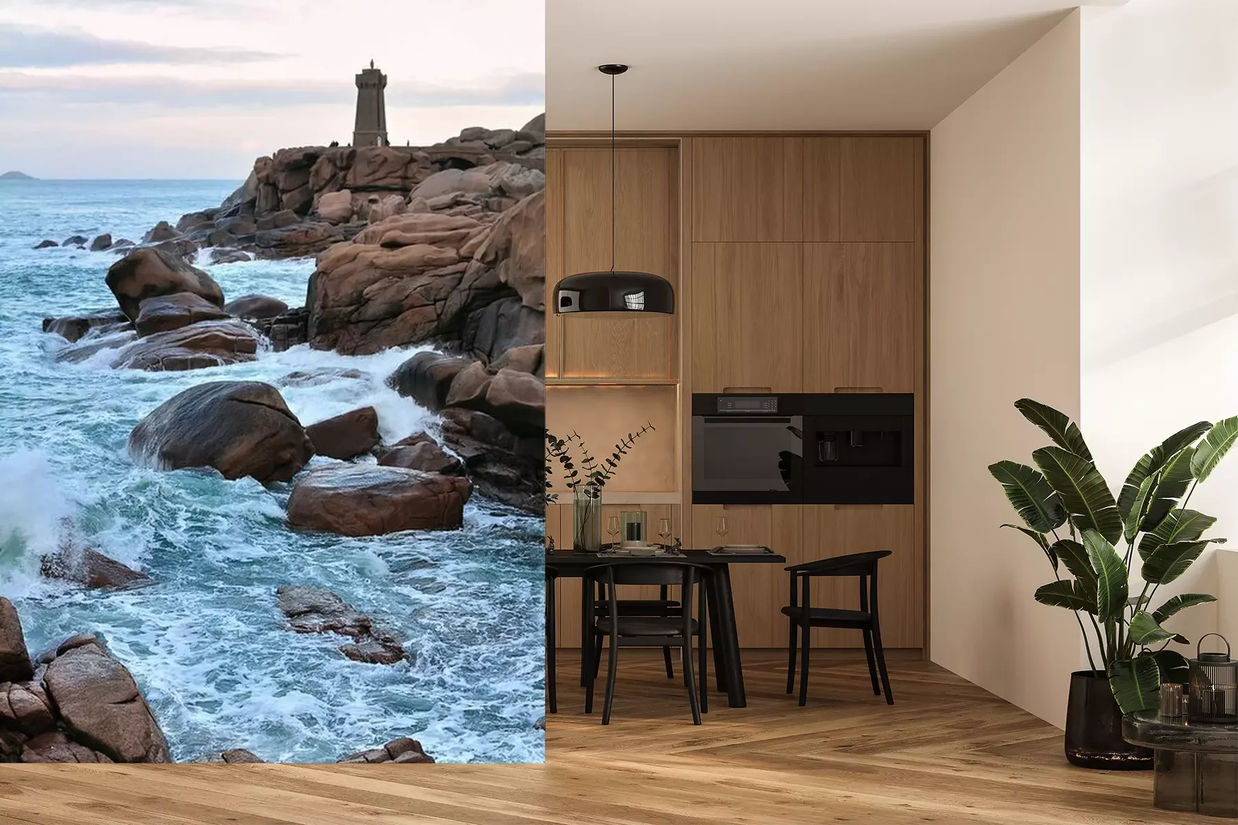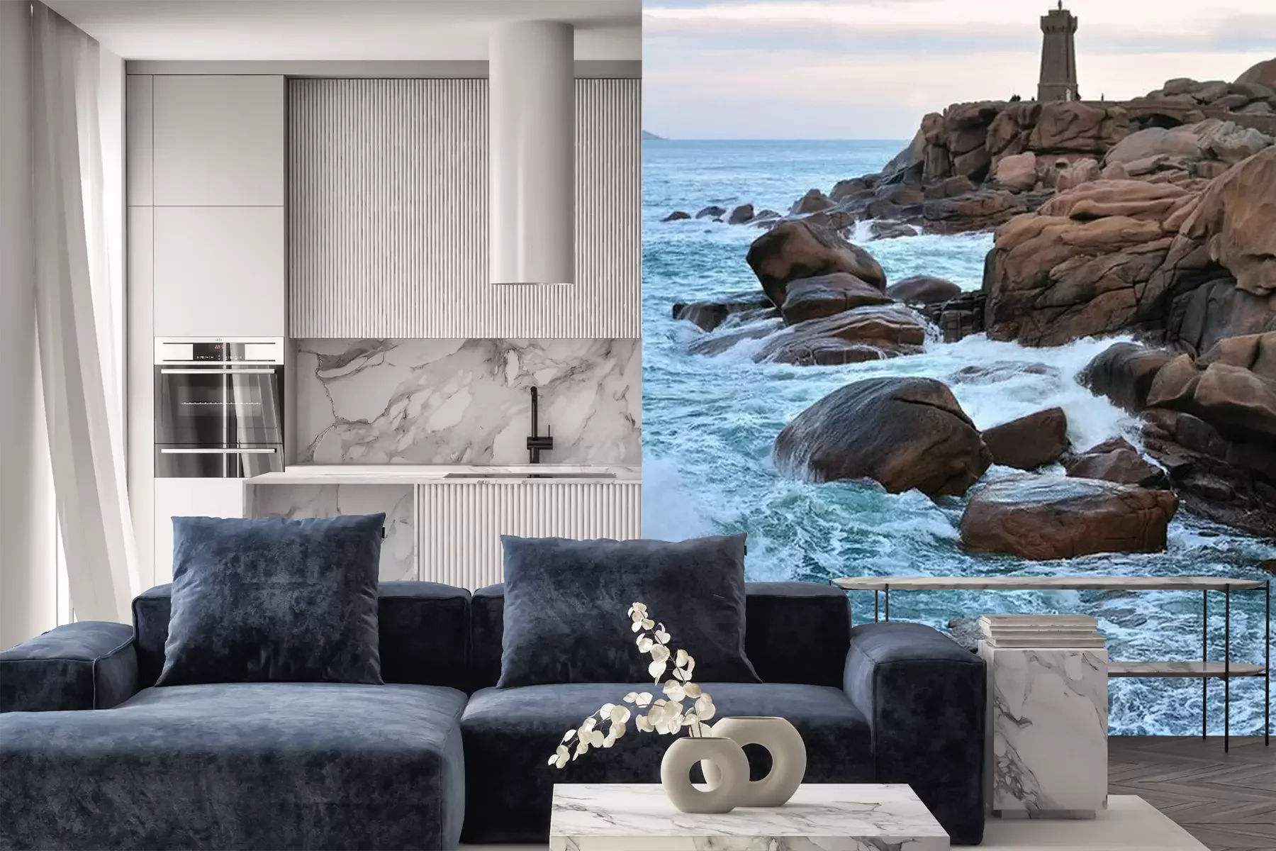 Het materiaal Premium+ is een gestructureerd vinyl op vlies met een gewicht van 255 g/m², dat kleine oneffenheden in de muur effectief camoufleert. De subtiele structuur van fijn zand geeft het oppervlak een exclusieve uitstraling, terwijl de halfmatte afwerking de diepte van de kleuren benadrukt. Het materiaal is dampdoorlatend, waardoor het ook in de keuken en badkamer kan worden gebruikt. De maximale breedte van één baan bedraagt 100 cm – bij grotere afmetingen wordt het fotobehang in meerdere gelijke banen verdeeld. De lijm wordt direct op de muur aangebracht en het behang wordt rand-aan-rand geplakt, wat zorgt voor een esthetisch resultaat zonder zichtbare naden. Het oppervlak kan gemakkelijk worden schoongemaakt door het voorzichtig af te nemen met een vochtige doek.