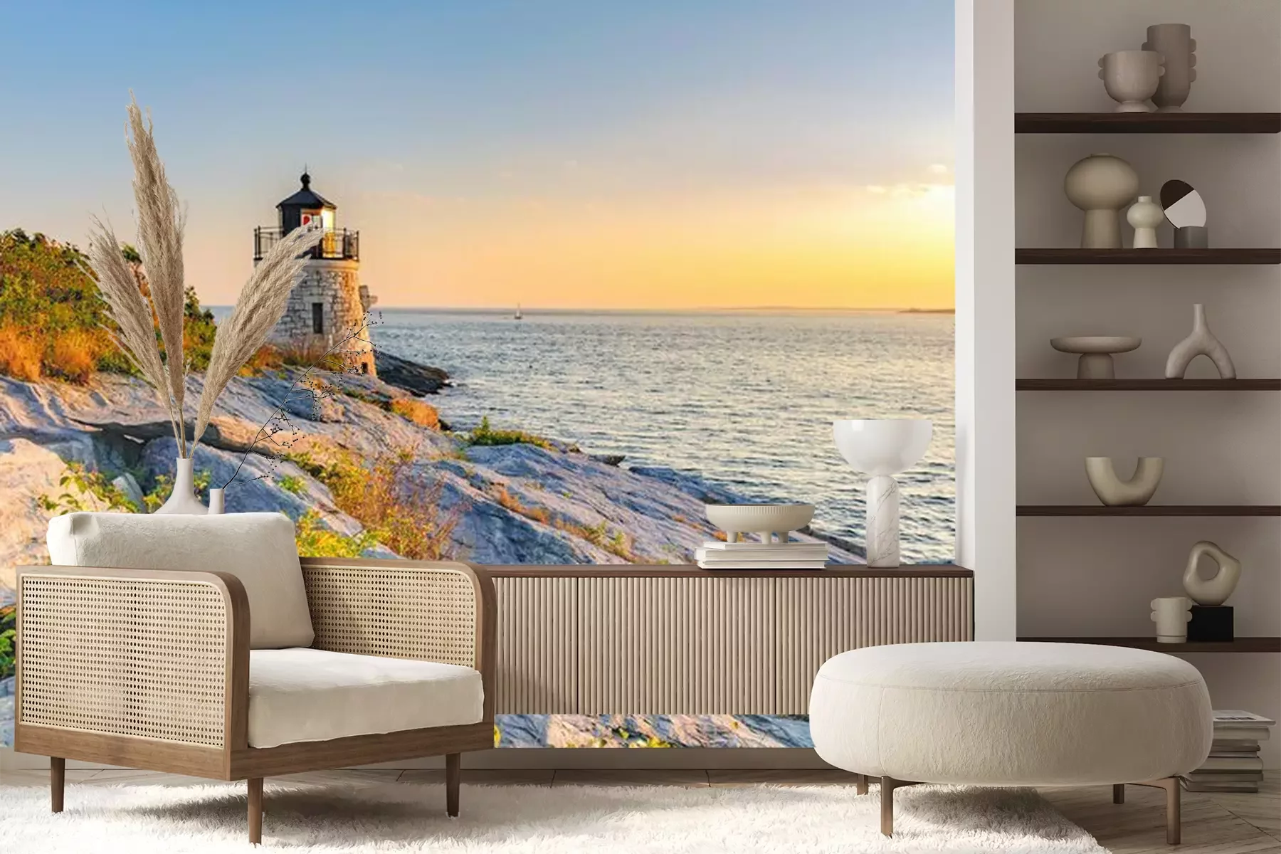 Het materiaal Premium+ is een gestructureerd vinyl op vlies met een gewicht van 255 g/m², dat kleine oneffenheden in de muur effectief camoufleert. De subtiele structuur van fijn zand geeft het oppervlak een exclusieve uitstraling, terwijl de halfmatte afwerking de diepte van de kleuren benadrukt. Het materiaal is dampdoorlatend, waardoor het ook in de keuken en badkamer kan worden gebruikt. De maximale breedte van één baan bedraagt 100 cm – bij grotere afmetingen wordt het fotobehang in meerdere gelijke banen verdeeld. De lijm wordt direct op de muur aangebracht en het behang wordt rand-aan-rand geplakt, wat zorgt voor een esthetisch resultaat zonder zichtbare naden. Het oppervlak kan gemakkelijk worden schoongemaakt door het voorzichtig af te nemen met een vochtige doek.