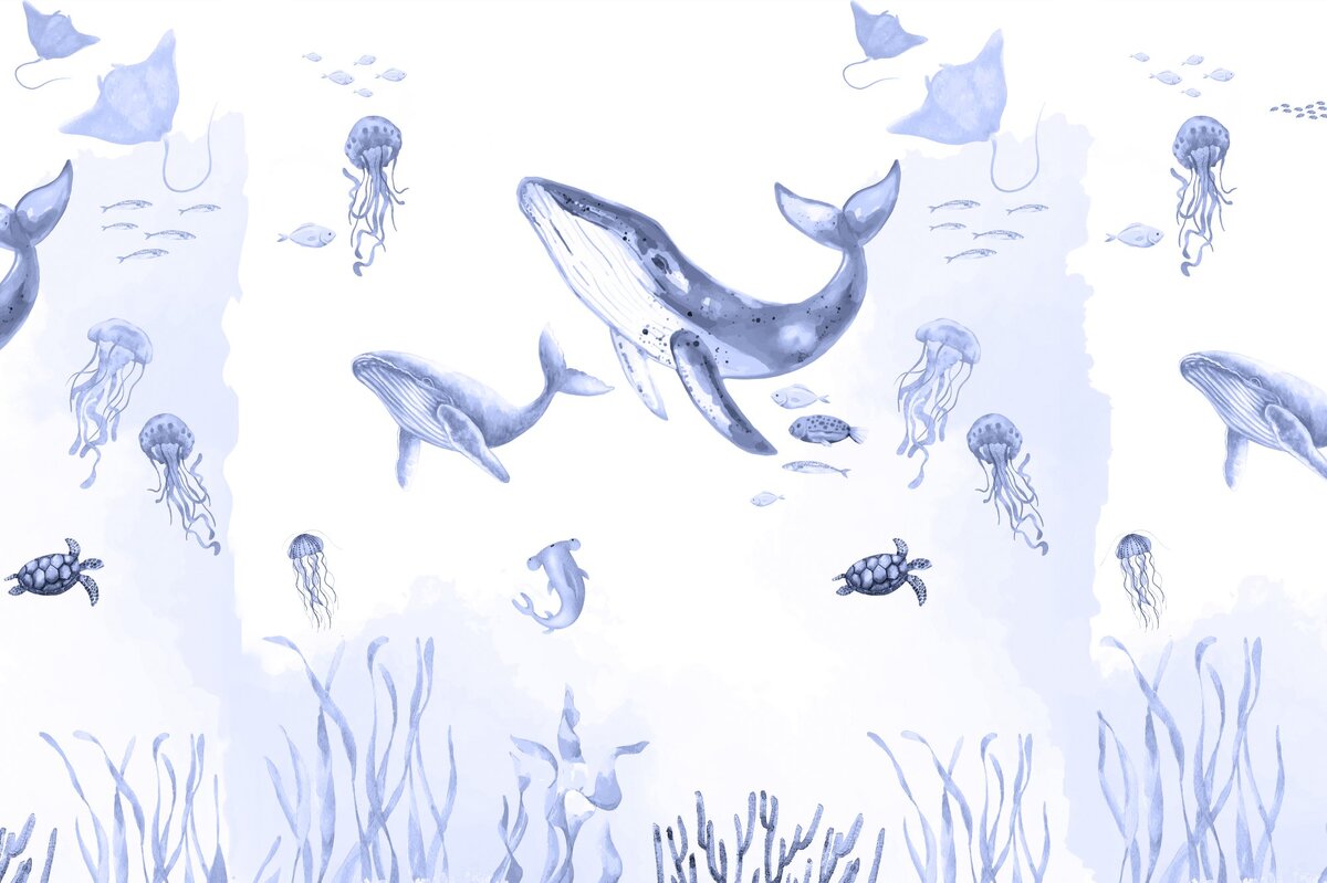 Fotobehang: Walvis en kwallen in een zeegezicht
