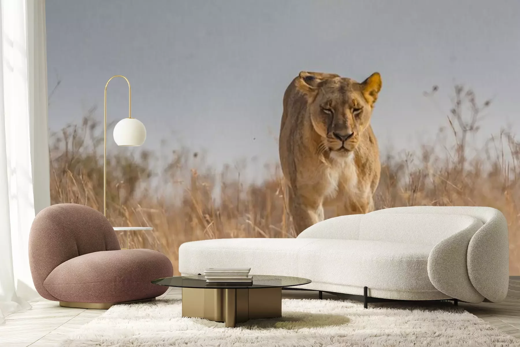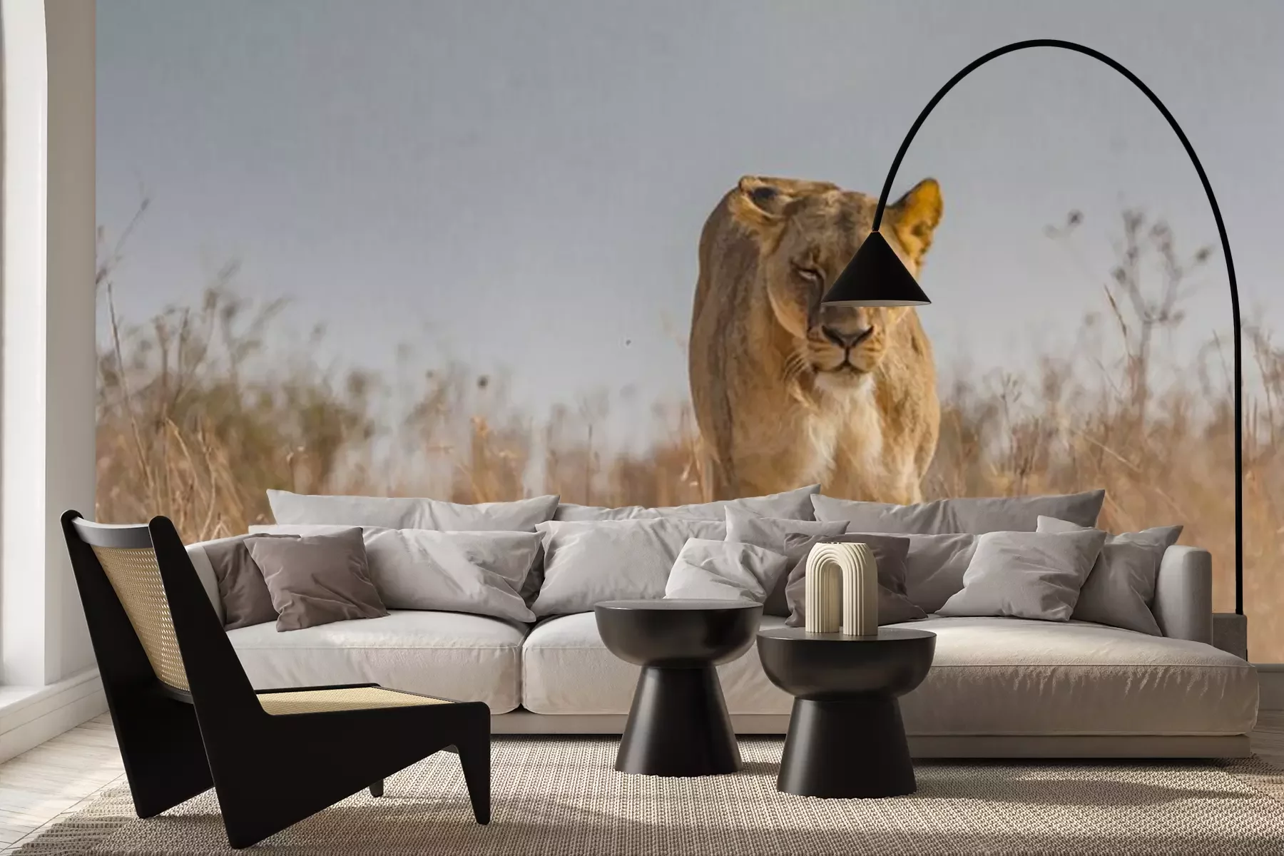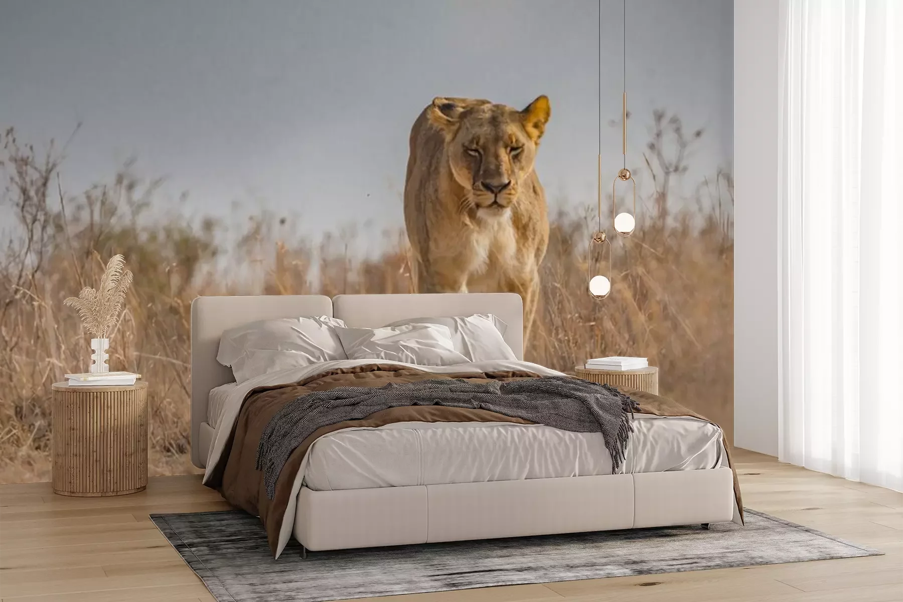 Fotobehang Wandelende leeuwin op de savanne