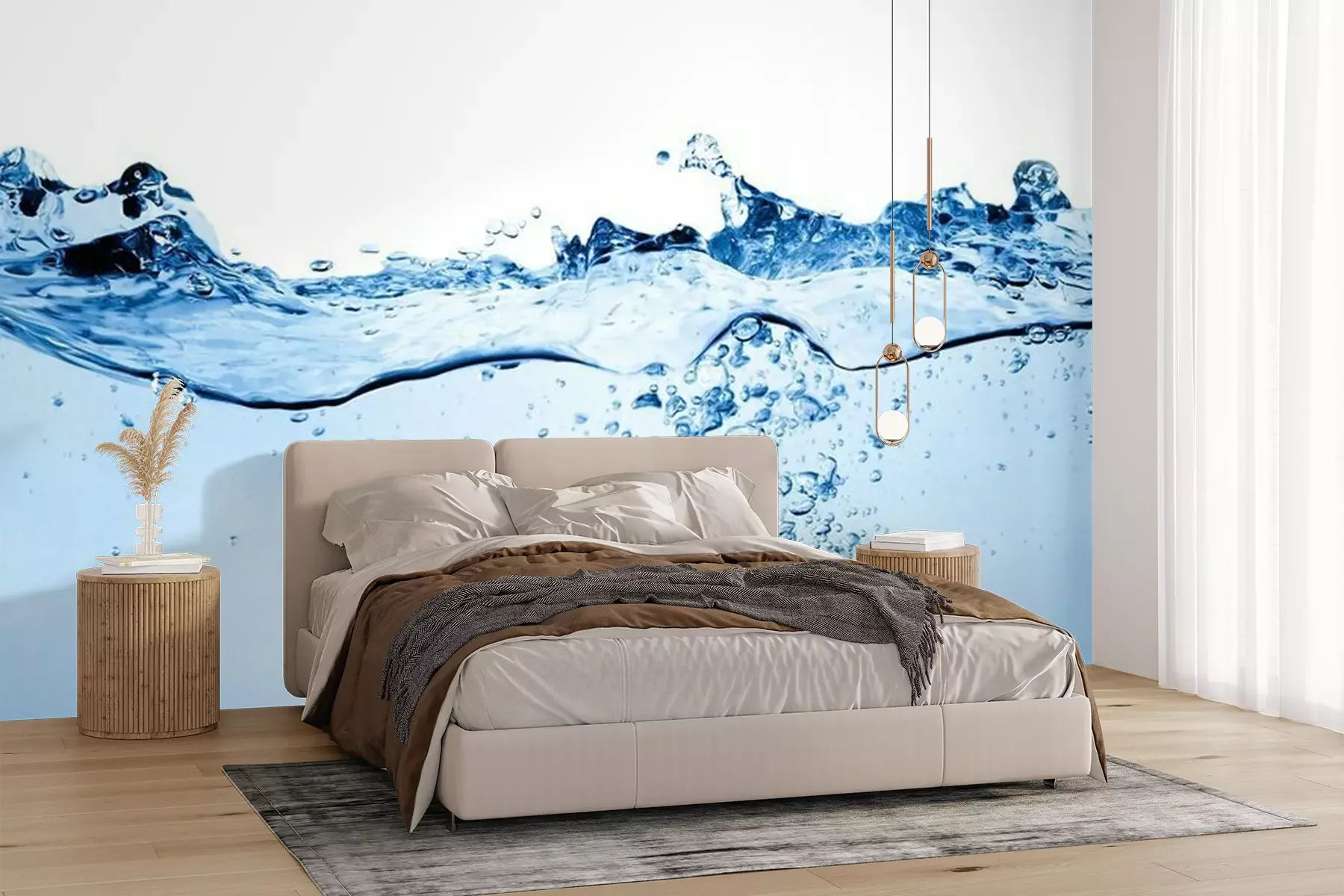 Het materiaal Premium+ is een gestructureerd vinyl op vlies met een gewicht van 255 g/m², dat kleine oneffenheden in de muur effectief camoufleert. De subtiele structuur van fijn zand geeft het oppervlak een exclusieve uitstraling, terwijl de halfmatte afwerking de diepte van de kleuren benadrukt. Het materiaal is dampdoorlatend, waardoor het ook in de keuken en badkamer kan worden gebruikt. De maximale breedte van één baan bedraagt 100 cm – bij grotere afmetingen wordt het fotobehang in meerdere gelijke banen verdeeld. De lijm wordt direct op de muur aangebracht en het behang wordt rand-aan-rand geplakt, wat zorgt voor een esthetisch resultaat zonder zichtbare naden. Het oppervlak kan gemakkelijk worden schoongemaakt door het voorzichtig af te nemen met een vochtige doek.
