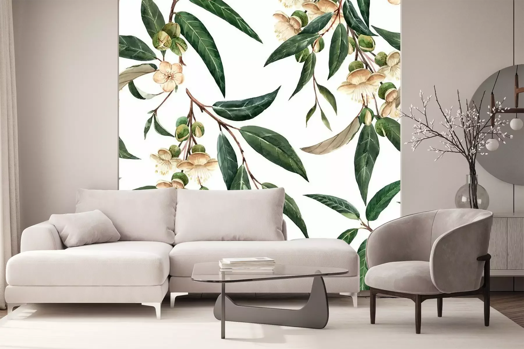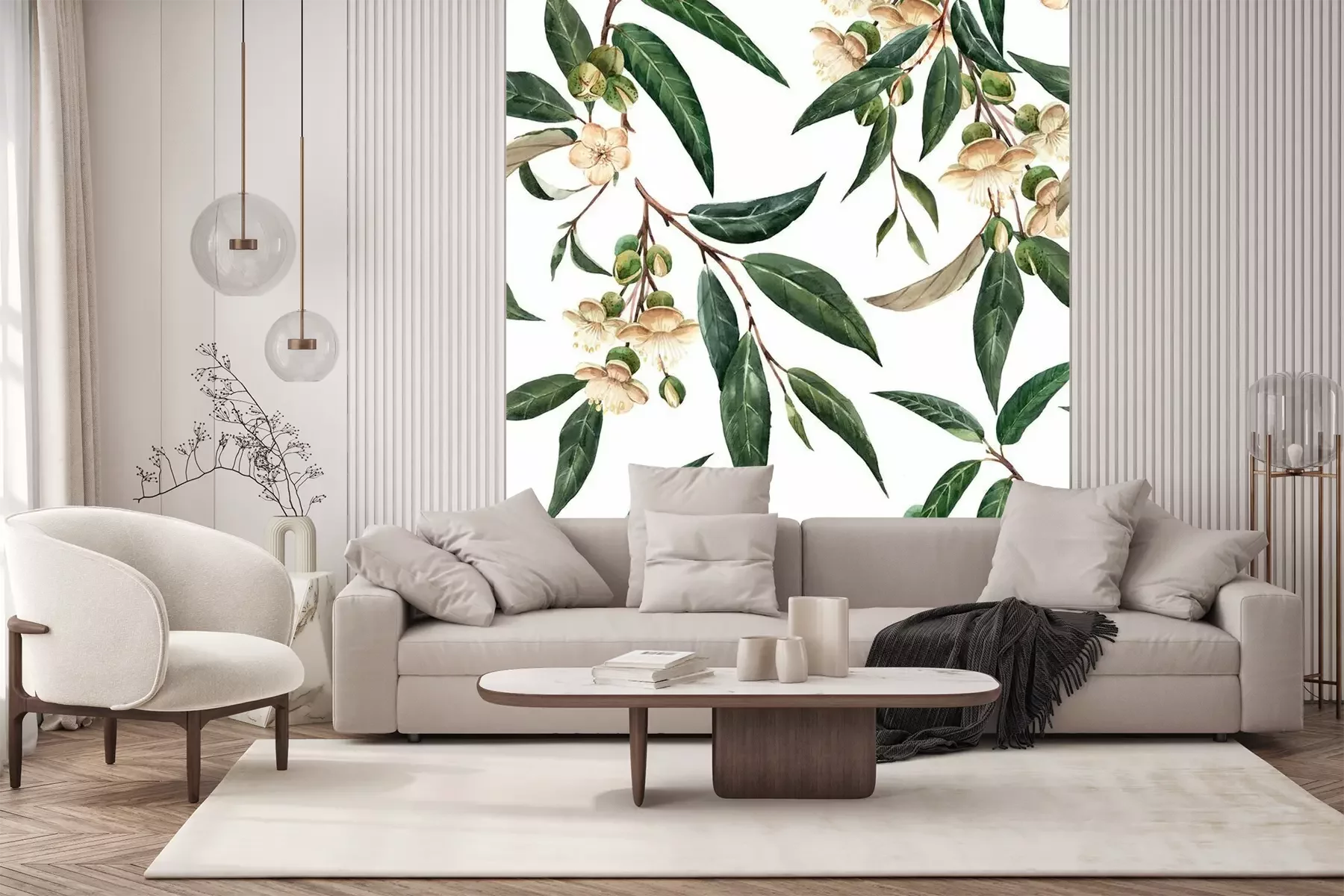 Het materiaal Premium+ is een gestructureerd vinyl op vlies met een gewicht van 255 g/m², dat kleine oneffenheden in de muur effectief camoufleert. De subtiele structuur van fijn zand geeft het oppervlak een exclusieve uitstraling, terwijl de halfmatte afwerking de diepte van de kleuren benadrukt. Het materiaal is dampdoorlatend, waardoor het ook in de keuken en badkamer kan worden gebruikt. De maximale breedte van één baan bedraagt 100 cm – bij grotere afmetingen wordt het fotobehang in meerdere gelijke banen verdeeld. De lijm wordt direct op de muur aangebracht en het behang wordt rand-aan-rand geplakt, wat zorgt voor een esthetisch resultaat zonder zichtbare naden. Het oppervlak kan gemakkelijk worden schoongemaakt door het voorzichtig af te nemen met een vochtige doek.