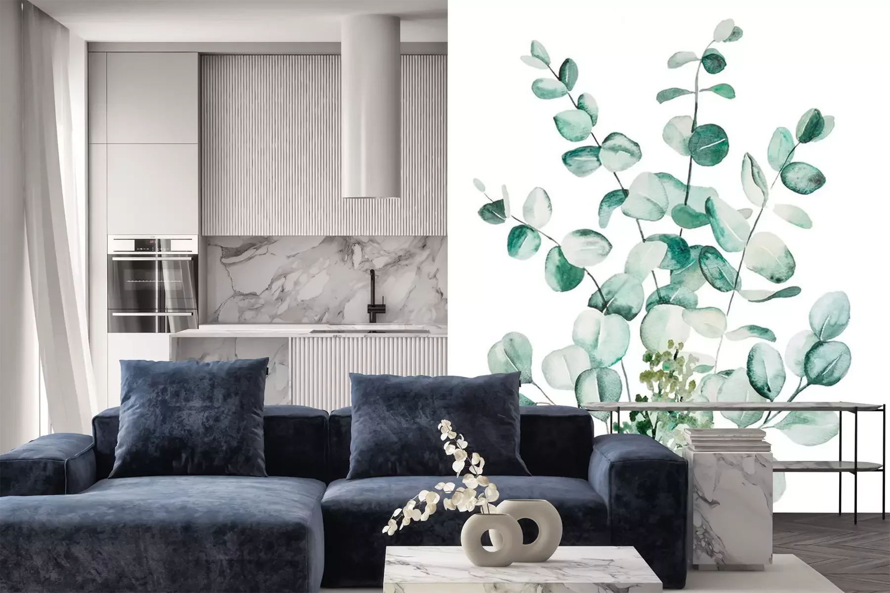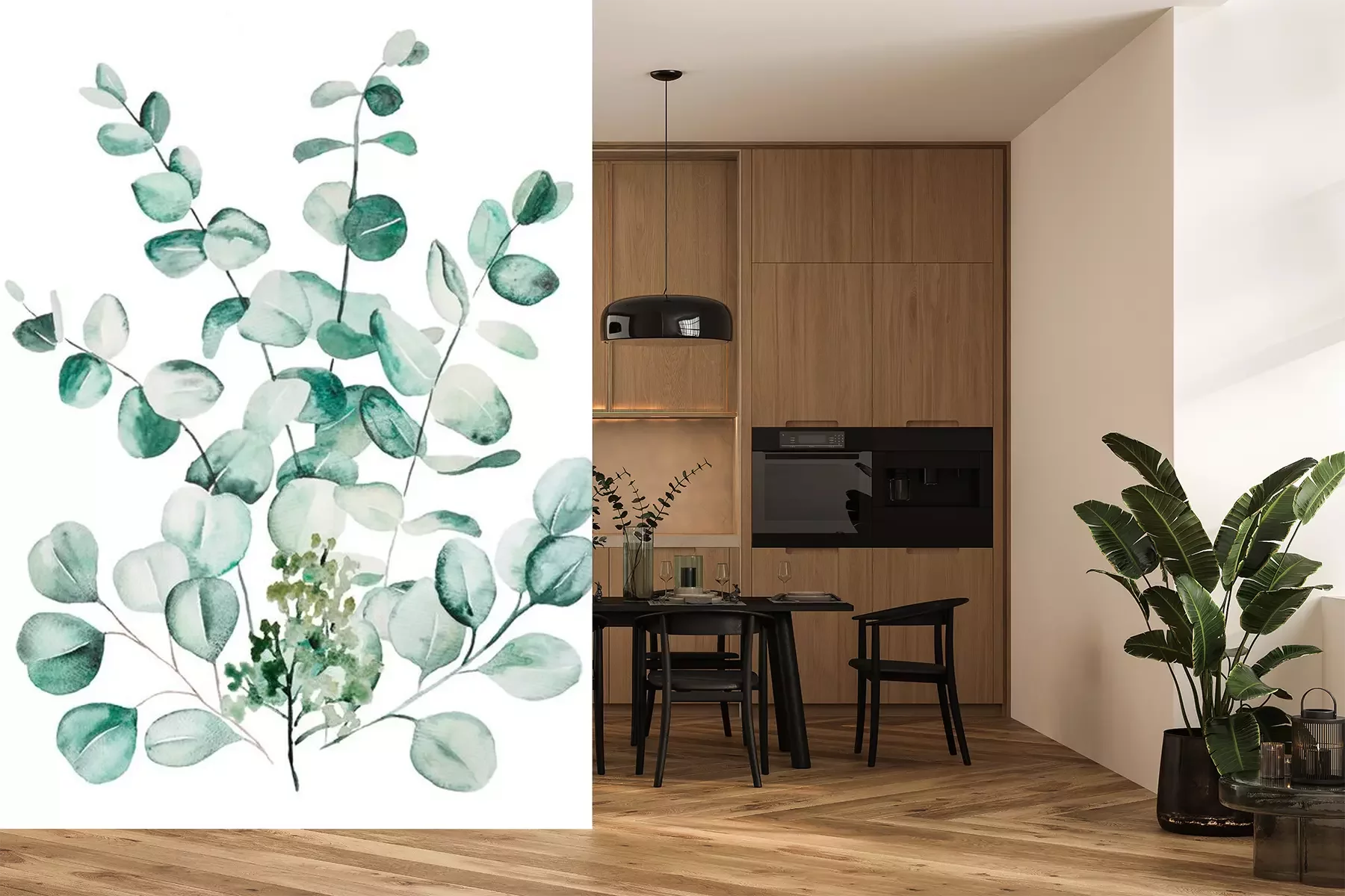 Fotobehang Watercolor eucaliptus leaves set illustration