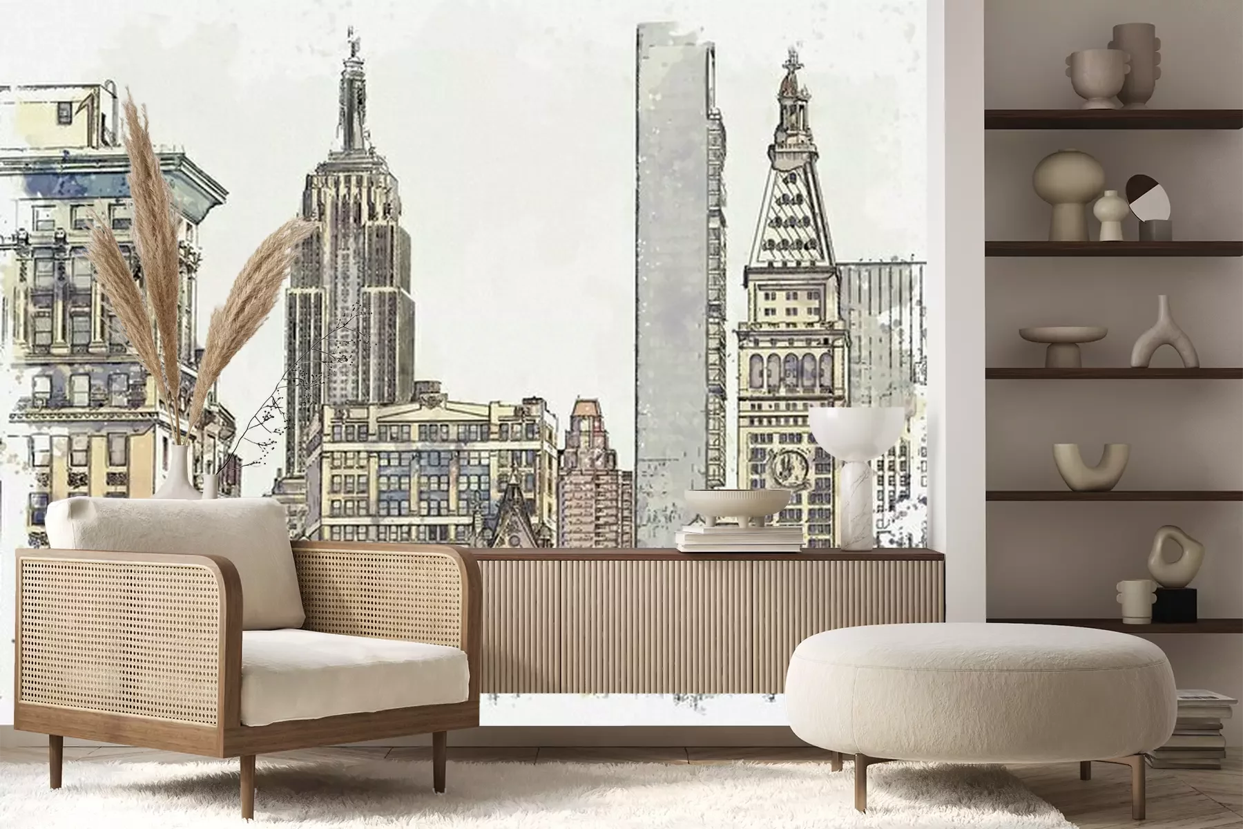 Het materiaal Premium+ is een gestructureerd vinyl op vlies met een gewicht van 255 g/m², dat kleine oneffenheden in de muur effectief camoufleert. De subtiele structuur van fijn zand geeft het oppervlak een exclusieve uitstraling, terwijl de halfmatte afwerking de diepte van de kleuren benadrukt. Het materiaal is dampdoorlatend, waardoor het ook in de keuken en badkamer kan worden gebruikt. De maximale breedte van één baan bedraagt 100 cm – bij grotere afmetingen wordt het fotobehang in meerdere gelijke banen verdeeld. De lijm wordt direct op de muur aangebracht en het behang wordt rand-aan-rand geplakt, wat zorgt voor een esthetisch resultaat zonder zichtbare naden. Het oppervlak kan gemakkelijk worden schoongemaakt door het voorzichtig af te nemen met een vochtige doek.