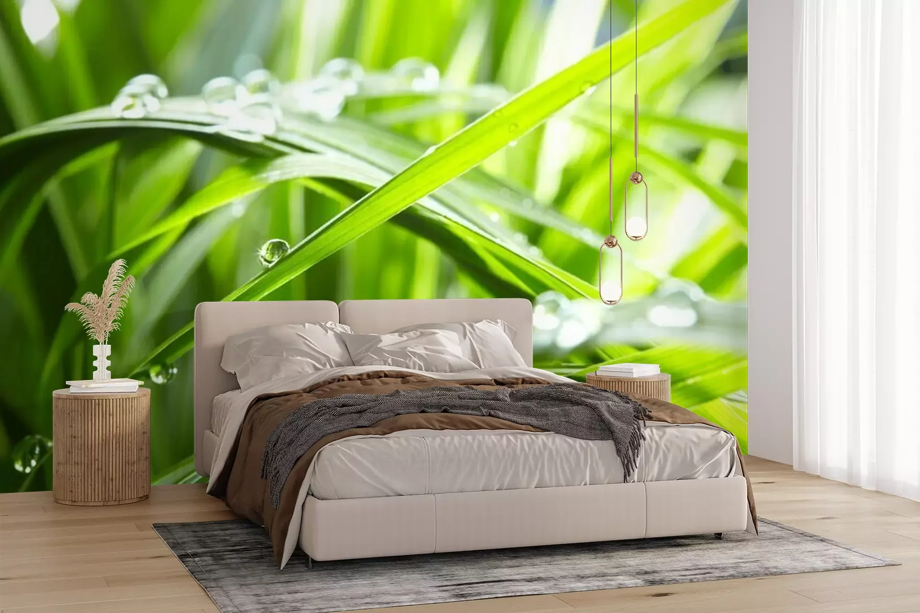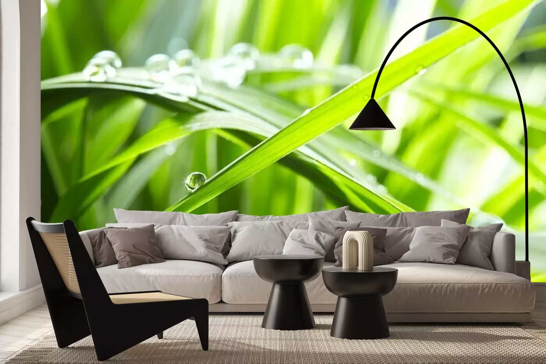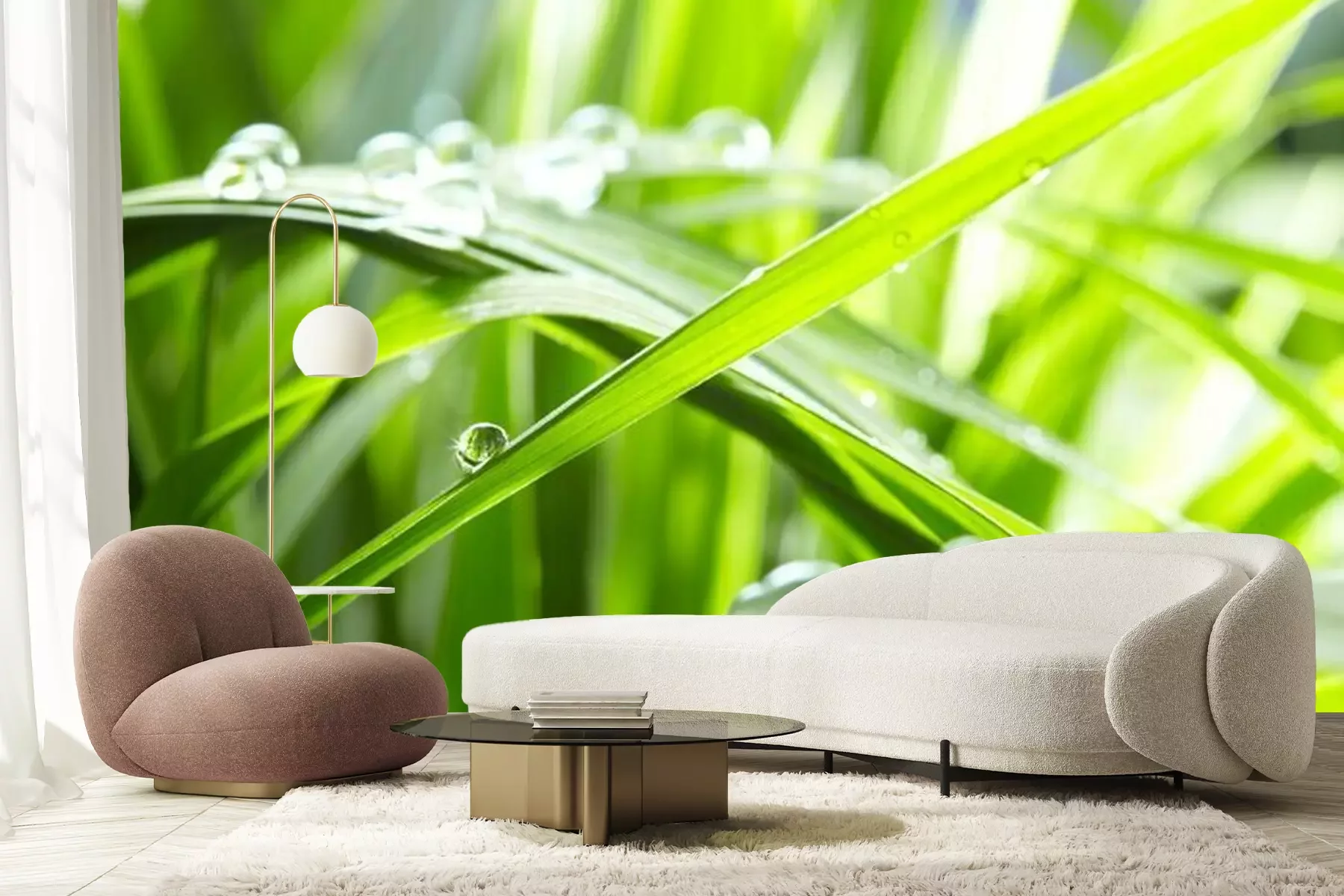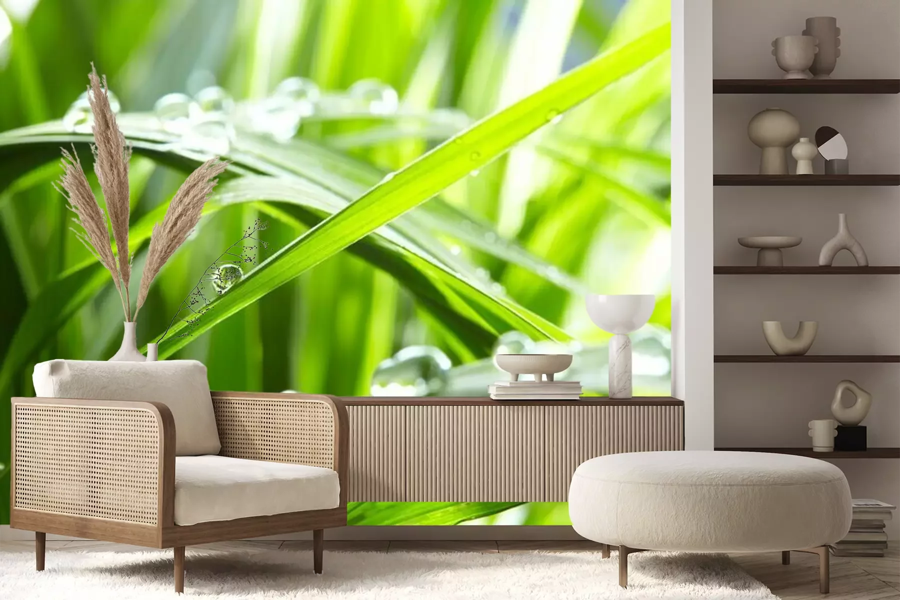 Fotobehang Waterdruppels op groen gras