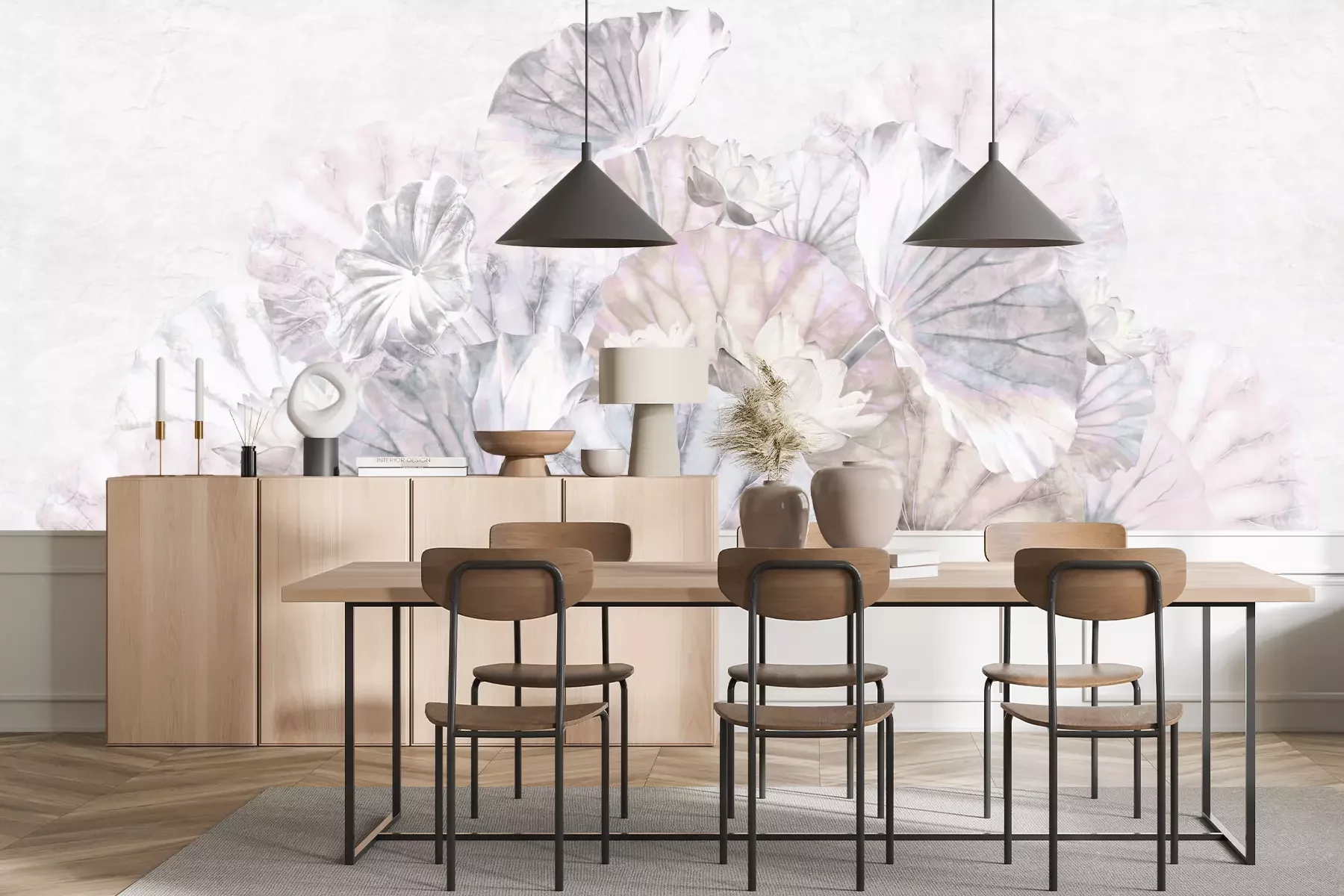 Het materiaal Premium+ is een gestructureerd vinyl op vlies met een gewicht van 255 g/m², dat kleine oneffenheden in de muur effectief camoufleert. De subtiele structuur van fijn zand geeft het oppervlak een exclusieve uitstraling, terwijl de halfmatte afwerking de diepte van de kleuren benadrukt. Het materiaal is dampdoorlatend, waardoor het ook in de keuken en badkamer kan worden gebruikt. De maximale breedte van één baan bedraagt 100 cm – bij grotere afmetingen wordt het fotobehang in meerdere gelijke banen verdeeld. De lijm wordt direct op de muur aangebracht en het behang wordt rand-aan-rand geplakt, wat zorgt voor een esthetisch resultaat zonder zichtbare naden. Het oppervlak kan gemakkelijk worden schoongemaakt door het voorzichtig af te nemen met een vochtige doek.