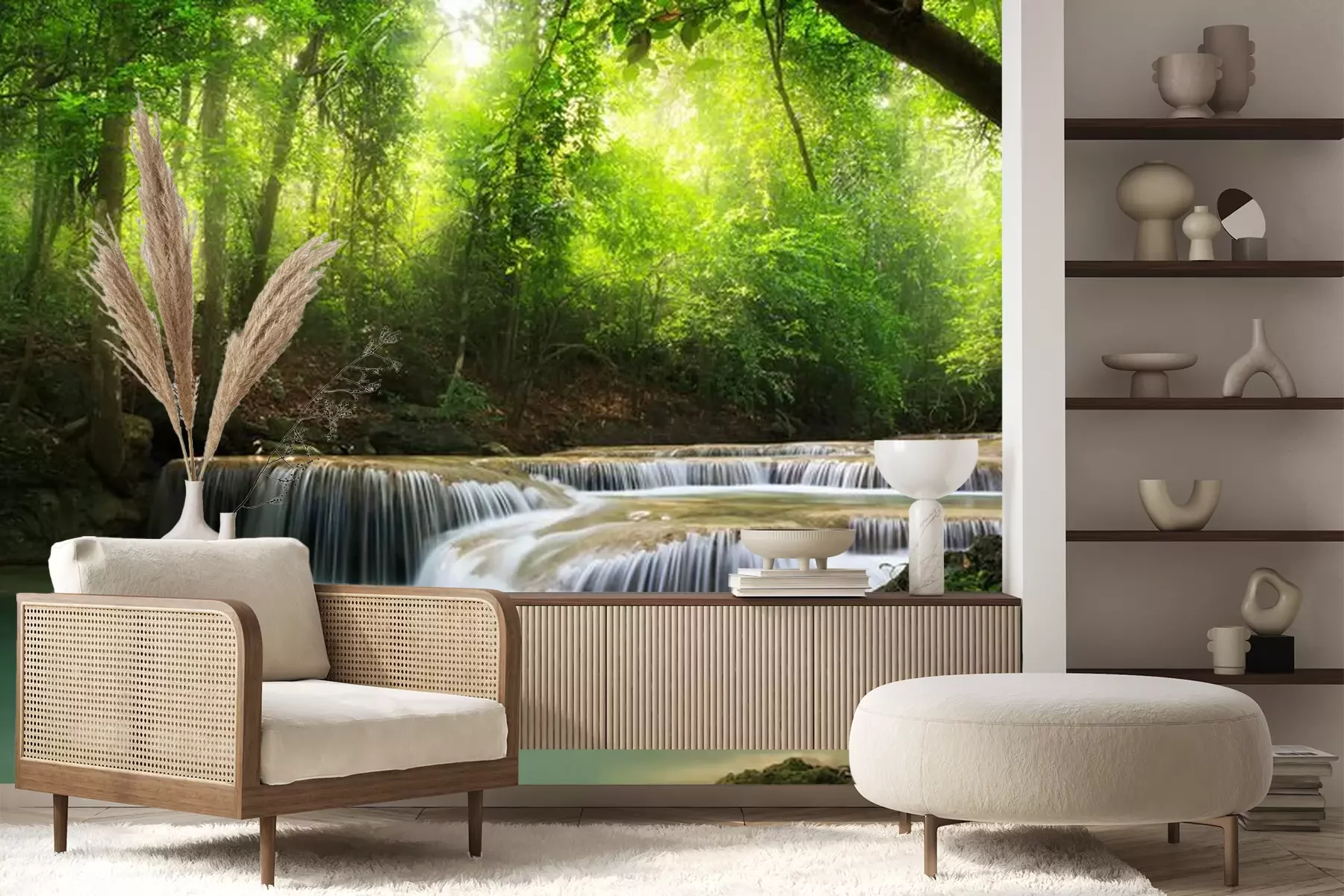 Het materiaal Premium+ is een gestructureerd vinyl op vlies met een gewicht van 255 g/m², dat kleine oneffenheden in de muur effectief camoufleert. De subtiele structuur van fijn zand geeft het oppervlak een exclusieve uitstraling, terwijl de halfmatte afwerking de diepte van de kleuren benadrukt. Het materiaal is dampdoorlatend, waardoor het ook in de keuken en badkamer kan worden gebruikt. De maximale breedte van één baan bedraagt 100 cm – bij grotere afmetingen wordt het fotobehang in meerdere gelijke banen verdeeld. De lijm wordt direct op de muur aangebracht en het behang wordt rand-aan-rand geplakt, wat zorgt voor een esthetisch resultaat zonder zichtbare naden. Het oppervlak kan gemakkelijk worden schoongemaakt door het voorzichtig af te nemen met een vochtige doek.