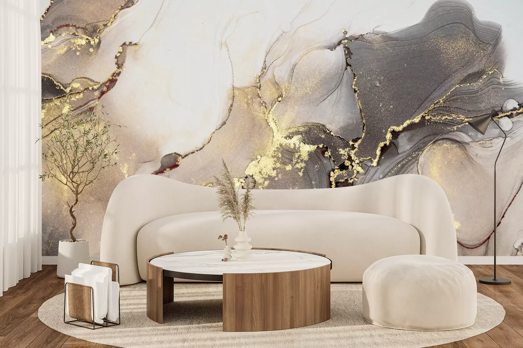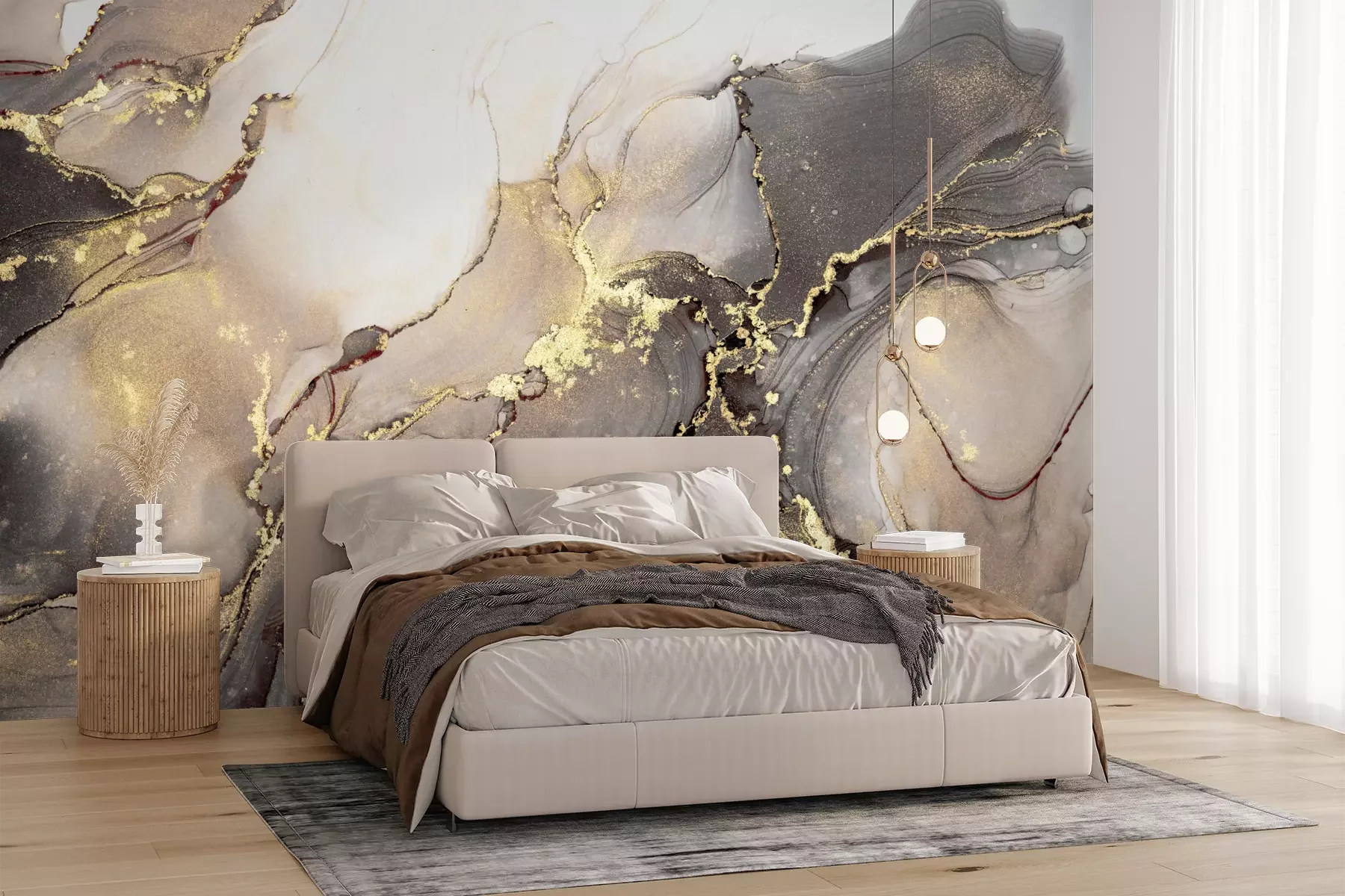 Het materiaal Premium+ is een gestructureerd vinyl op vlies met een gewicht van 255 g/m², dat kleine oneffenheden in de muur effectief camoufleert. De subtiele structuur van fijn zand geeft het oppervlak een exclusieve uitstraling, terwijl de halfmatte afwerking de diepte van de kleuren benadrukt. Het materiaal is dampdoorlatend, waardoor het ook in de keuken en badkamer kan worden gebruikt. De maximale breedte van één baan bedraagt 100 cm – bij grotere afmetingen wordt het fotobehang in meerdere gelijke banen verdeeld. De lijm wordt direct op de muur aangebracht en het behang wordt rand-aan-rand geplakt, wat zorgt voor een esthetisch resultaat zonder zichtbare naden. Het oppervlak kan gemakkelijk worden schoongemaakt door het voorzichtig af te nemen met een vochtige doek.