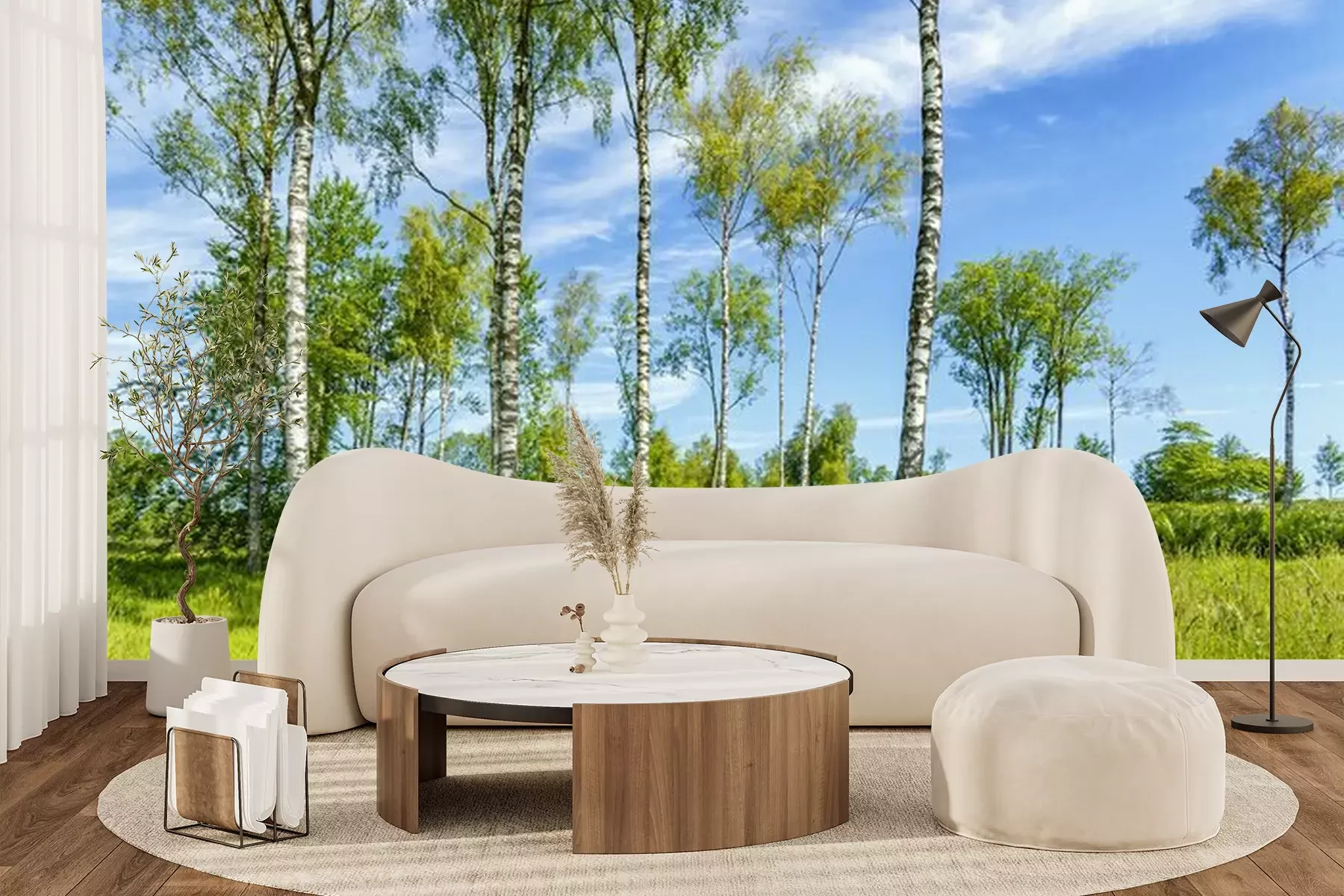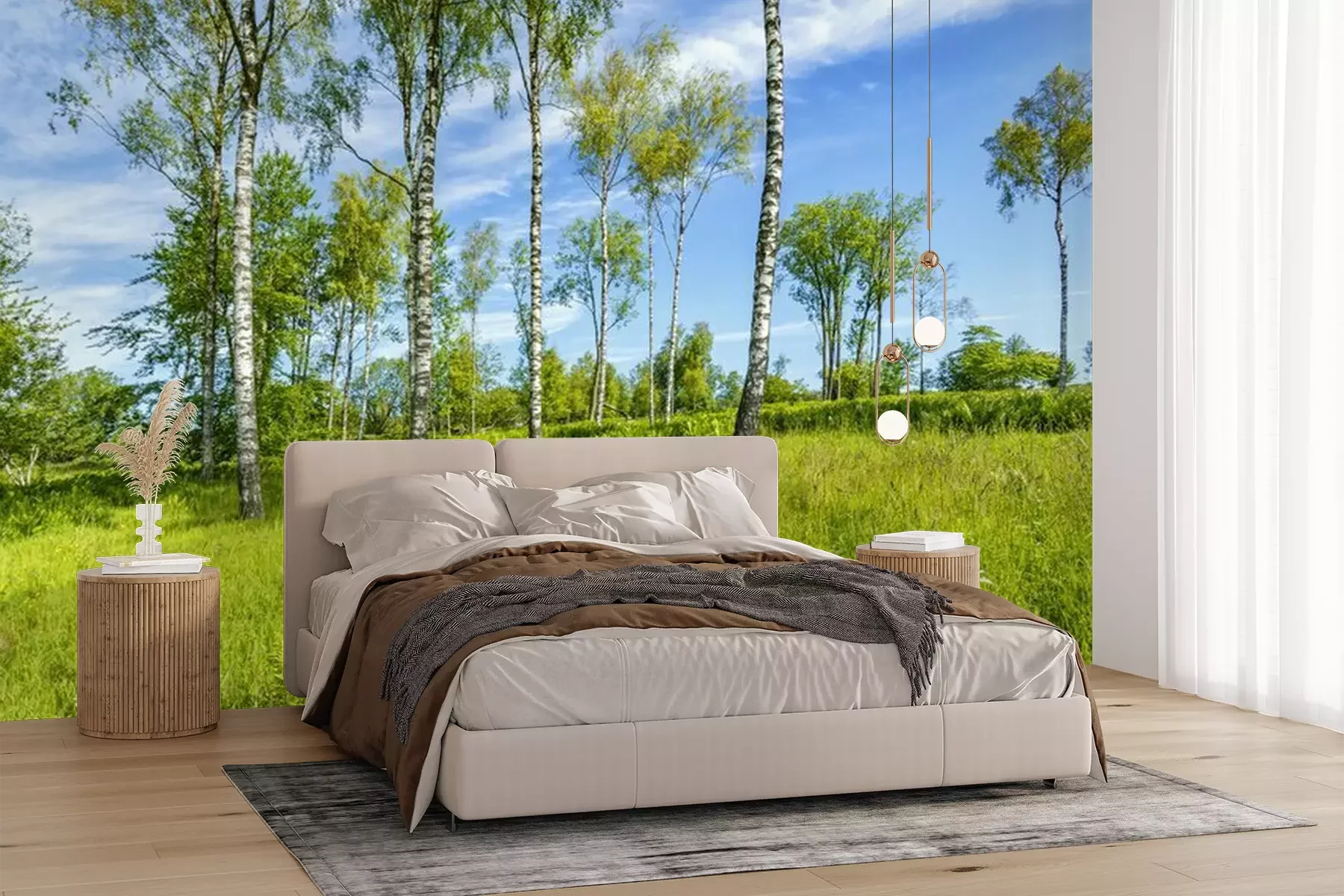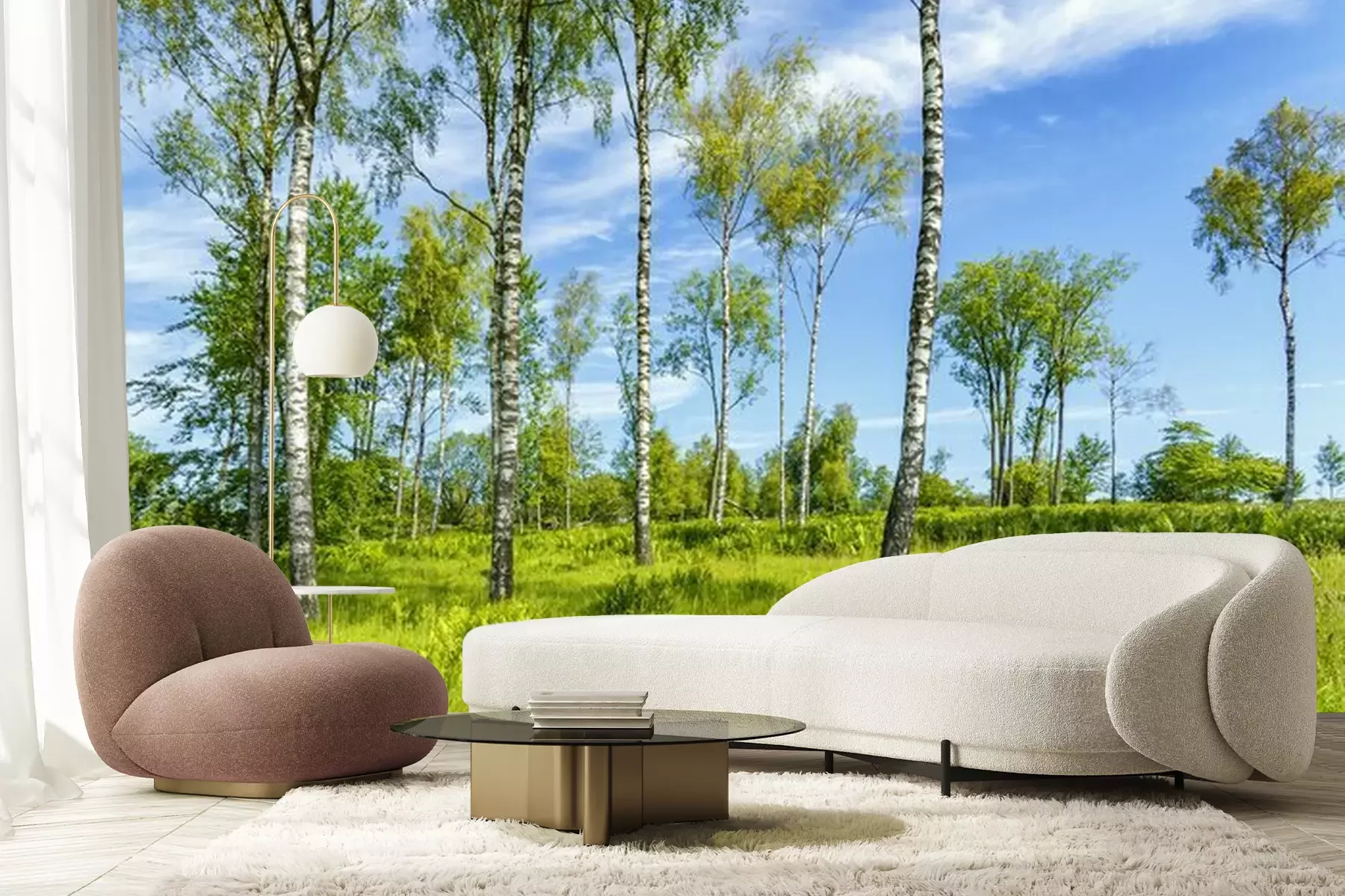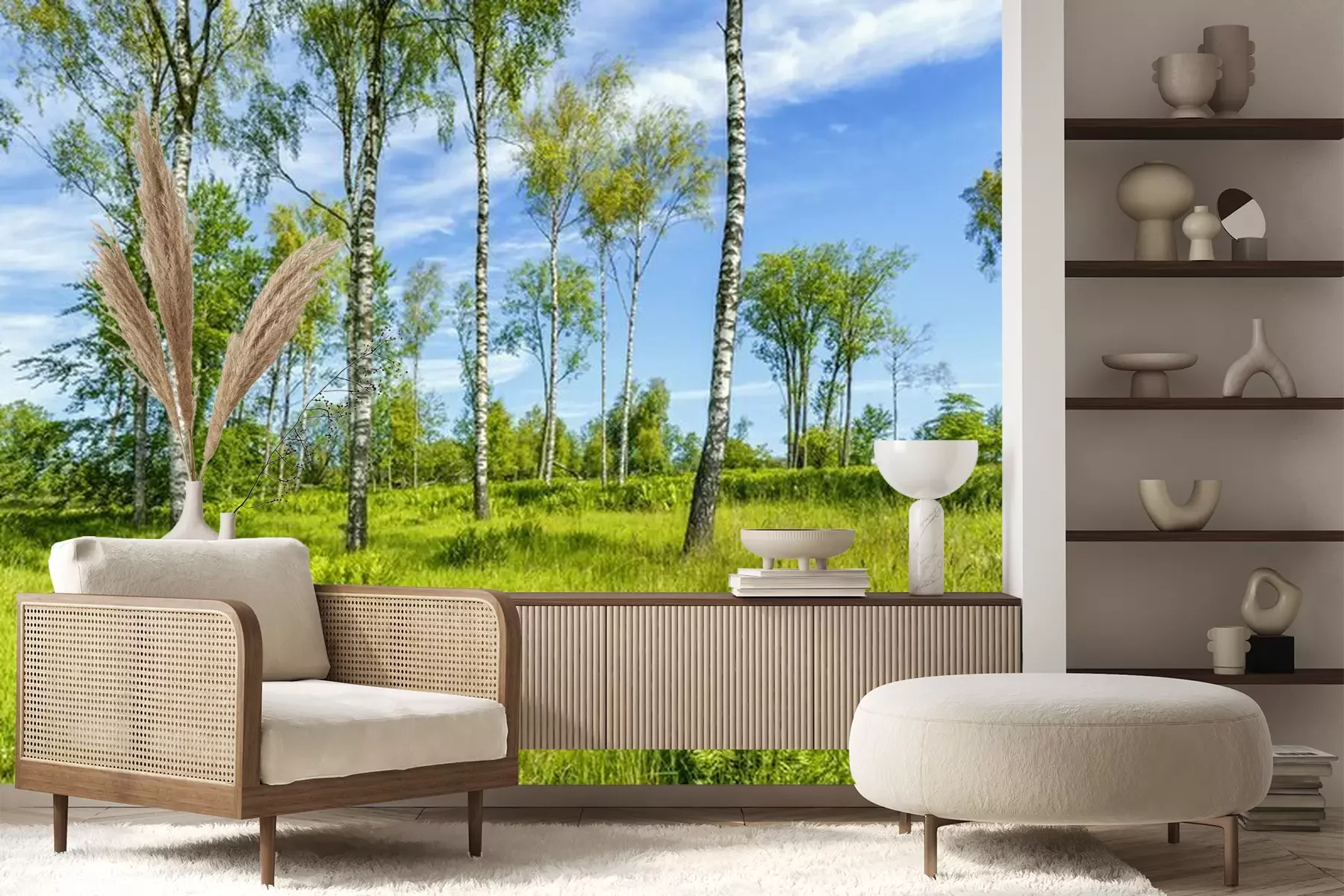 Fotobehang Weide en berken