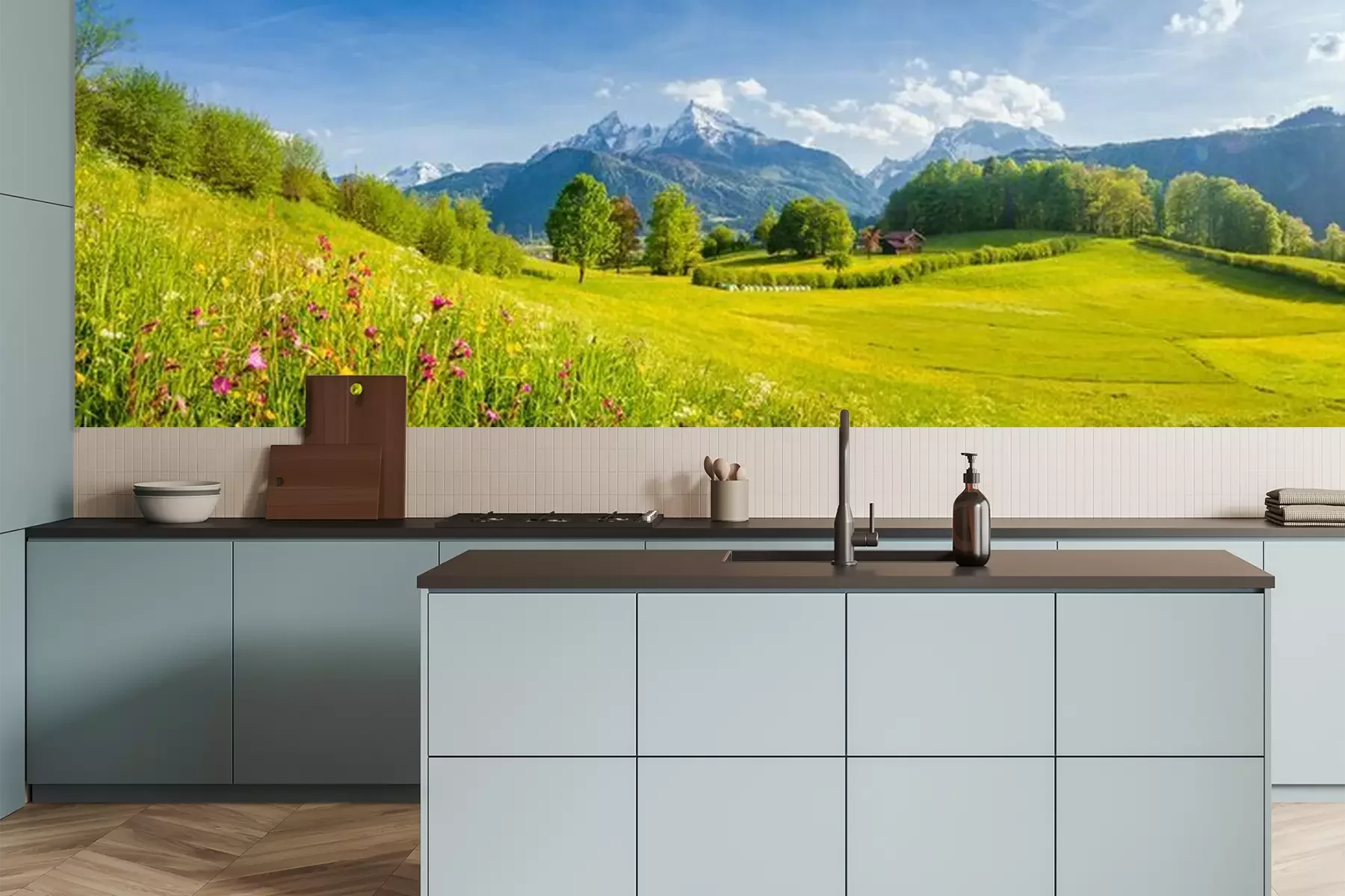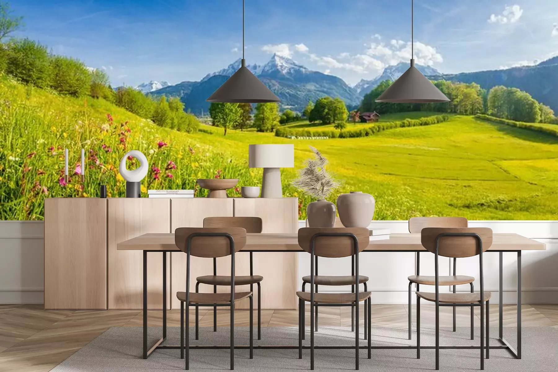Groene weide en bergenProbleemloze bezorging verzorgd door vertrouwde vervoerders