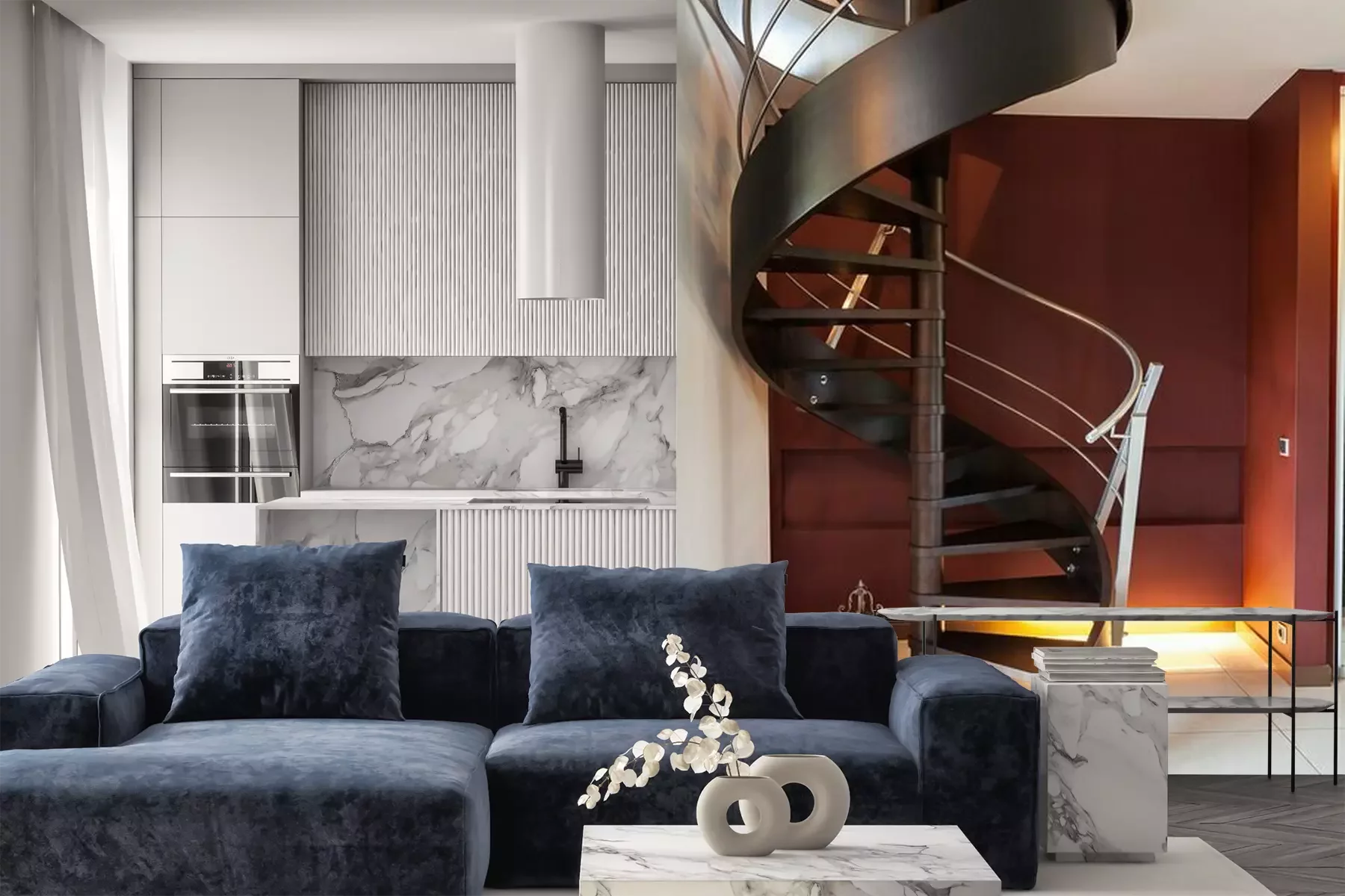 Het materiaal Premium is een glad vinyl op vlies, dat bestand is tegen uitrekken en vervorming. Het is dampdoorlatend – de muren kunnen vrij ademen – waardoor het geschikt is voor gebruik in de keuken en badkamer. Bij vervuiling kan het materiaal worden afgenomen met een vochtige doek. De maximale breedte van één baan bedraagt 95 of 105 cm, afhankelijk van de beschikbaarheid. Montage vindt plaats met de rand-aan-rand methode, wat een esthetisch resultaat zonder zichtbare naden oplevert. Omdat de lijm rechtstreeks op de muur wordt aangebracht, verloopt de installatie van het fotobehang snel en eenvoudig.