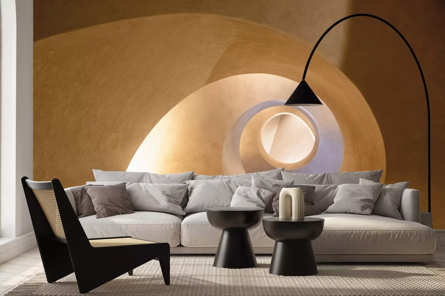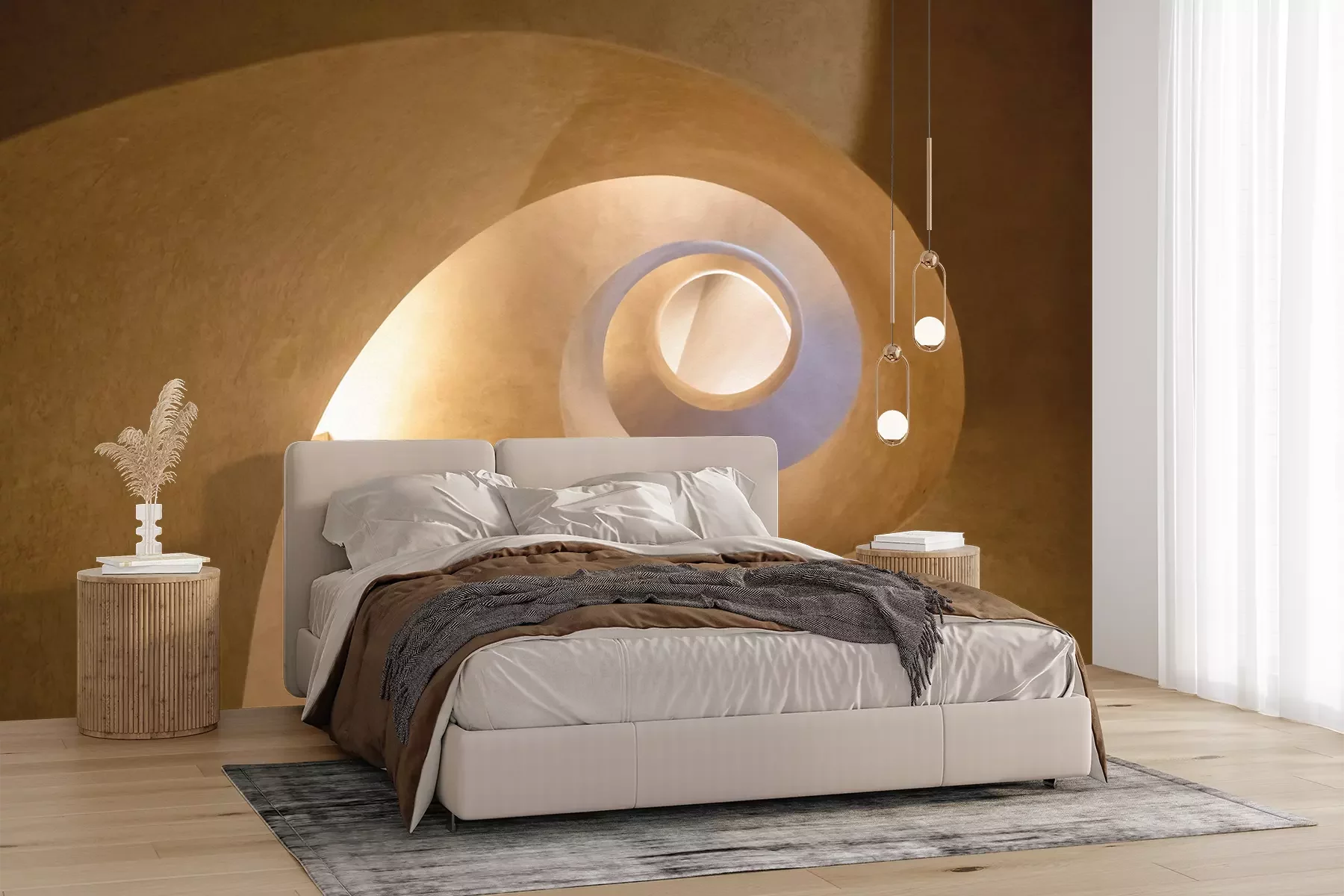 Het materiaal Premium+ is een gestructureerd vinyl op vlies met een gewicht van 255 g/m², dat kleine oneffenheden in de muur effectief camoufleert. De subtiele structuur van fijn zand geeft het oppervlak een exclusieve uitstraling, terwijl de halfmatte afwerking de diepte van de kleuren benadrukt. Het materiaal is dampdoorlatend, waardoor het ook in de keuken en badkamer kan worden gebruikt. De maximale breedte van één baan bedraagt 100 cm – bij grotere afmetingen wordt het fotobehang in meerdere gelijke banen verdeeld. De lijm wordt direct op de muur aangebracht en het behang wordt rand-aan-rand geplakt, wat zorgt voor een esthetisch resultaat zonder zichtbare naden. Het oppervlak kan gemakkelijk worden schoongemaakt door het voorzichtig af te nemen met een vochtige doek.