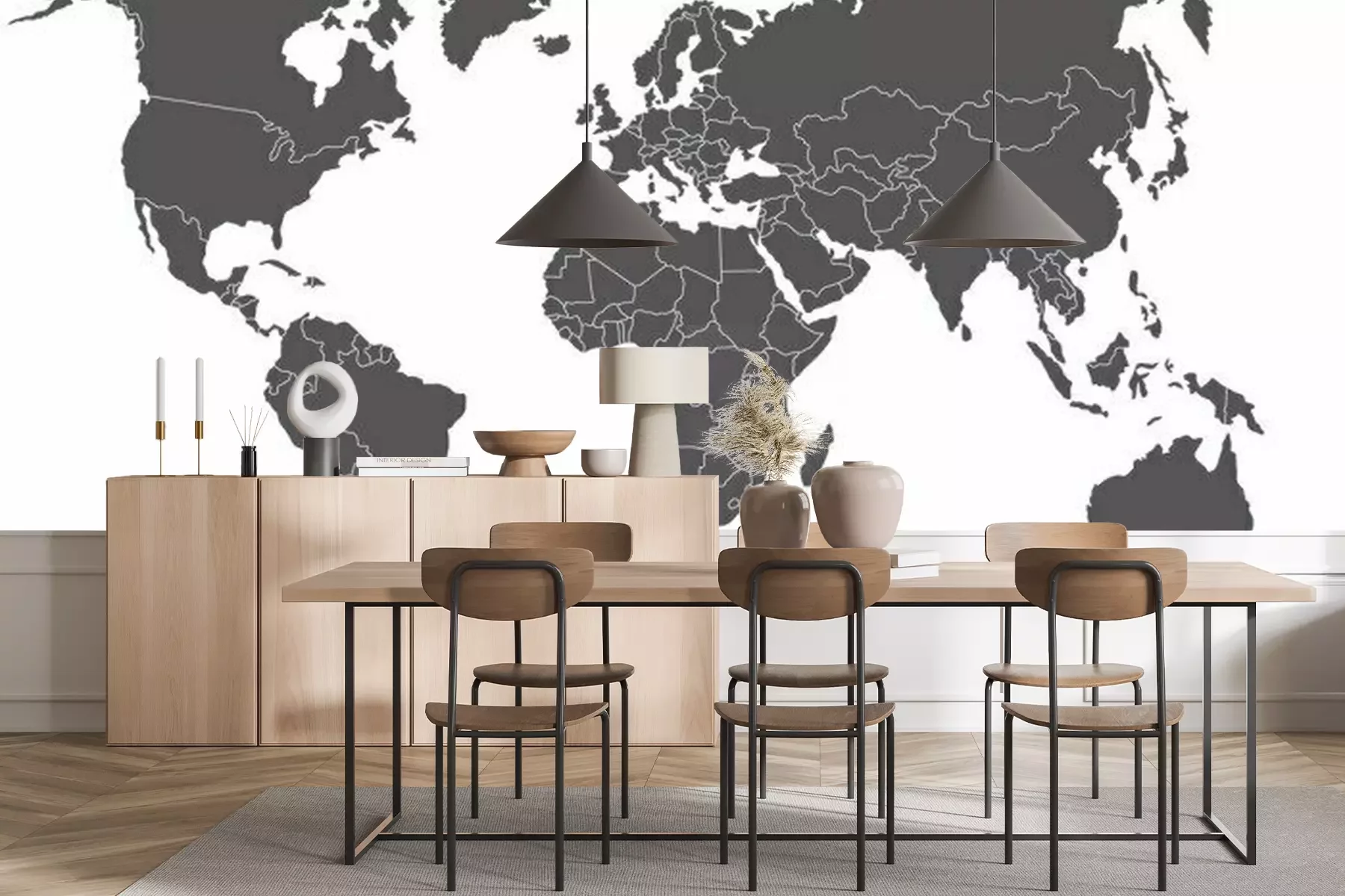 Zwart en oranje wereldkaartFotobehang