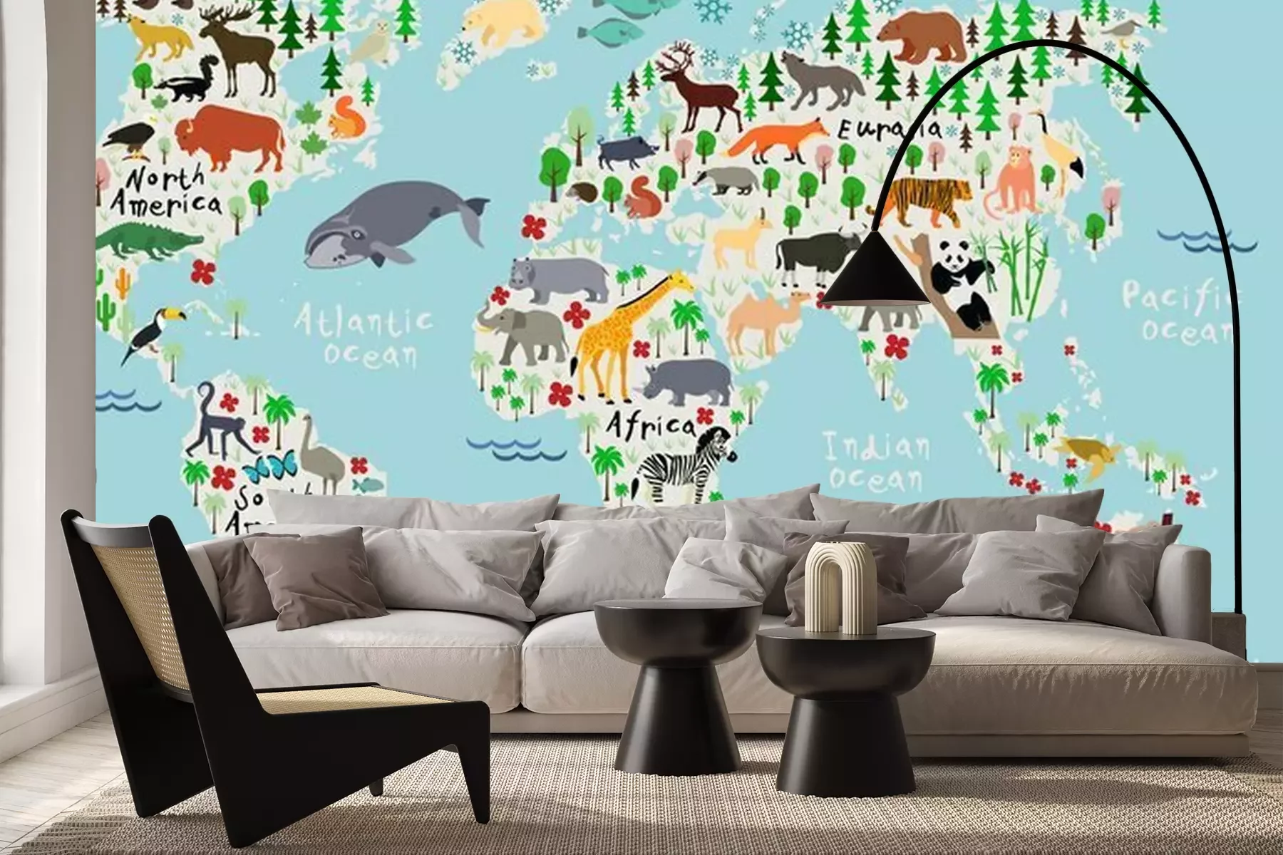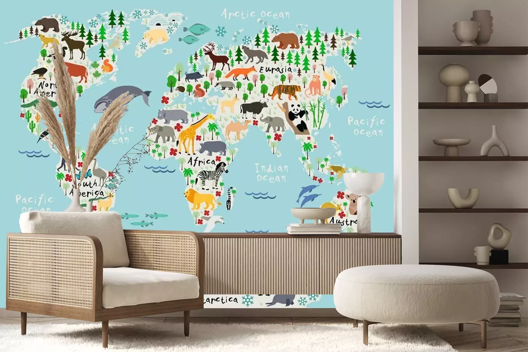 Tekenfilmdieren op de wereldkaartProbleemloze bezorging verzorgd door vertrouwde vervoerders