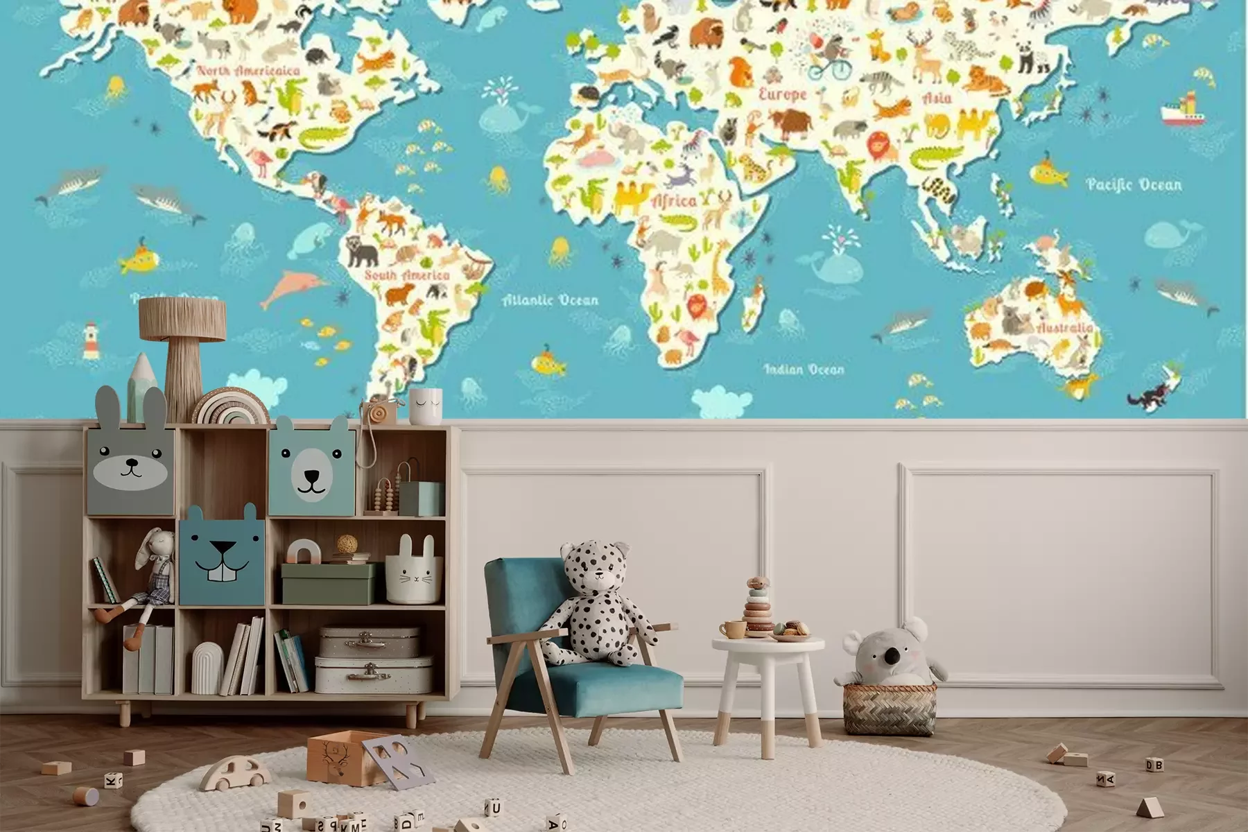 Een wereldkaart in stripstijl voor kinderenProbleemloze bezorging verzorgd door vertrouwde vervoerders