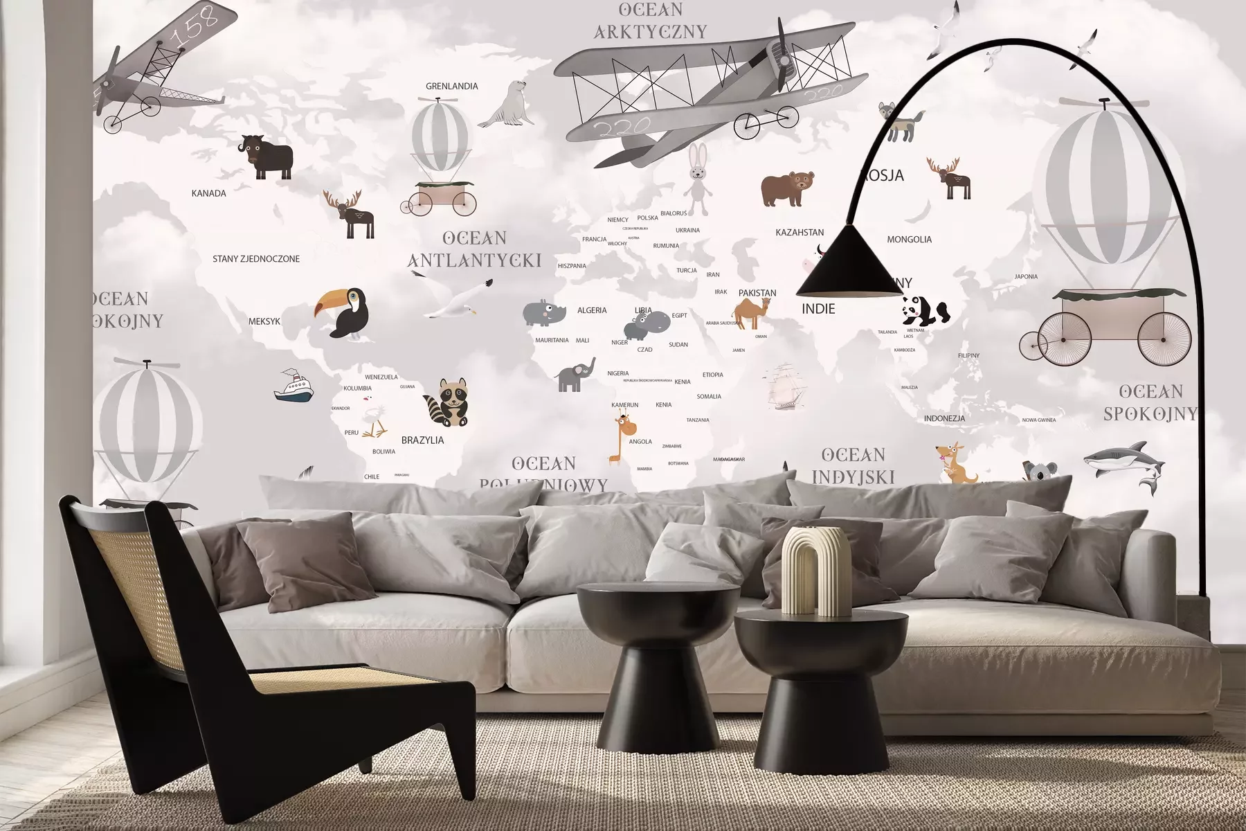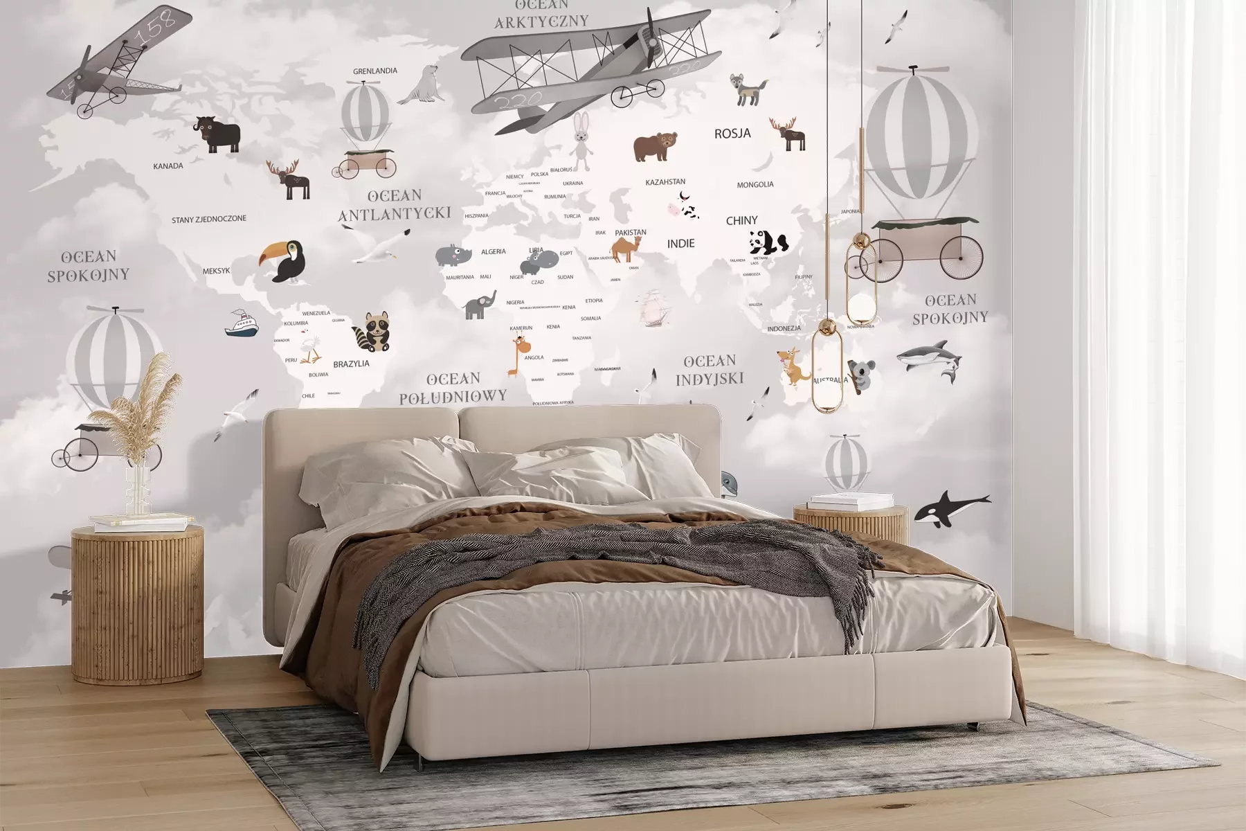 *Korting is niet van toepassing op lijmen, accessoires en cadeaubonnen.Wie zal het fotobehang dat hier wordt gepresenteerd leuk vinden? Een wereldkaart is een uitstekende decoratieve oplossing voor een kleine avonturier die droomt van verre reizen. Bij het inrichten van de kinderkamer is het de moeite waard om je te laten inspireren door de passies van het kind - wat hij leuk vindt of waar hij van droomt - want zo wordt het interieur niet alleen mooi, maar ook perfect afgestemd op het kind. Het is belangrijk om van tevoren op te merken dat dit een zeer veelzijdig fotobehang is. Wereldkaart toont niet alleen continenten, maar ook dieren en verschillende vervoermiddelen. Dit maakt het geschikt voor zowel meisjes- als jongenskamers, evenals voor een kamer die door een broer en zus wordt gedeeld. Een ander voordeel is het kleurenpalet waarin het fotobehang is uitgevoerd. Wereldkaart met dieren is gebaseerd op grijstinten, terwijl alleen sommige diersoorten, zoals de kangoeroe, giraf of tijger, kleurrijk zijn. Hierdoor wordt overbelasting van de inrichting vermeden en wordt de decoratie niet een extra element dat het kind zal overprikkelen. Wat voegt zo'n fotobehang toe aan de kamer? Dieren die op de kaart zijn verspreid, zullen voor het kind een bron van praktische kennis worden. Het kind zal leren in welke delen van de wereld je toekans en nijlpaarden kunt tegenkomen. Leren door te spelen is de beste oplossing en een goed gekozen kan daarbij fotobehang een grote hulp zijn. Dieren zijn echter niet het belangrijkste thema van de wanddecoratie. Er zijn ook verschillende vervoermiddelen afgebeeld - vliegtuigen en voertuigen met luchtballonnen. Op het eerste gezicht zie je dat het voorbeelden zijn van oude machines. Een decoratie in retrostijl zal een unieke sfeer in de kinderkamer brengen. Het wordt een soort teleport waarmee een fantasierijk kind kan doen alsof hij zich in het verleden bevindt. Als het kind geïnteresseerd is in motorvoertuigen, zou hij zo'n fotobehang leuk kunnen vinden. Voertuigen in combinatie met dieren worden niet alleen een decoratie voor de kinderkamer, maar ook een uitstekende illustratie van zijn passies en interesses.