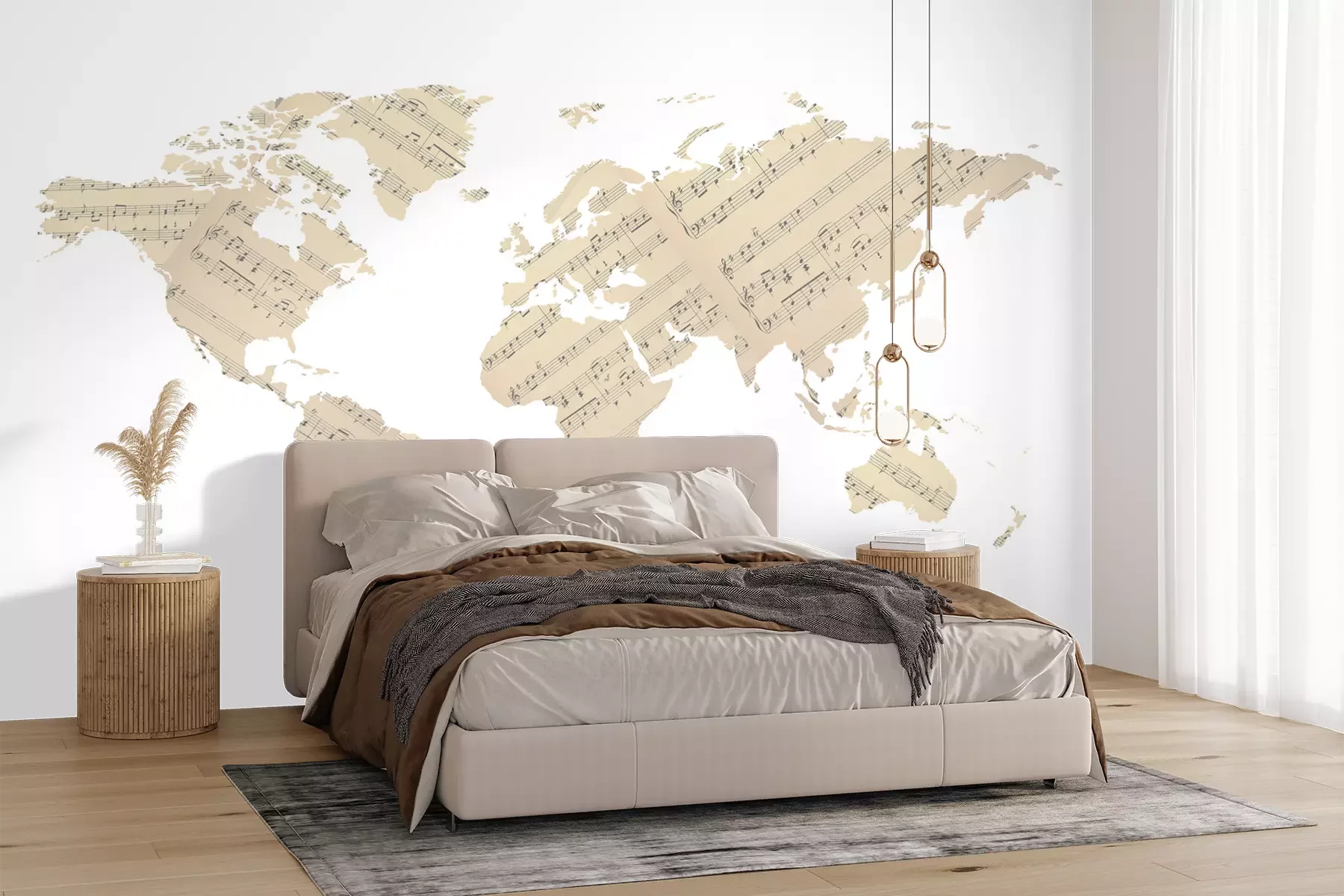 Het materiaal Premium+ is een gestructureerd vinyl op vlies met een gewicht van 255 g/m², dat kleine oneffenheden in de muur effectief camoufleert. De subtiele structuur van fijn zand geeft het oppervlak een exclusieve uitstraling, terwijl de halfmatte afwerking de diepte van de kleuren benadrukt. Het materiaal is dampdoorlatend, waardoor het ook in de keuken en badkamer kan worden gebruikt. De maximale breedte van één baan bedraagt 100 cm – bij grotere afmetingen wordt het fotobehang in meerdere gelijke banen verdeeld. De lijm wordt direct op de muur aangebracht en het behang wordt rand-aan-rand geplakt, wat zorgt voor een esthetisch resultaat zonder zichtbare naden. Het oppervlak kan gemakkelijk worden schoongemaakt door het voorzichtig af te nemen met een vochtige doek.