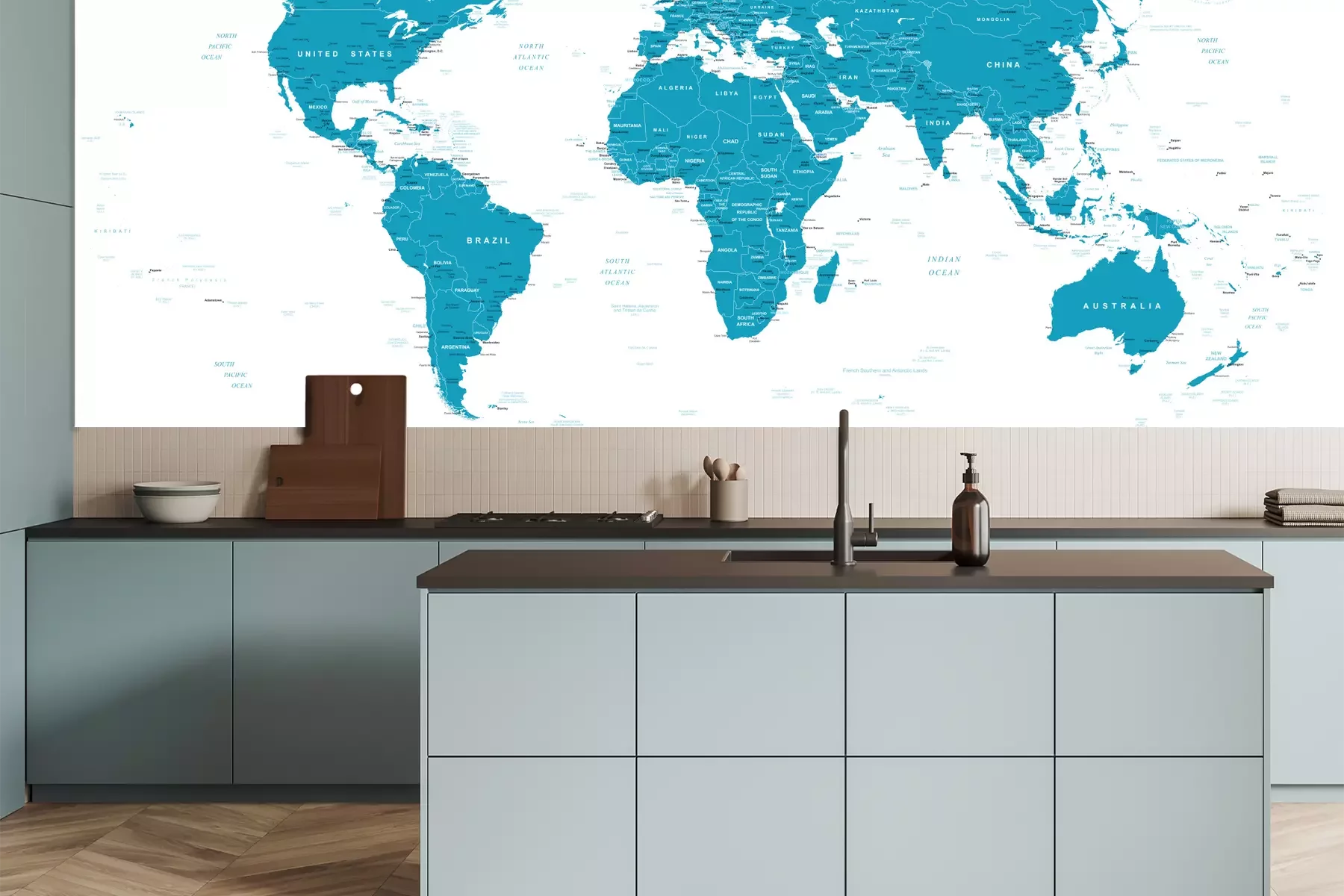 Het materiaal Premium is een glad vinyl op vlies, dat bestand is tegen uitrekken en vervorming. Het is dampdoorlatend – de muren kunnen vrij ademen – waardoor het geschikt is voor gebruik in de keuken en badkamer. Bij vervuiling kan het materiaal worden afgenomen met een vochtige doek. De maximale breedte van één baan bedraagt 95 of 105 cm, afhankelijk van de beschikbaarheid. Montage vindt plaats met de rand-aan-rand methode, wat een esthetisch resultaat zonder zichtbare naden oplevert. Omdat de lijm rechtstreeks op de muur wordt aangebracht, verloopt de installatie van het fotobehang snel en eenvoudig.