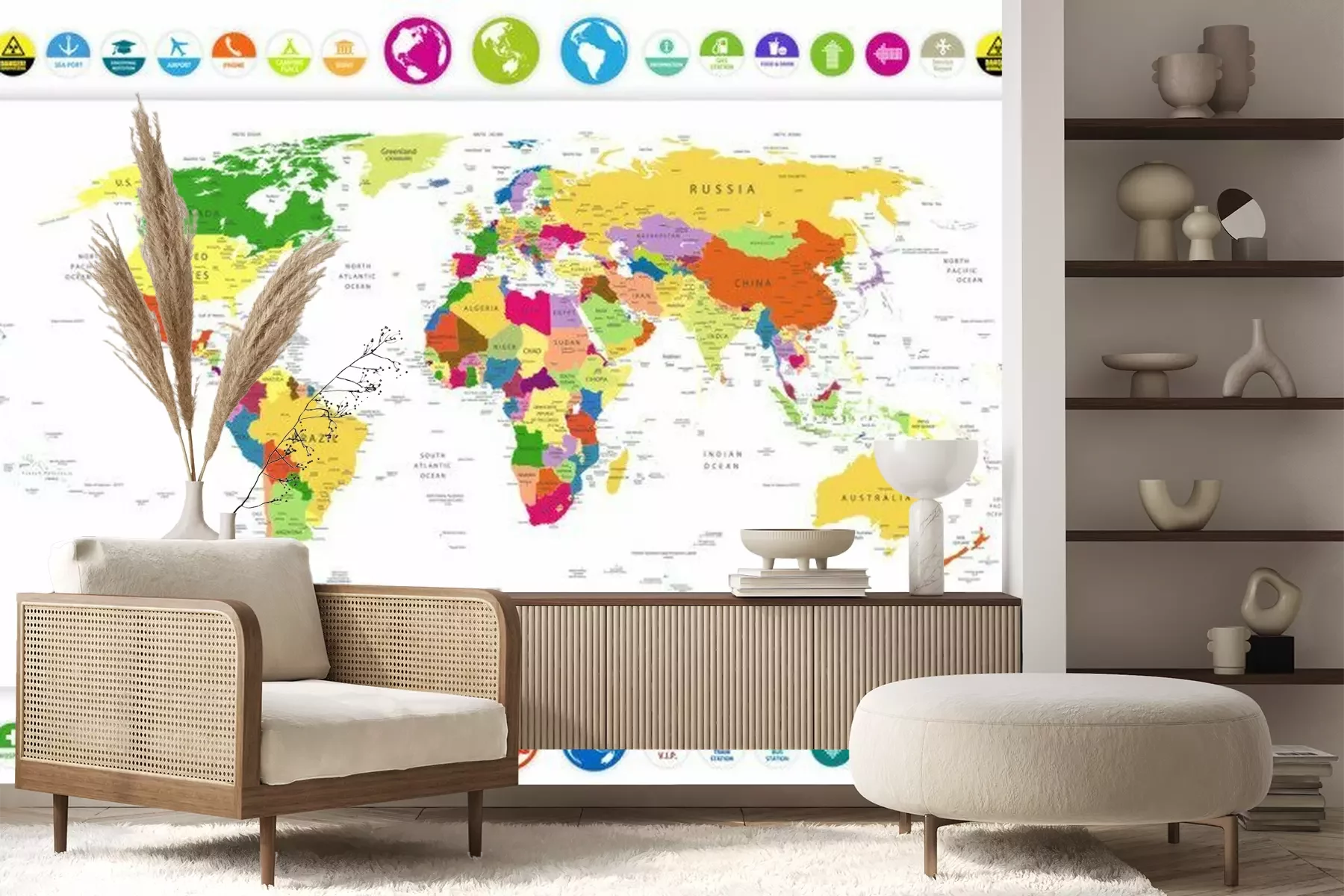 Wereldkaart met pictogrammenFotobehang