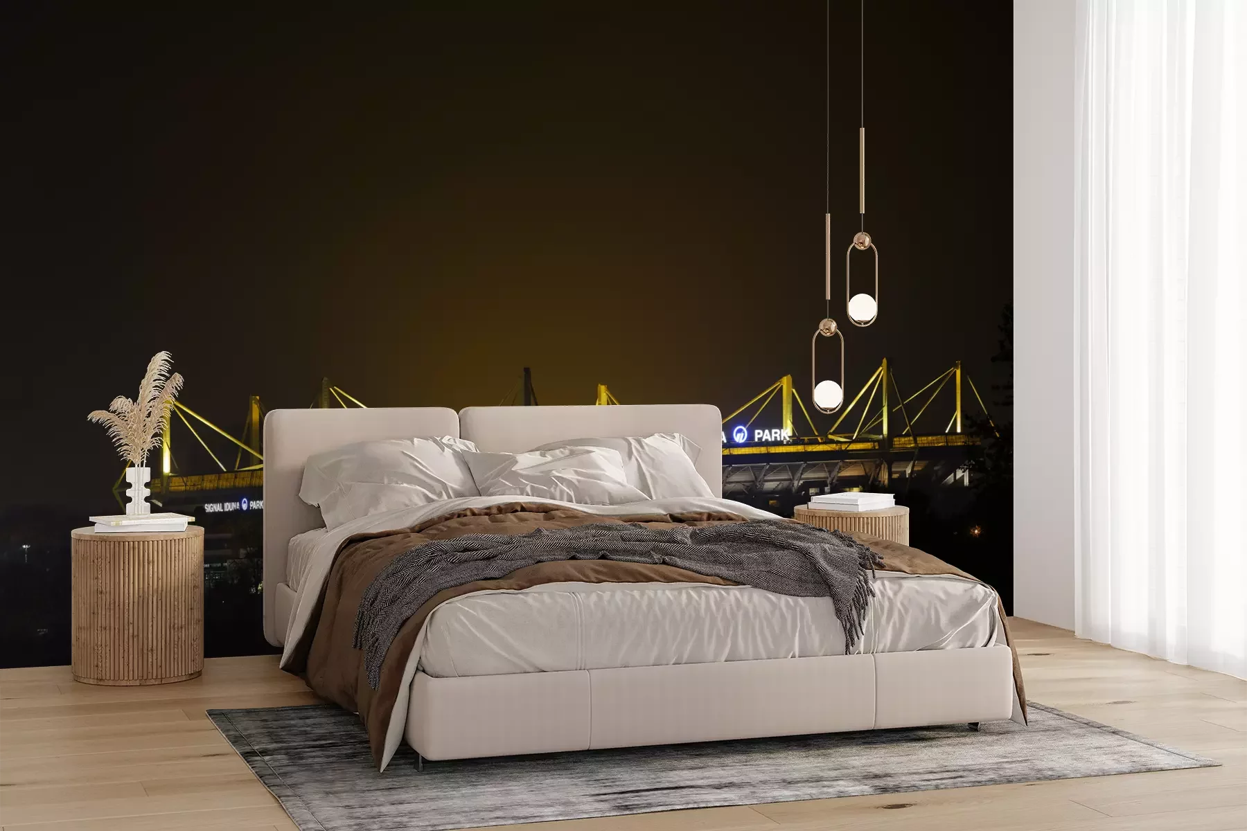 Het materiaal Premium+ is een gestructureerd vinyl op vlies met een gewicht van 255 g/m², dat kleine oneffenheden in de muur effectief camoufleert. De subtiele structuur van fijn zand geeft het oppervlak een exclusieve uitstraling, terwijl de halfmatte afwerking de diepte van de kleuren benadrukt. Het materiaal is dampdoorlatend, waardoor het ook in de keuken en badkamer kan worden gebruikt. De maximale breedte van één baan bedraagt 100 cm – bij grotere afmetingen wordt het fotobehang in meerdere gelijke banen verdeeld. De lijm wordt direct op de muur aangebracht en het behang wordt rand-aan-rand geplakt, wat zorgt voor een esthetisch resultaat zonder zichtbare naden. Het oppervlak kan gemakkelijk worden schoongemaakt door het voorzichtig af te nemen met een vochtige doek.