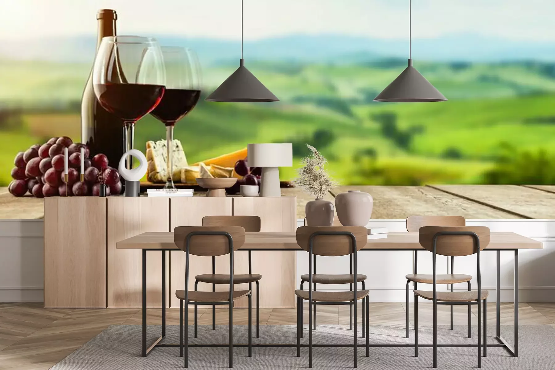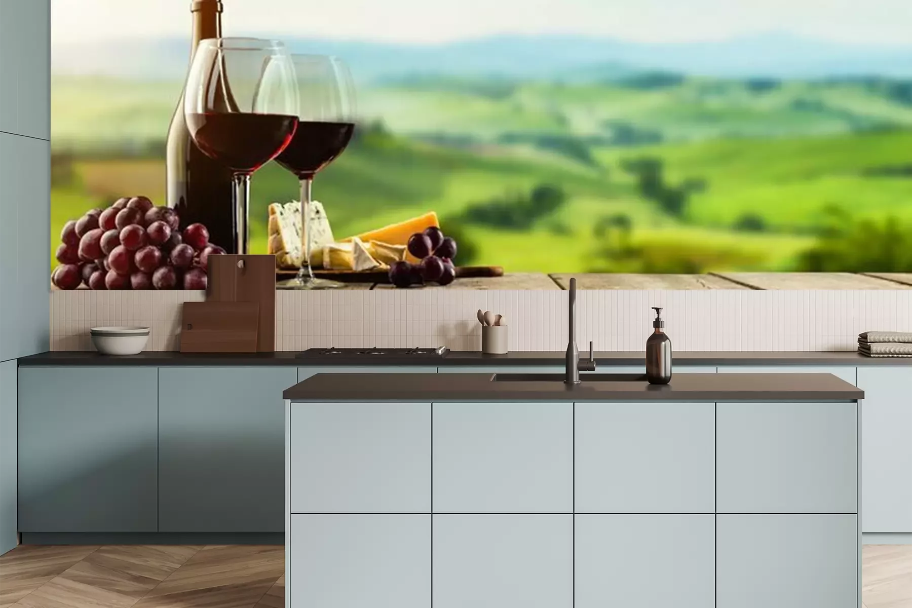 Het materiaal Premium is een glad vinyl op vlies, dat bestand is tegen uitrekken en vervorming. Het is dampdoorlatend – de muren kunnen vrij ademen – waardoor het geschikt is voor gebruik in de keuken en badkamer. Bij vervuiling kan het materiaal worden afgenomen met een vochtige doek. De maximale breedte van één baan bedraagt 95 of 105 cm, afhankelijk van de beschikbaarheid. Montage vindt plaats met de rand-aan-rand methode, wat een esthetisch resultaat zonder zichtbare naden oplevert. Omdat de lijm rechtstreeks op de muur wordt aangebracht, verloopt de installatie van het fotobehang snel en eenvoudig.