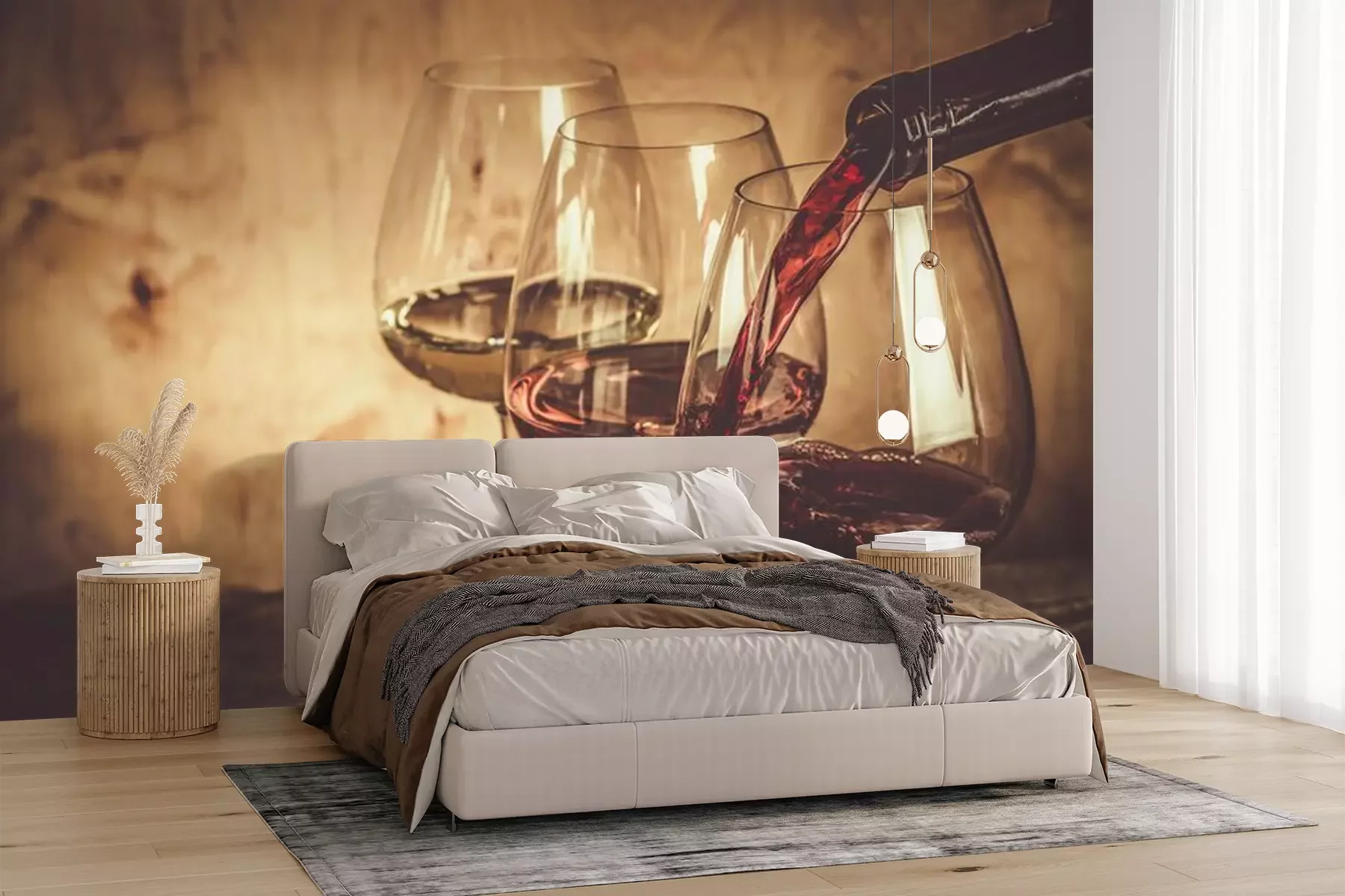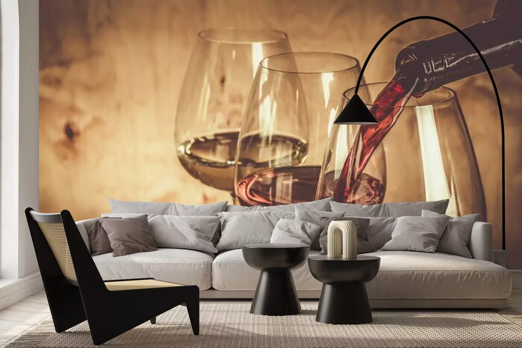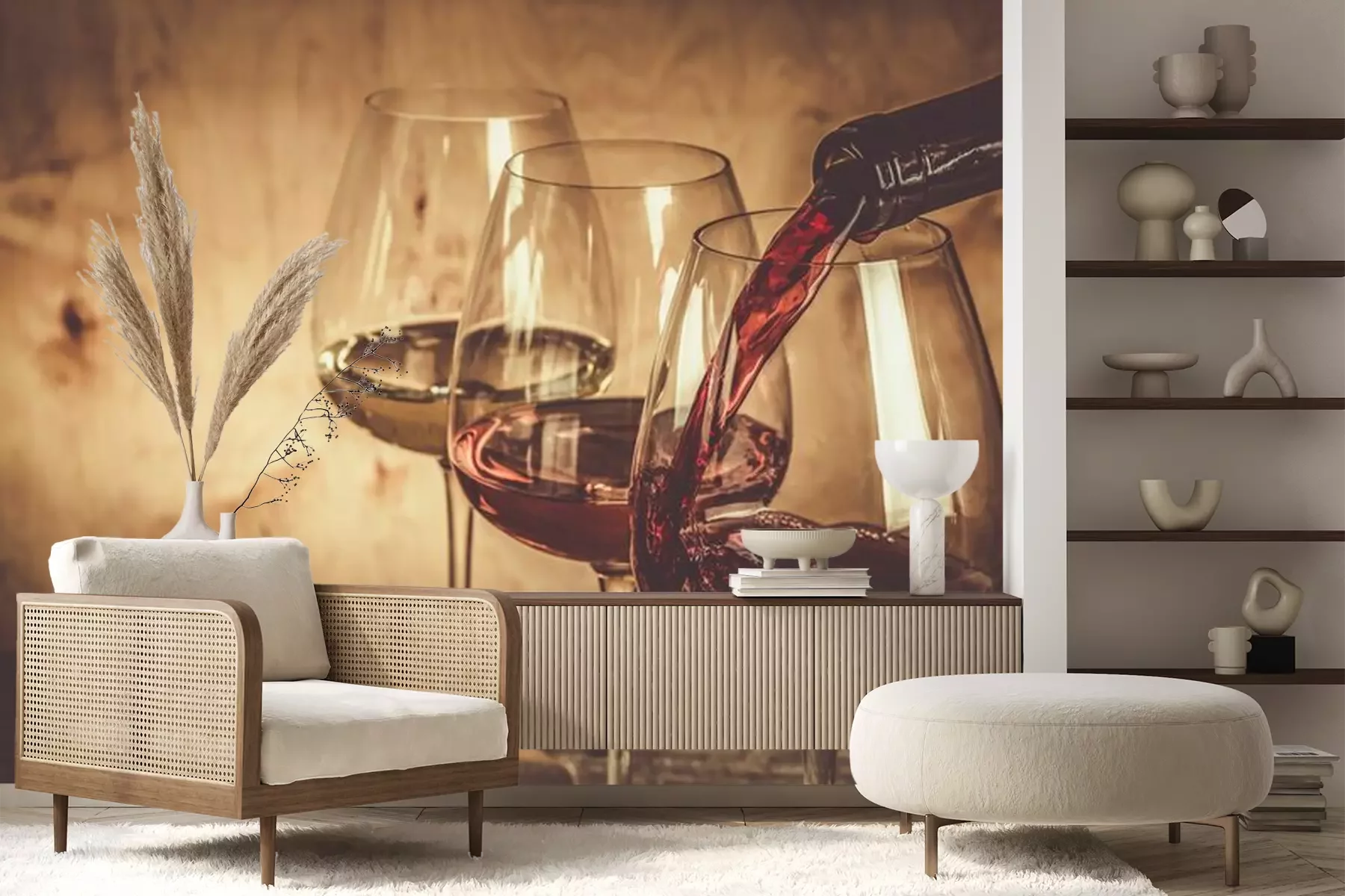 Glazen wijn op een houten achtergrondProbleemloze bezorging verzorgd door vertrouwde vervoerders