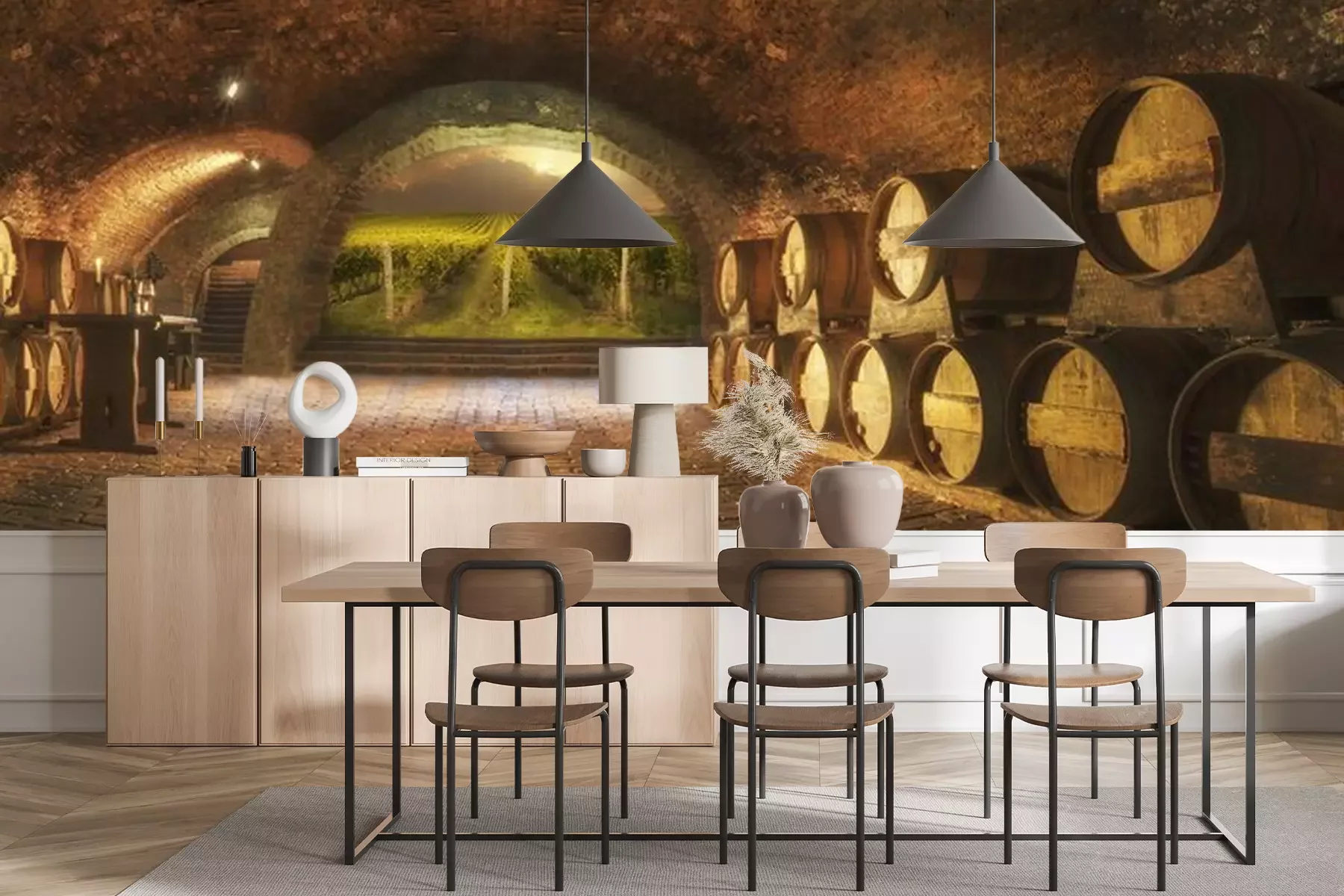 Het materiaal Premium+ is een gestructureerd vinyl op vlies met een gewicht van 255 g/m², dat kleine oneffenheden in de muur effectief camoufleert. De subtiele structuur van fijn zand geeft het oppervlak een exclusieve uitstraling, terwijl de halfmatte afwerking de diepte van de kleuren benadrukt. Het materiaal is dampdoorlatend, waardoor het ook in de keuken en badkamer kan worden gebruikt. De maximale breedte van één baan bedraagt 100 cm – bij grotere afmetingen wordt het fotobehang in meerdere gelijke banen verdeeld. De lijm wordt direct op de muur aangebracht en het behang wordt rand-aan-rand geplakt, wat zorgt voor een esthetisch resultaat zonder zichtbare naden. Het oppervlak kan gemakkelijk worden schoongemaakt door het voorzichtig af te nemen met een vochtige doek.
