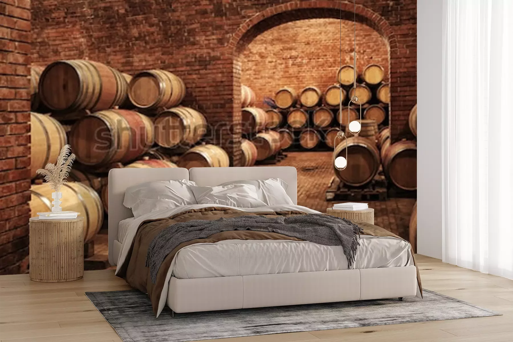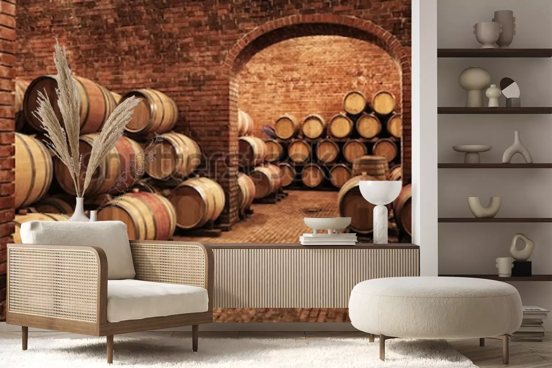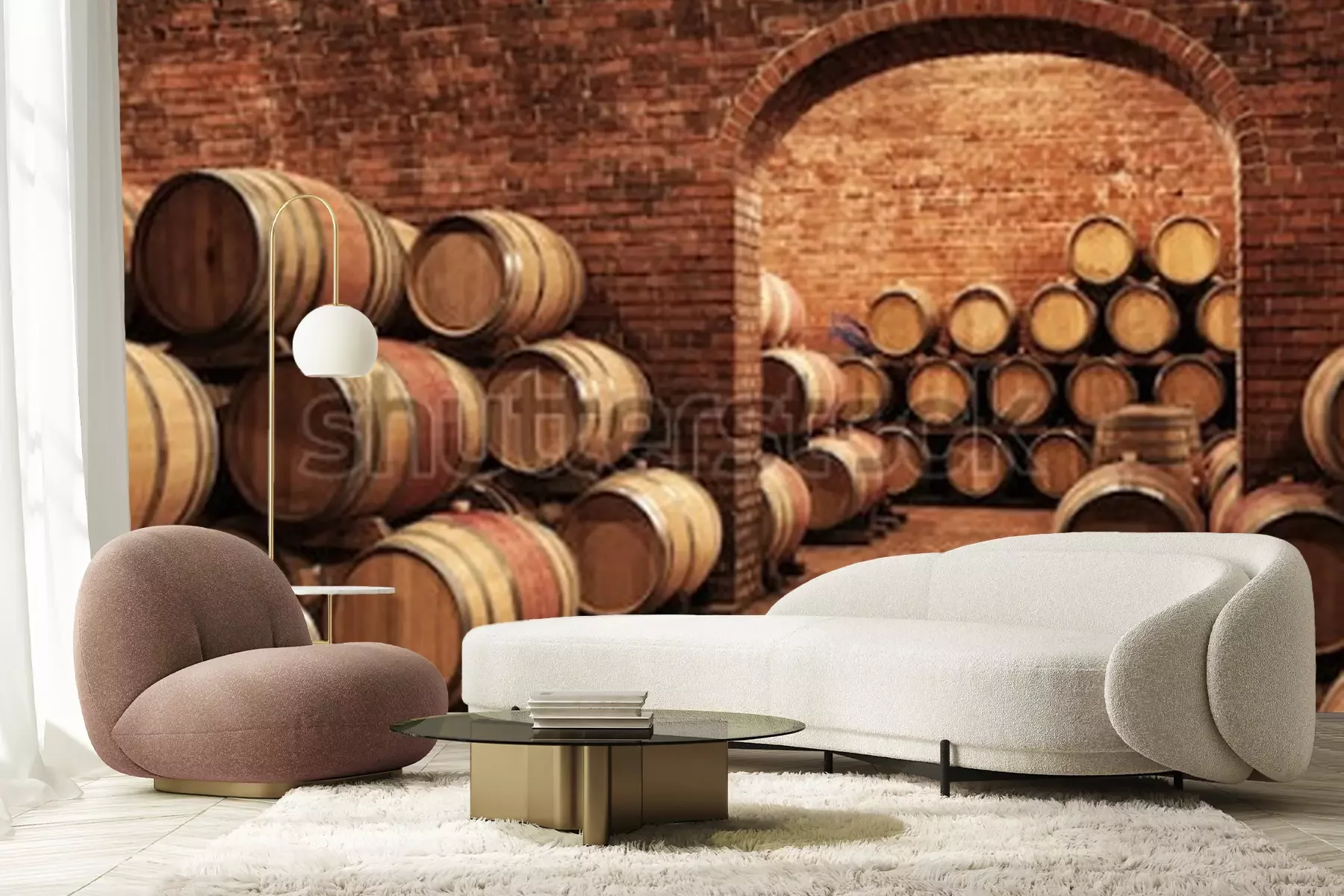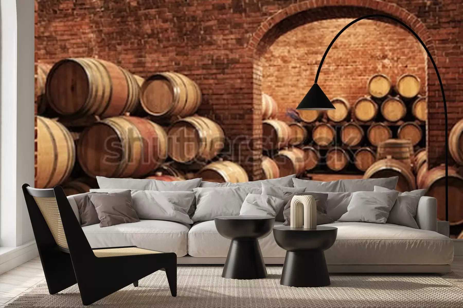 Fotobehang Wijnvaten in wijnkelders op volgorde