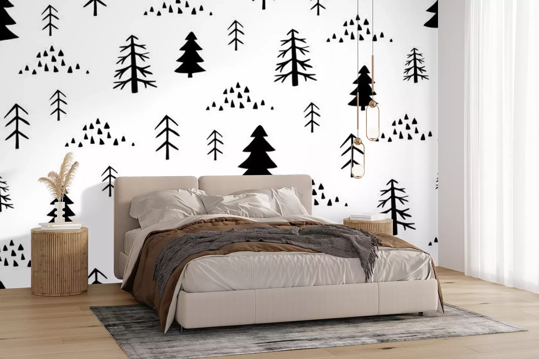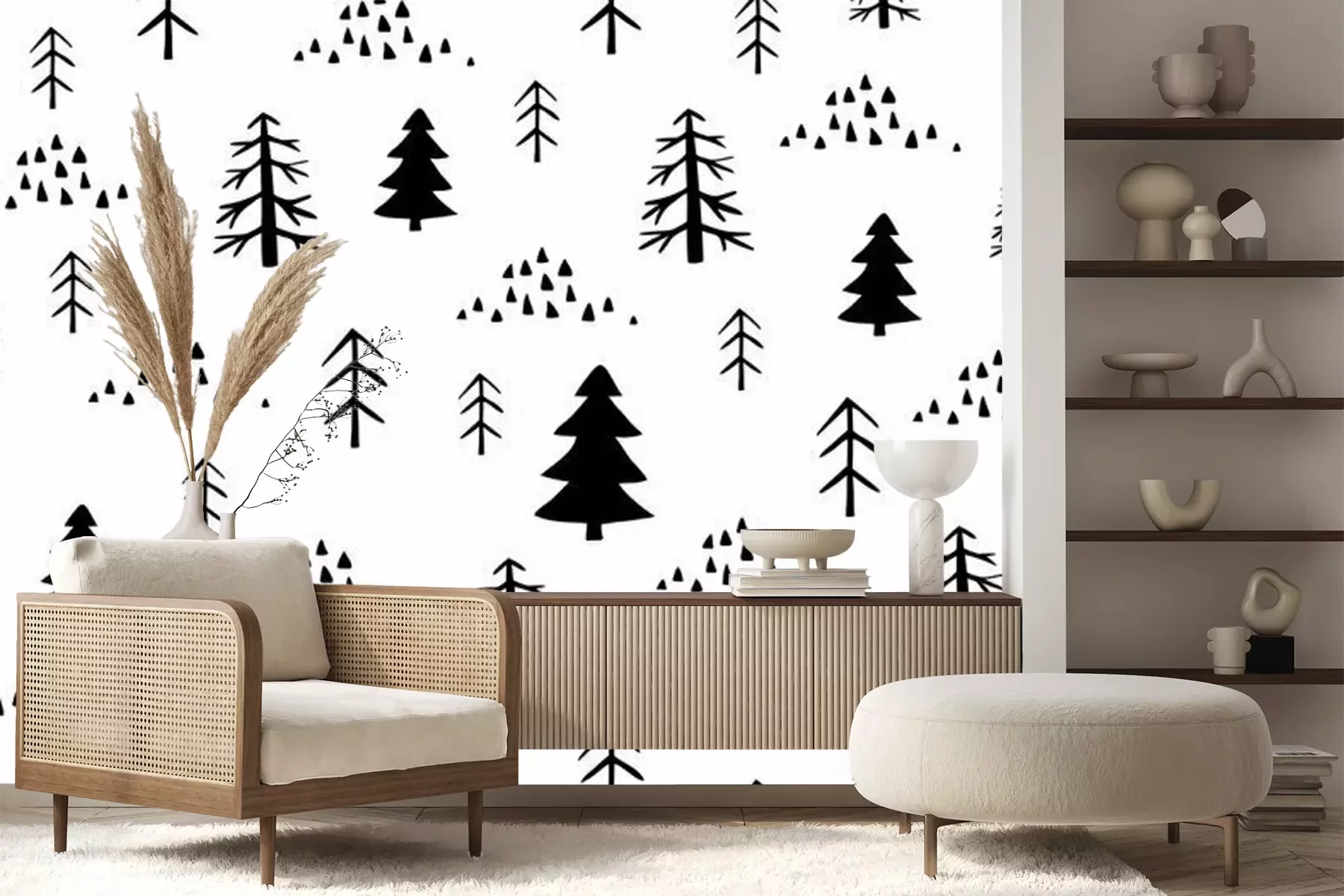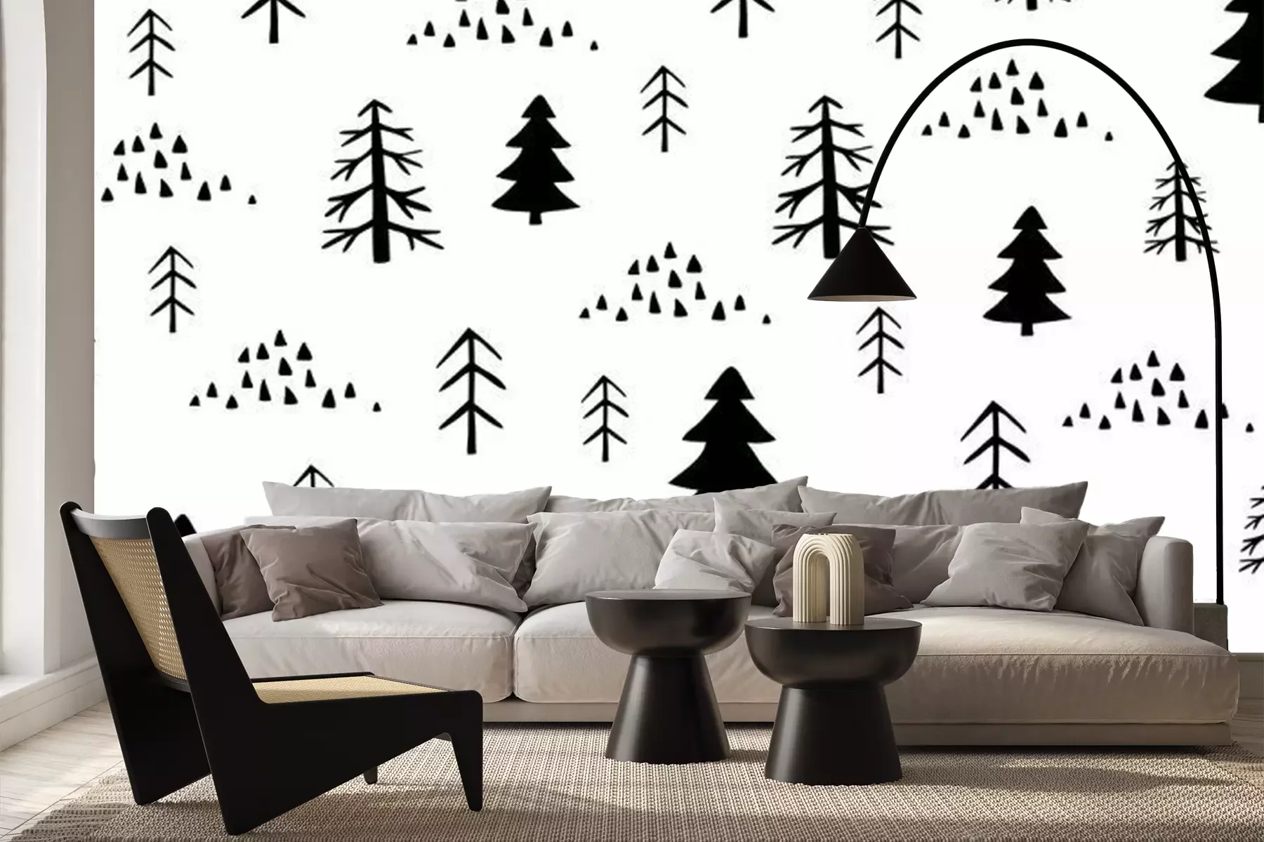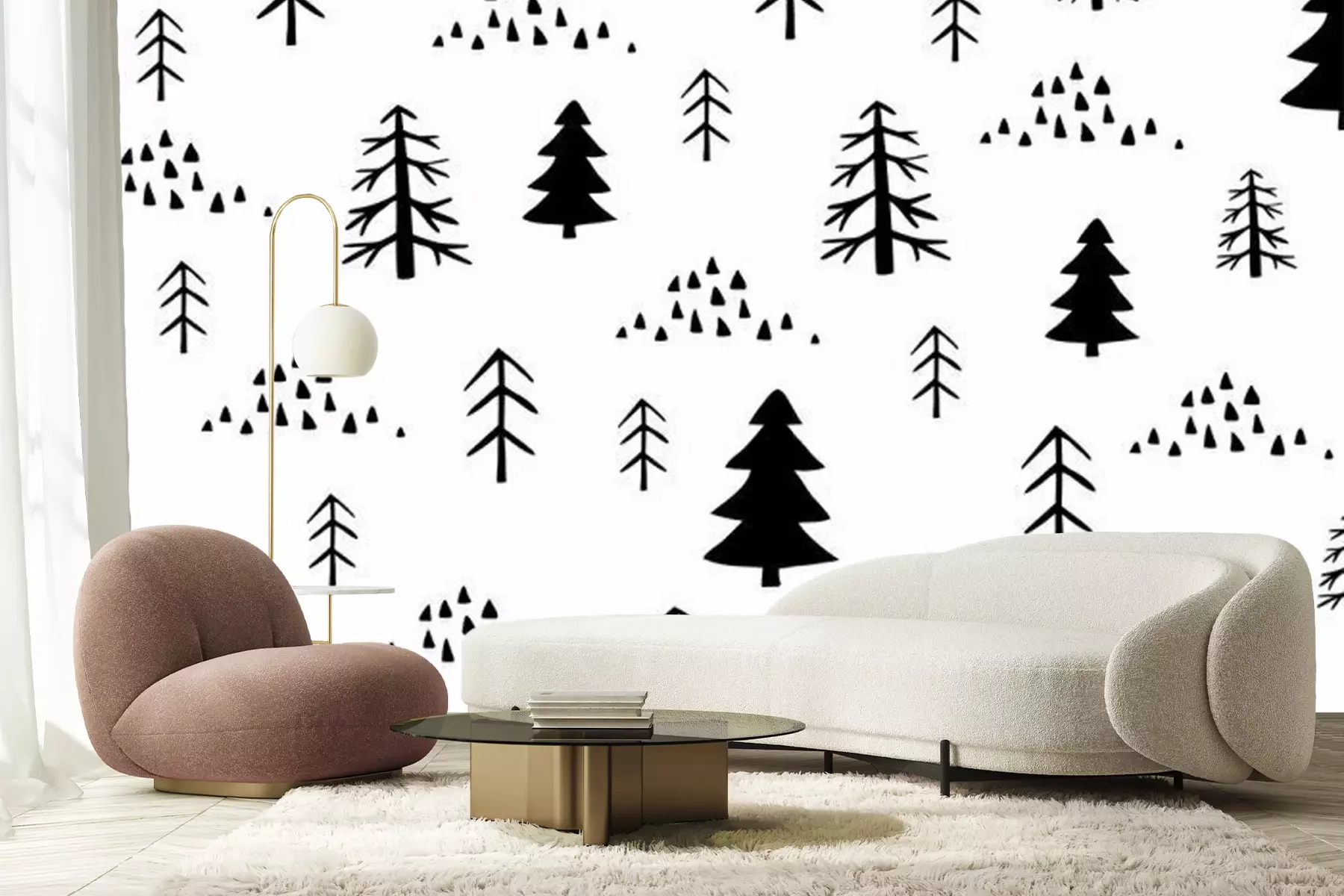 Fotobehang Wild bos naadloos patroon in Skandinavische stijl