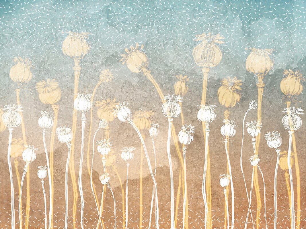 Fotobehang: Wilde bloemen op een betonnen ombre-achtergrond