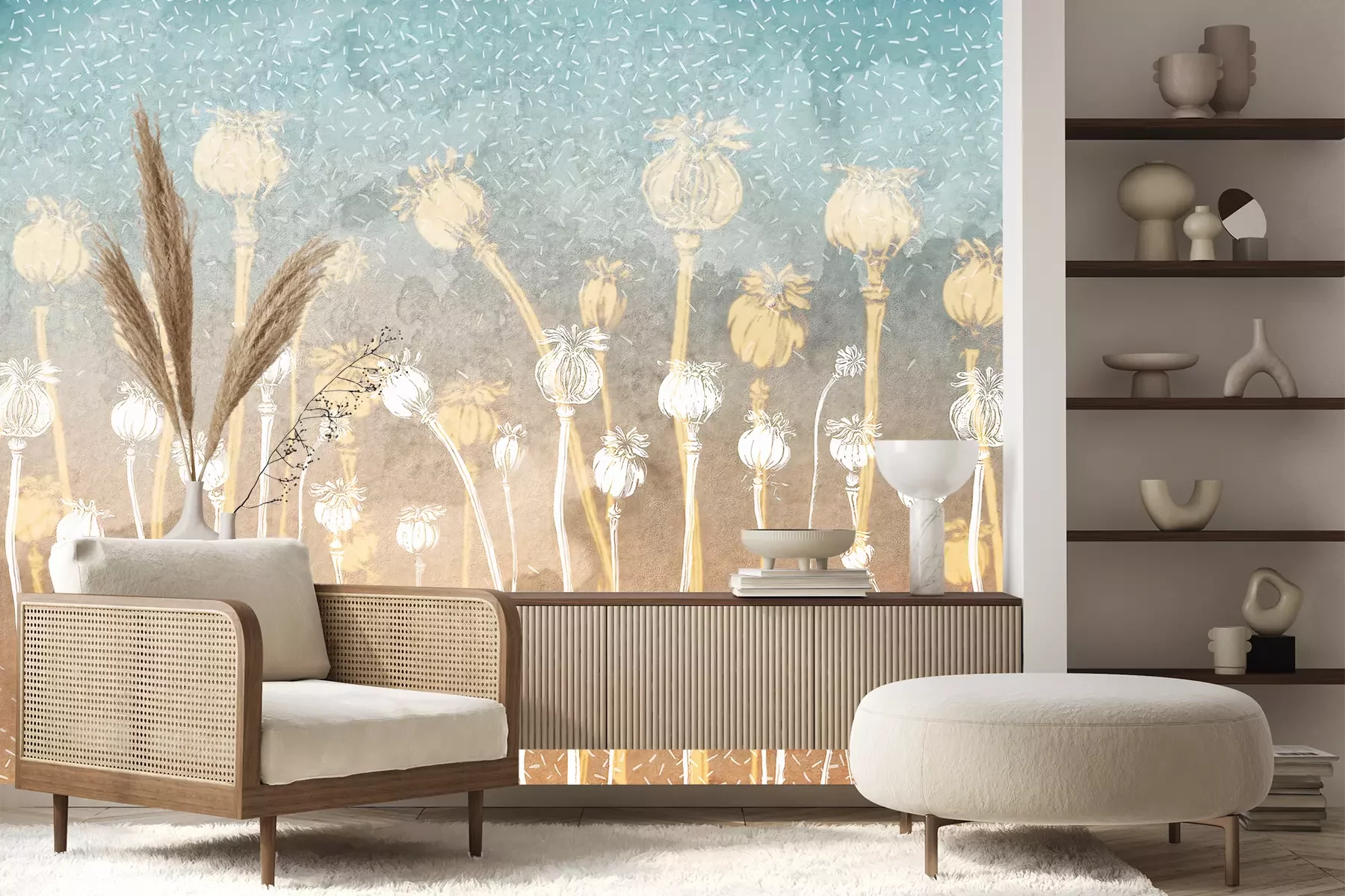 Het materiaal Premium+ is een gestructureerd vinyl op vlies met een gewicht van 255 g/m², dat kleine oneffenheden in de muur effectief camoufleert. De subtiele structuur van fijn zand geeft het oppervlak een exclusieve uitstraling, terwijl de halfmatte afwerking de diepte van de kleuren benadrukt. Het materiaal is dampdoorlatend, waardoor het ook in de keuken en badkamer kan worden gebruikt. De maximale breedte van één baan bedraagt 100 cm – bij grotere afmetingen wordt het fotobehang in meerdere gelijke banen verdeeld. De lijm wordt direct op de muur aangebracht en het behang wordt rand-aan-rand geplakt, wat zorgt voor een esthetisch resultaat zonder zichtbare naden. Het oppervlak kan gemakkelijk worden schoongemaakt door het voorzichtig af te nemen met een vochtige doek.