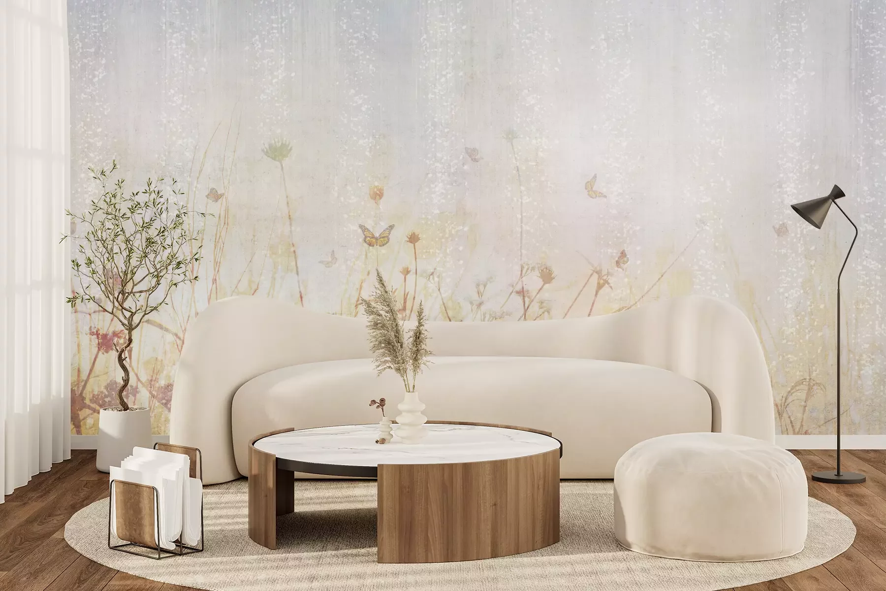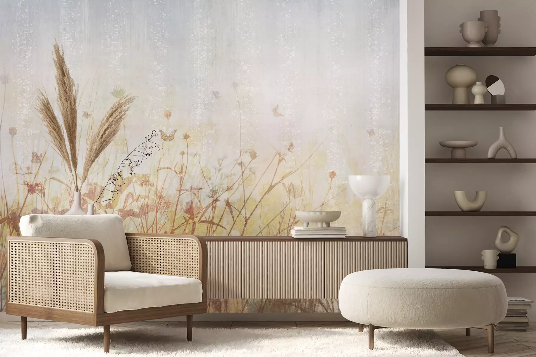 Het materiaal Premium+ is een gestructureerd vinyl op vlies met een gewicht van 255 g/m², dat kleine oneffenheden in de muur effectief camoufleert. De subtiele structuur van fijn zand geeft het oppervlak een exclusieve uitstraling, terwijl de halfmatte afwerking de diepte van de kleuren benadrukt. Het materiaal is dampdoorlatend, waardoor het ook in de keuken en badkamer kan worden gebruikt. De maximale breedte van één baan bedraagt 100 cm – bij grotere afmetingen wordt het fotobehang in meerdere gelijke banen verdeeld. De lijm wordt direct op de muur aangebracht en het behang wordt rand-aan-rand geplakt, wat zorgt voor een esthetisch resultaat zonder zichtbare naden. Het oppervlak kan gemakkelijk worden schoongemaakt door het voorzichtig af te nemen met een vochtige doek.