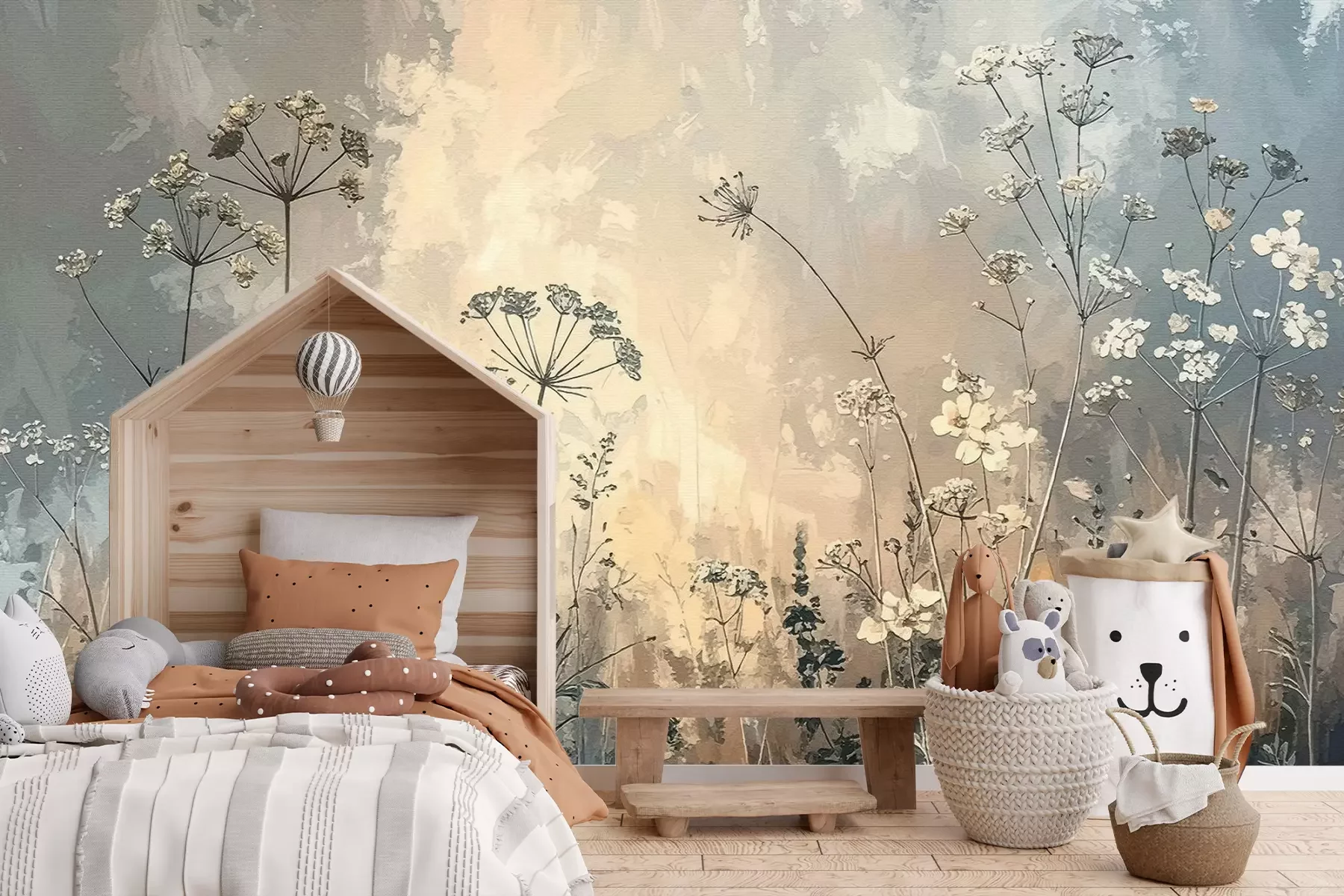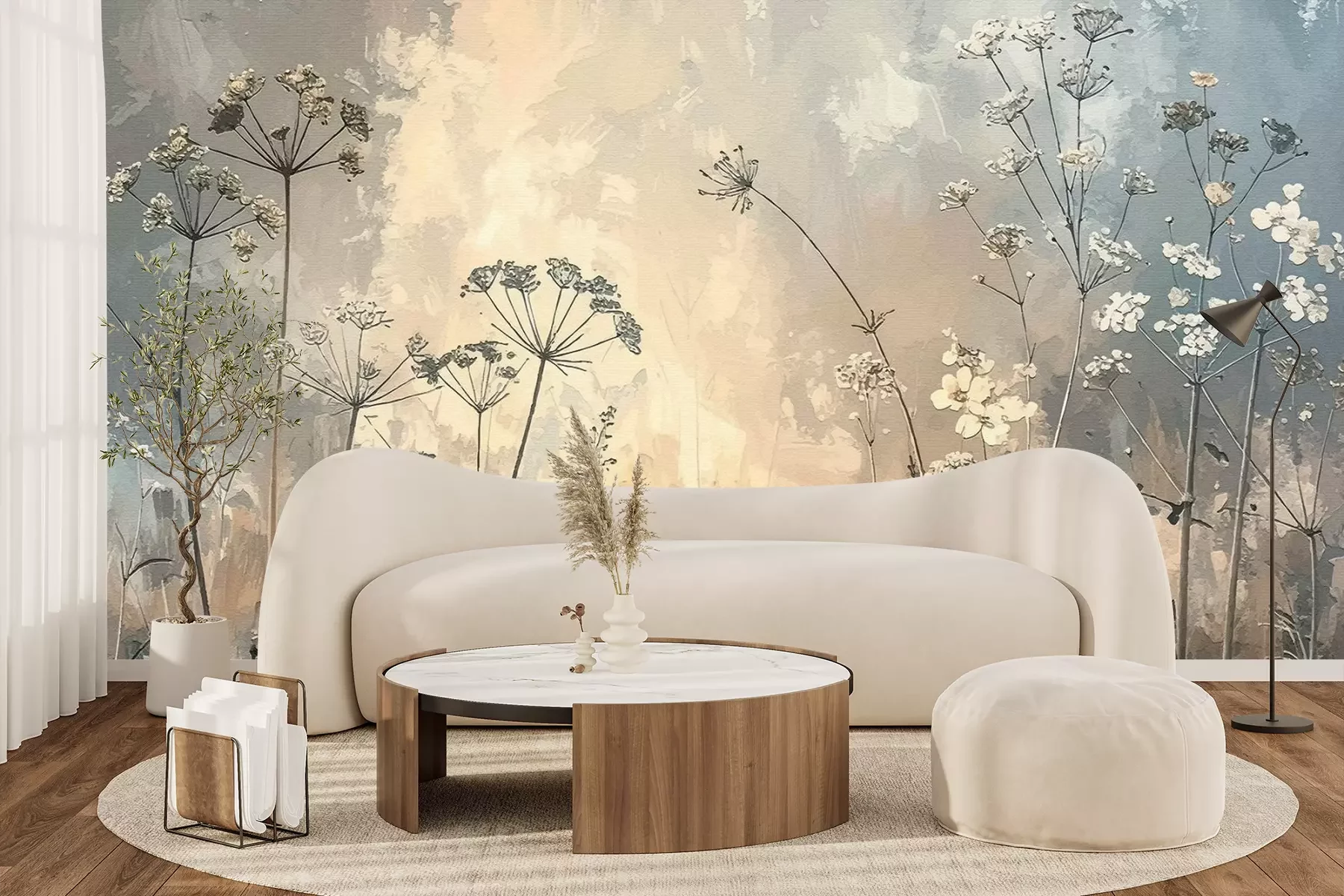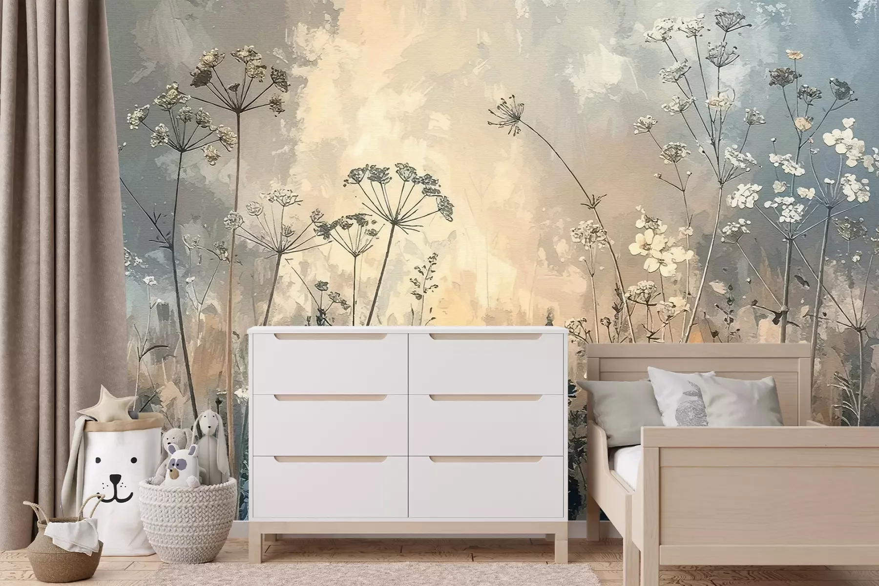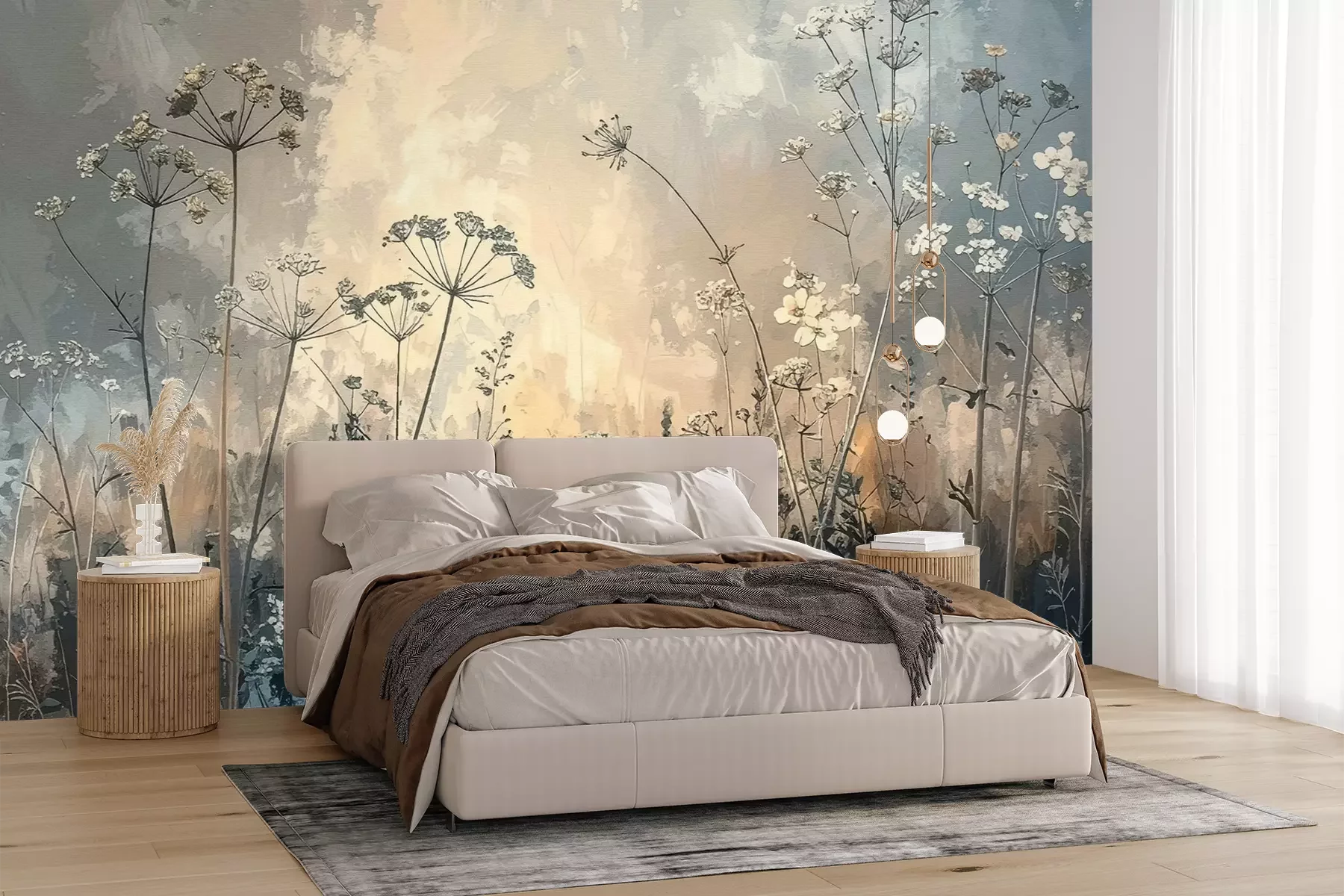 Wilde bloemen op een gestructureerde achtergrond, abstract bloemenpatroon
