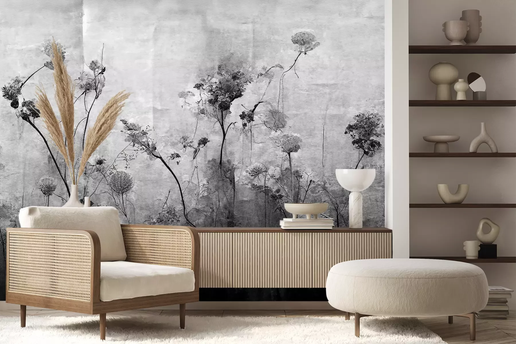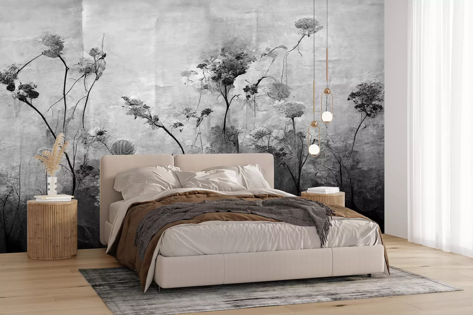 Het materiaal Premium+ is een gestructureerd vinyl op vlies met een gewicht van 255 g/m², dat kleine oneffenheden in de muur effectief camoufleert. De subtiele structuur van fijn zand geeft het oppervlak een exclusieve uitstraling, terwijl de halfmatte afwerking de diepte van de kleuren benadrukt. Het materiaal is dampdoorlatend, waardoor het ook in de keuken en badkamer kan worden gebruikt. De maximale breedte van één baan bedraagt 100 cm – bij grotere afmetingen wordt het fotobehang in meerdere gelijke banen verdeeld. De lijm wordt direct op de muur aangebracht en het behang wordt rand-aan-rand geplakt, wat zorgt voor een esthetisch resultaat zonder zichtbare naden. Het oppervlak kan gemakkelijk worden schoongemaakt door het voorzichtig af te nemen met een vochtige doek.