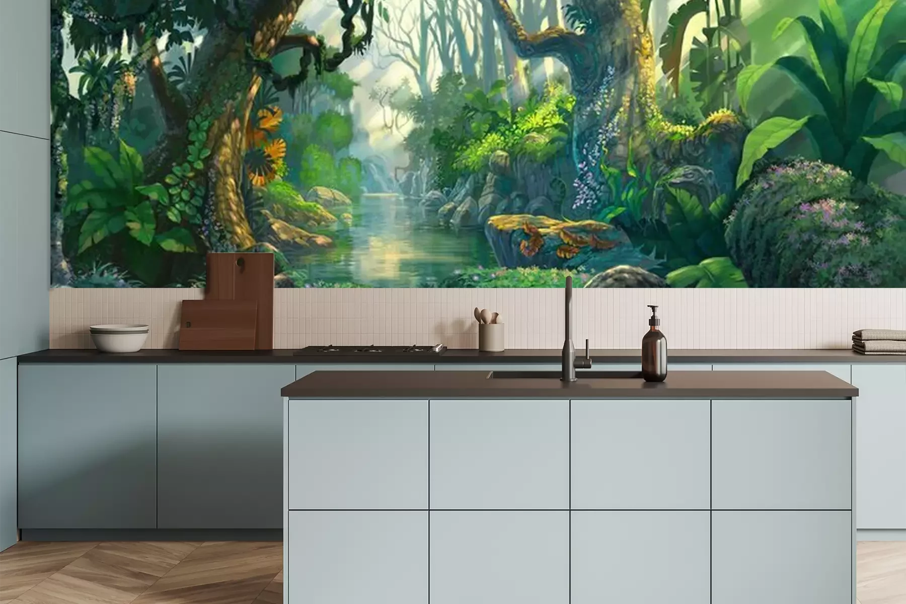 Het materiaal Premium+ is een gestructureerd vinyl op vlies met een gewicht van 255 g/m², dat kleine oneffenheden in de muur effectief camoufleert. De subtiele structuur van fijn zand geeft het oppervlak een exclusieve uitstraling, terwijl de halfmatte afwerking de diepte van de kleuren benadrukt. Het materiaal is dampdoorlatend, waardoor het ook in de keuken en badkamer kan worden gebruikt. De maximale breedte van één baan bedraagt 100 cm – bij grotere afmetingen wordt het fotobehang in meerdere gelijke banen verdeeld. De lijm wordt direct op de muur aangebracht en het behang wordt rand-aan-rand geplakt, wat zorgt voor een esthetisch resultaat zonder zichtbare naden. Het oppervlak kan gemakkelijk worden schoongemaakt door het voorzichtig af te nemen met een vochtige doek.